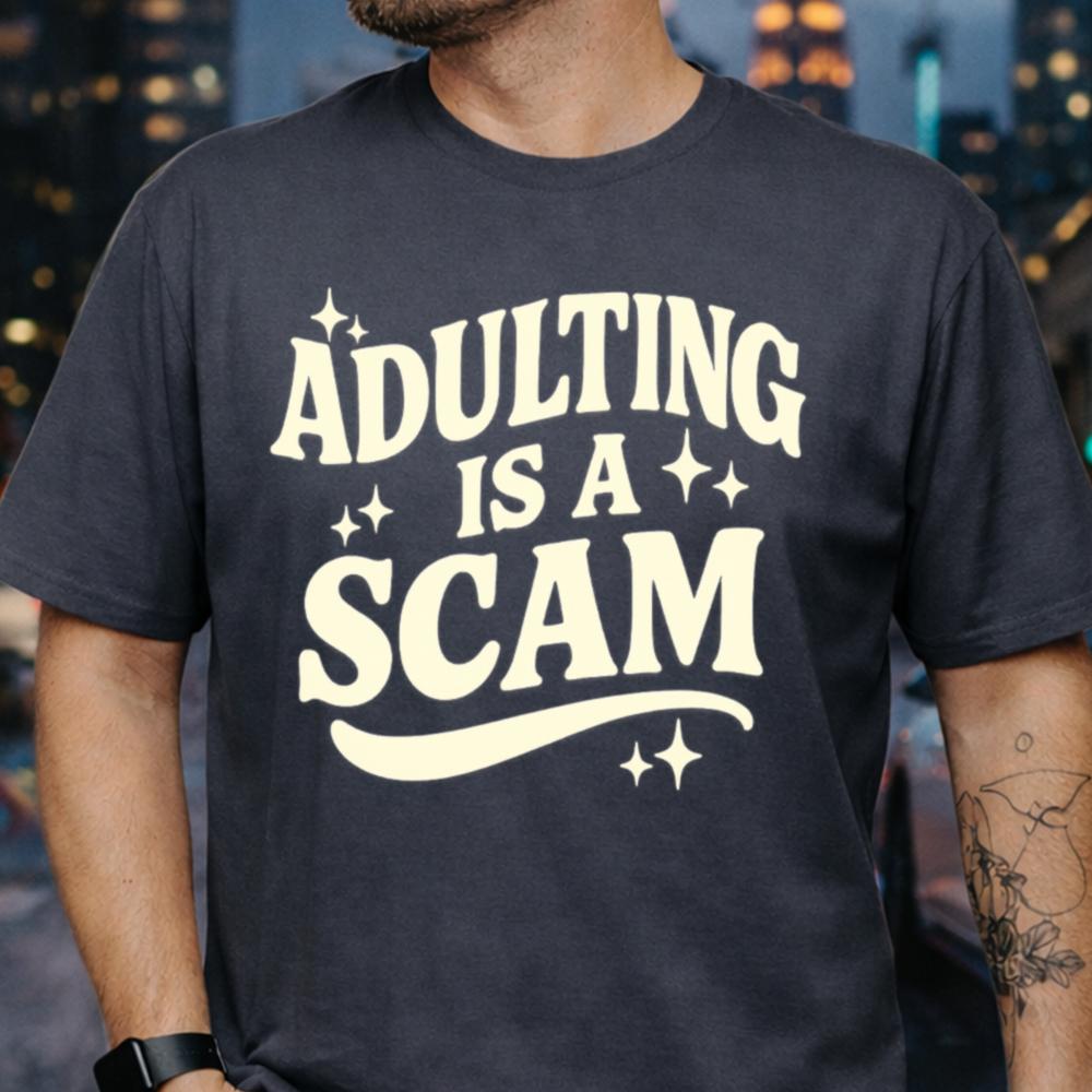 Adulting Is a Scam T-Shirt – Funny Retro Unisex Tee