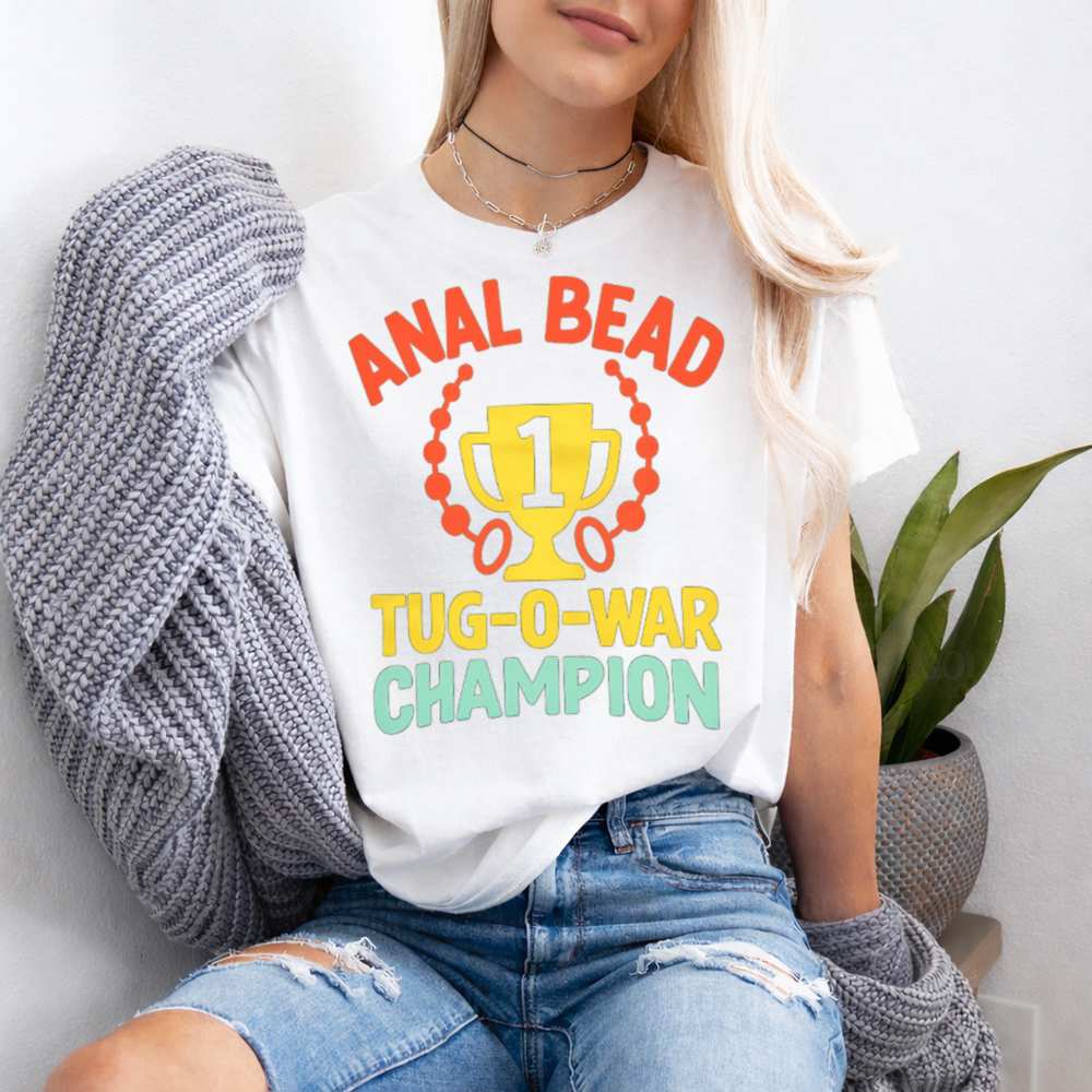 If you’re brave enough to wear it or gift it the Anal Bead Tug-O-War Champion T-Shirt is pure comedic gold for lovers of crude, uncensored humor.