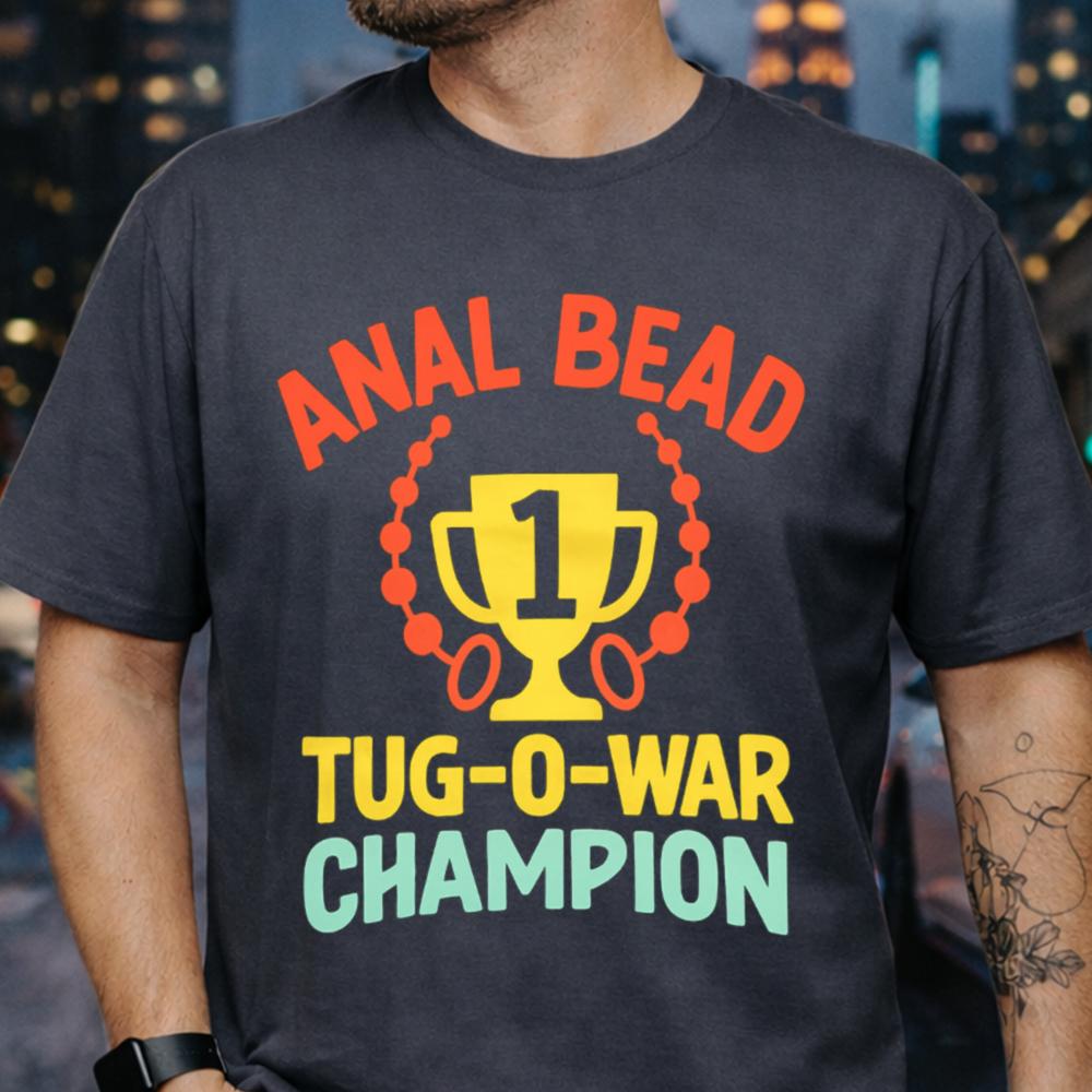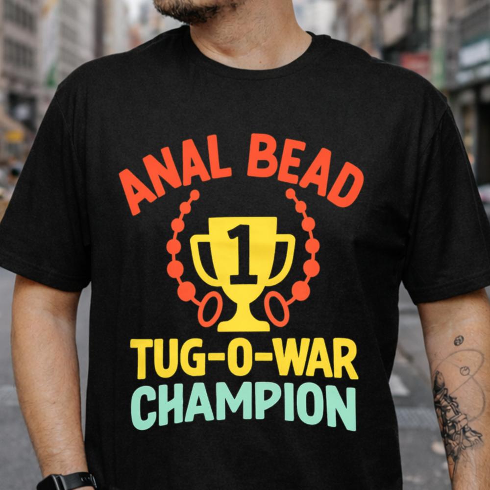 If you’re the kind of person who lives for outrageous laughs, the Anal Bead Tug-O-War Champion T-Shirt was made with you in mind. Featuring a trophy design flanked by beads and a cheeky award title, this shirt proudly claims first place in the world’s most unspoken competition. It’s provocative, it’s absurd and it’s guaranteed to get a reaction.