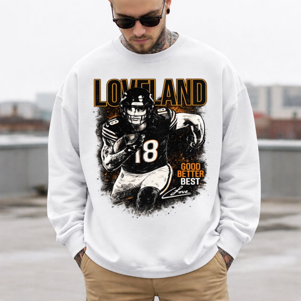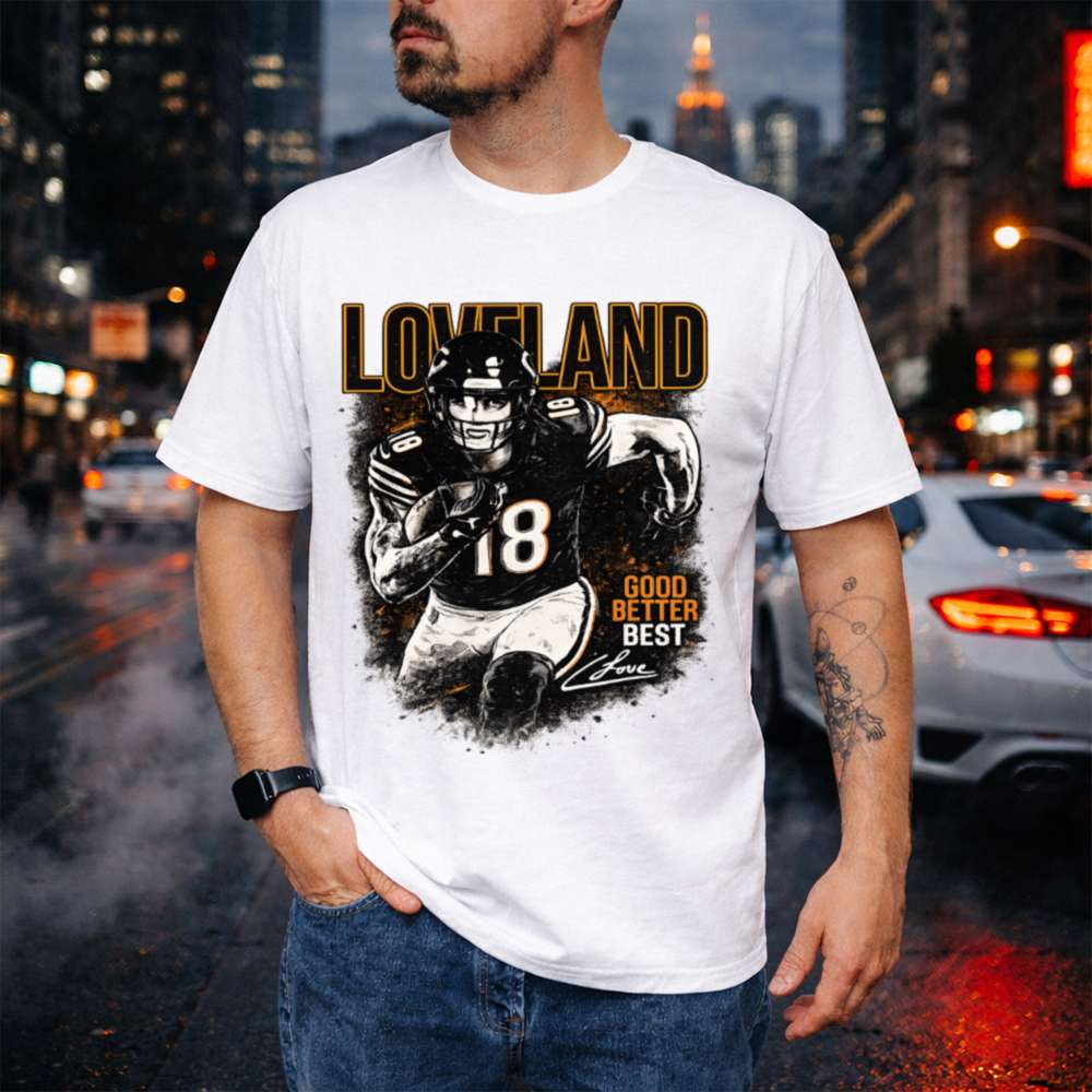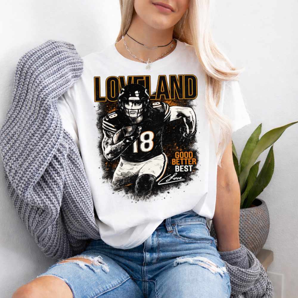 Fuel your game day spirit with the Colston Loveland Football T-Shirt, a striking tribute to one of the most exciting names in college football. Featuring a dynamic illustration of Loveland mid-play, this design captures the power, grit, and momentum he brings to every down. The bold slogan “Good. Better. Best.” reflects the relentless mindset of athletes and fans alike.