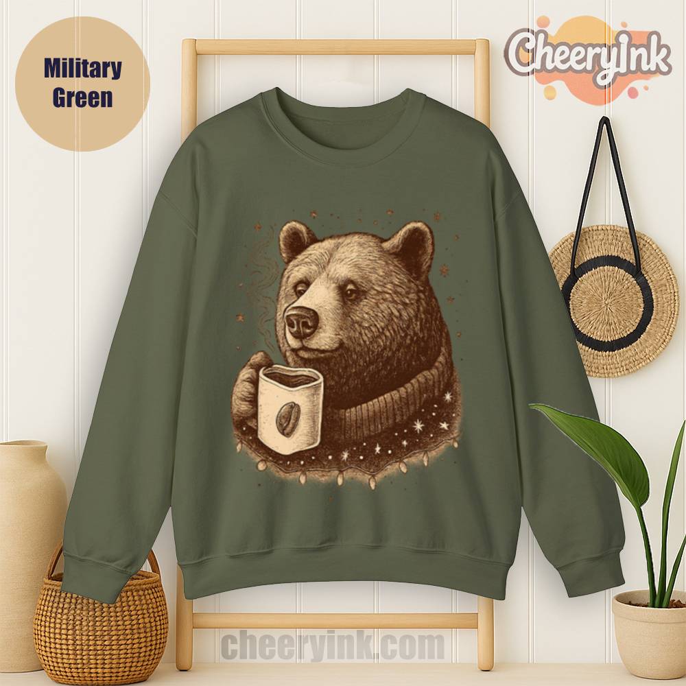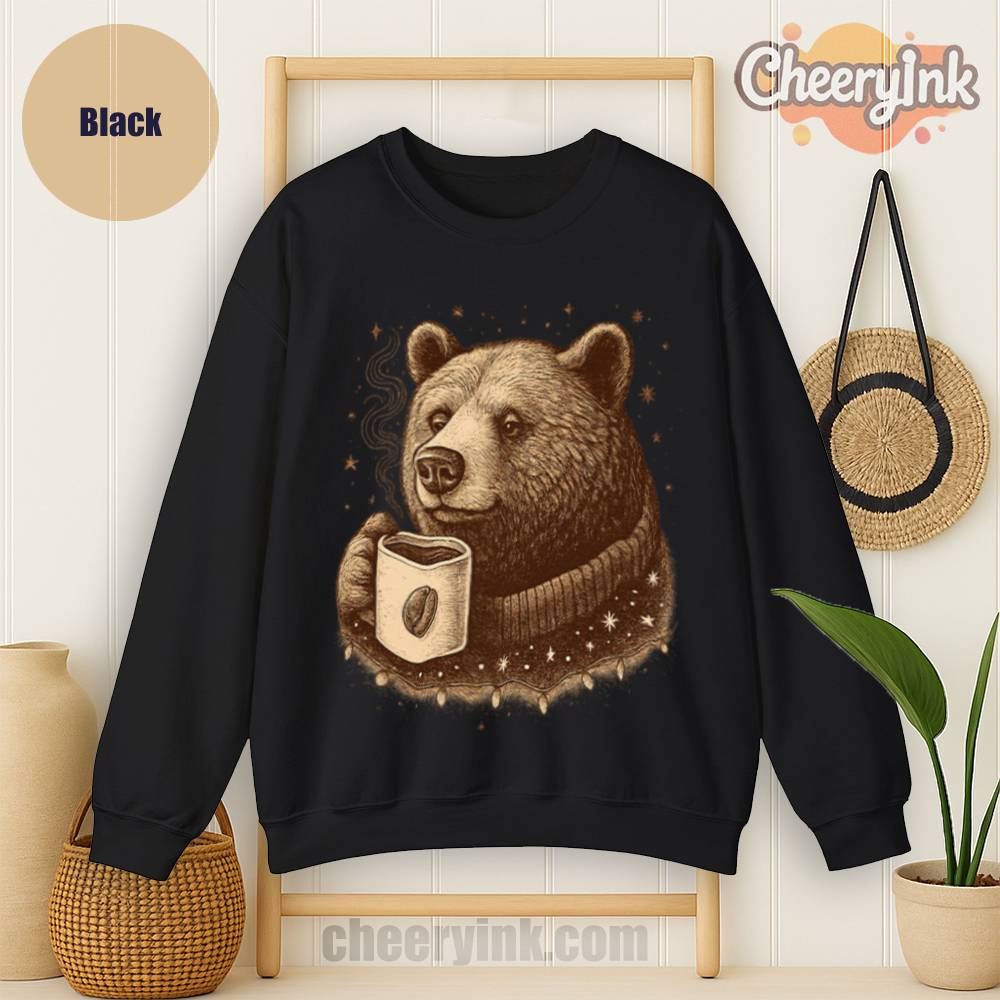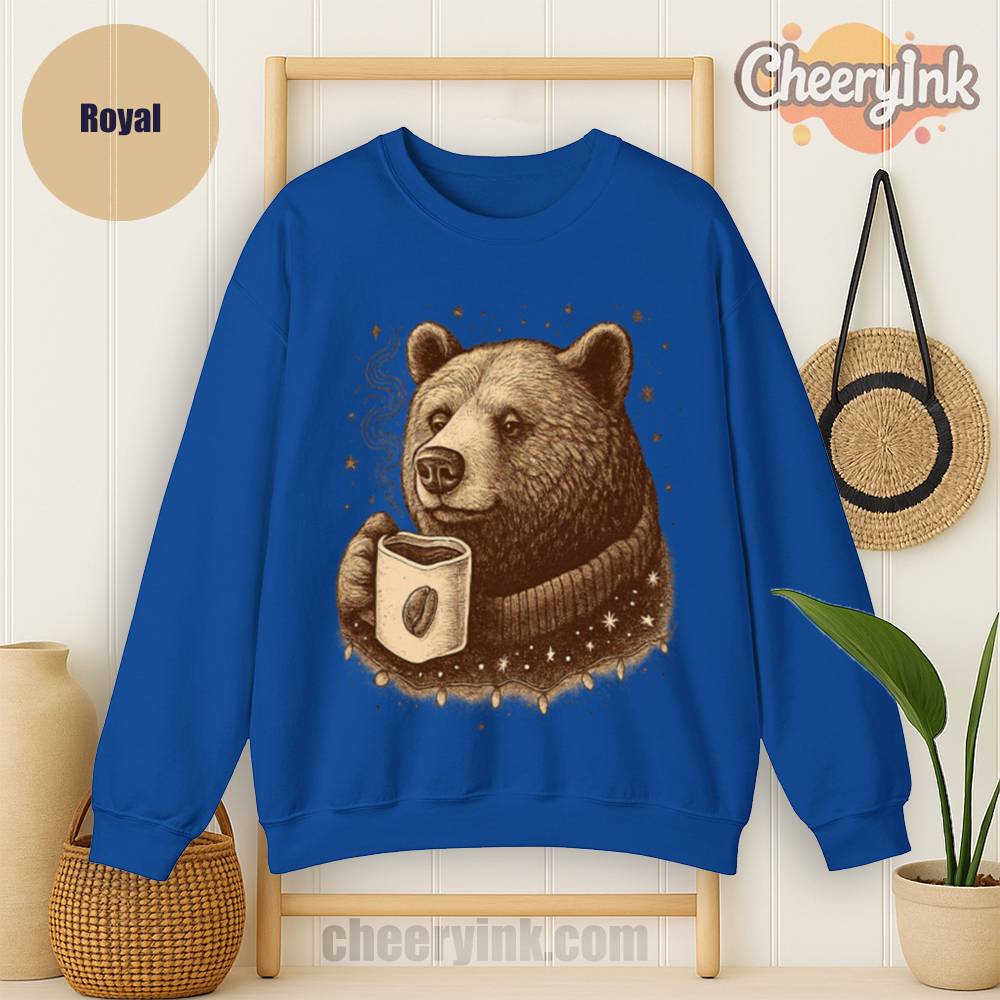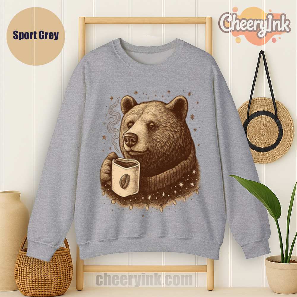 Celebrate coffee season with the Cozy Coffee Bear Sweatshirt. With a vintage bear enjoying a hot brew, this unisex pullover brings warmth, charm, and caffeine vibes to your wardrobe.