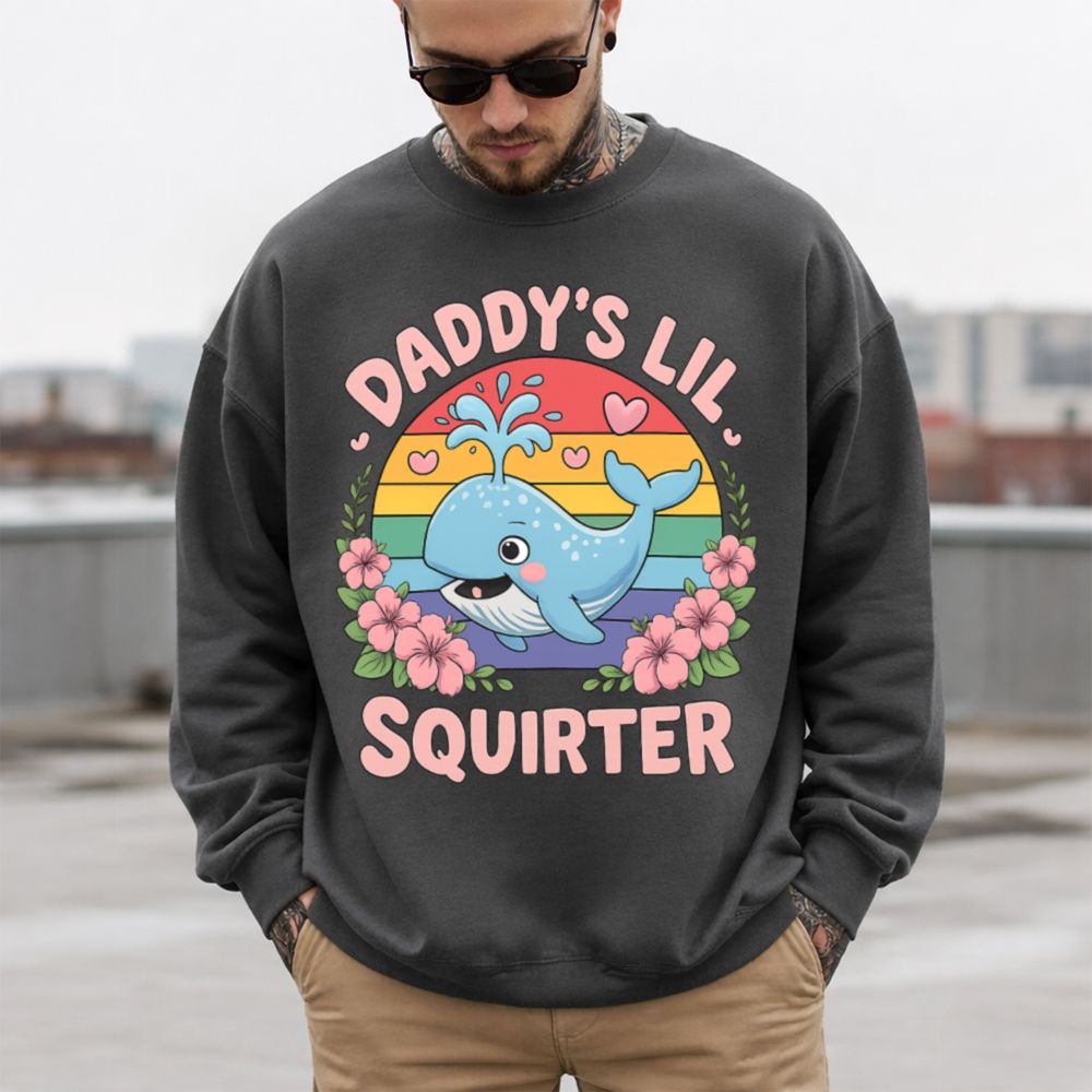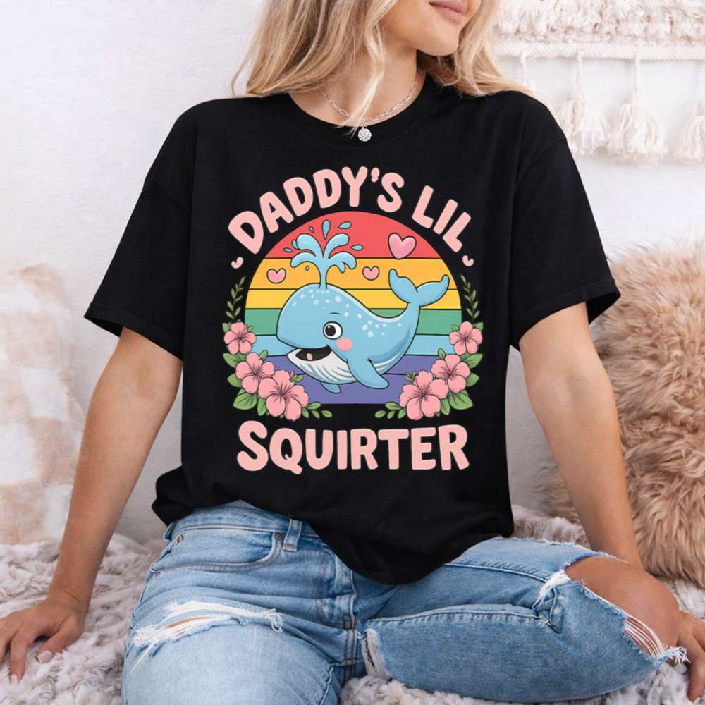 Say it without saying it with the Daddy’s Lil Squirter Funny T-Shirt the ultimate blend of cute design and naughty innuendo. At first glance, it’s an adorable cartoon whale under a rainbow with hearts and hibiscus flowers. But that cheeky phrase? Pure adult humor gold.