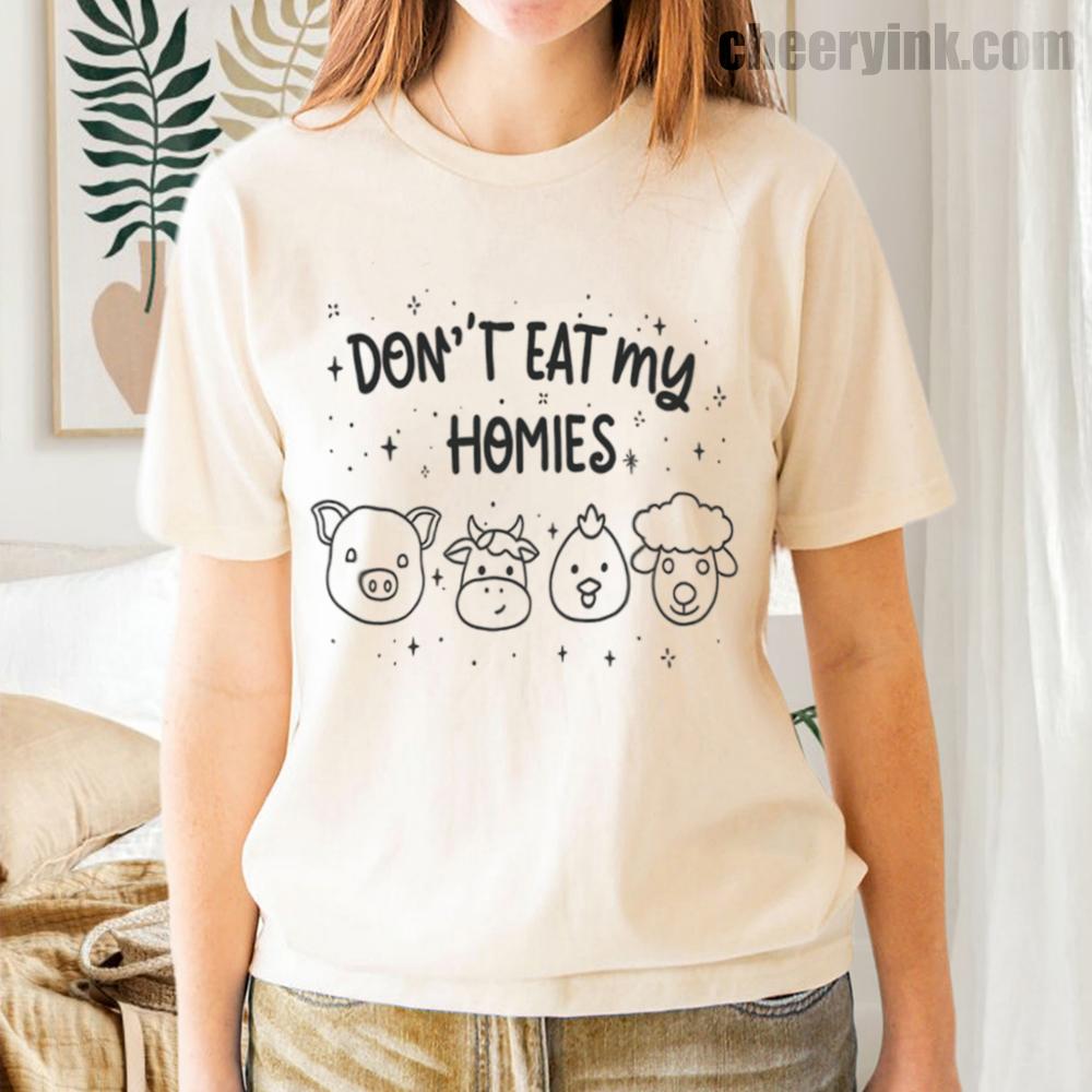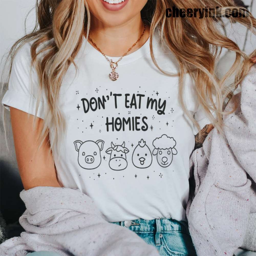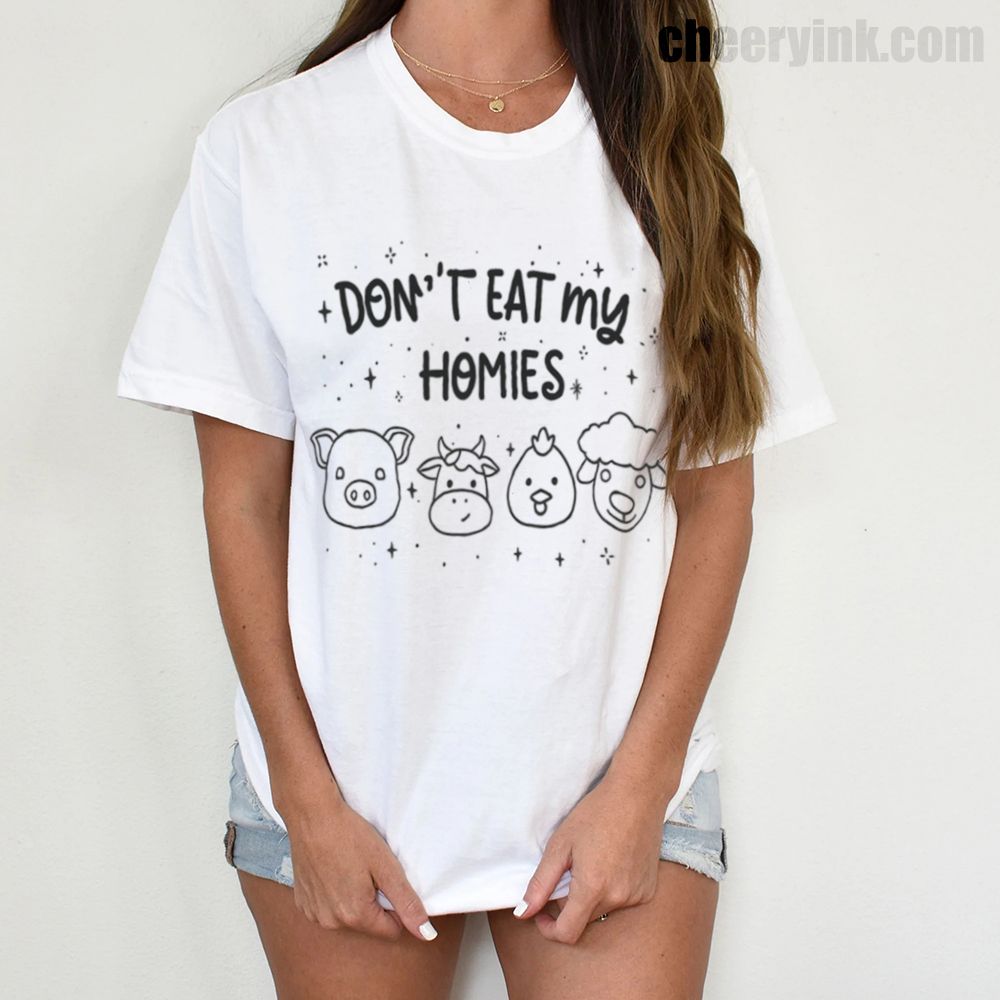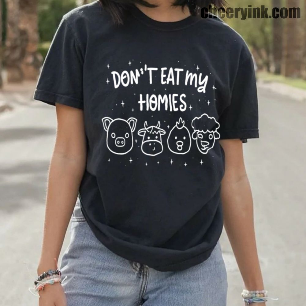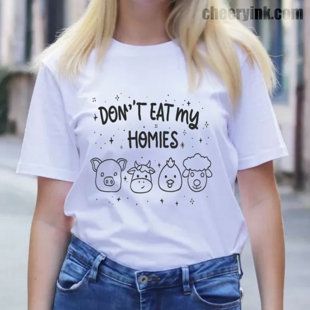 Make a statement that’s both bold and adorable with our Don’t Eat My Homies T-Shirt. Featuring cute cartoon illustrations of a pig, cow, chicken, and sheep, this shirt carries a heartfelt vegan message for anyone who believes in kindness toward animals. It’s more than a tee it’s a message of compassion wrapped in style.