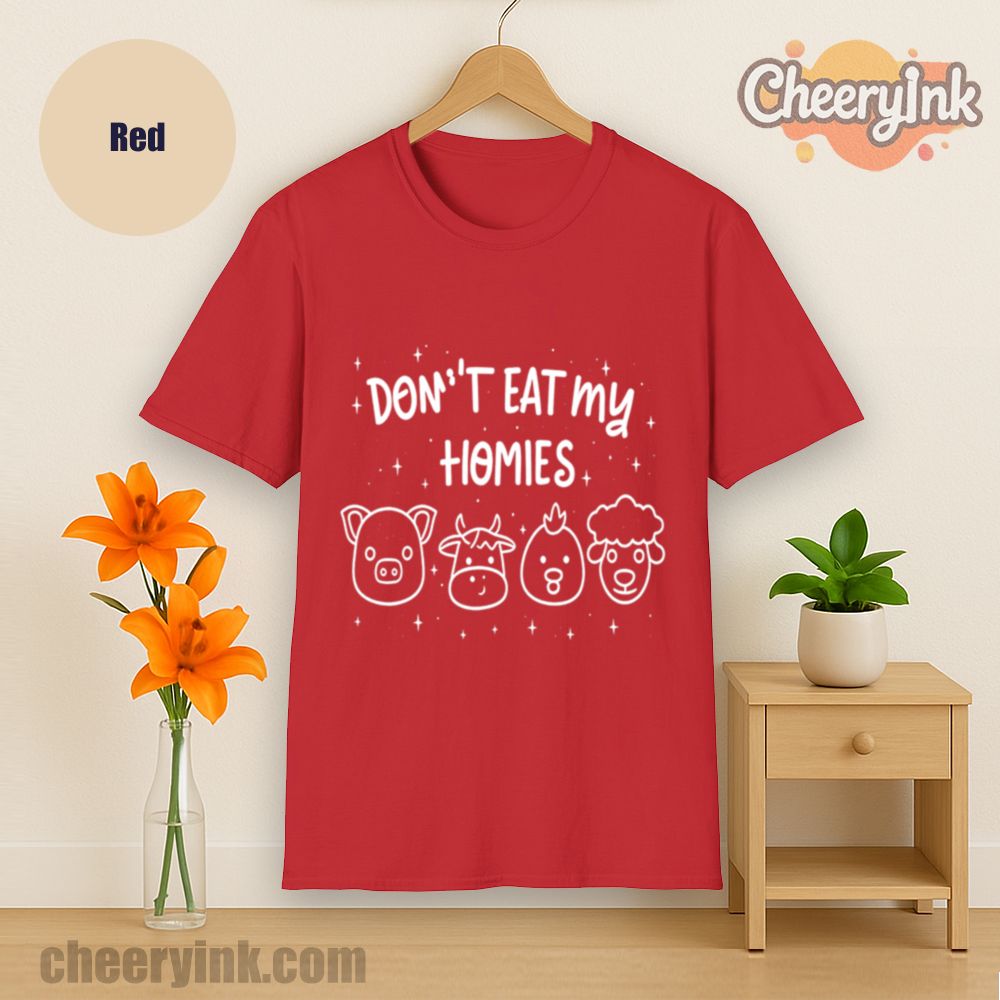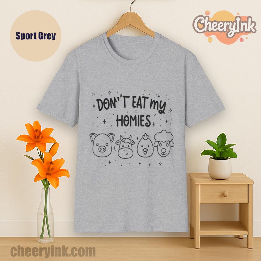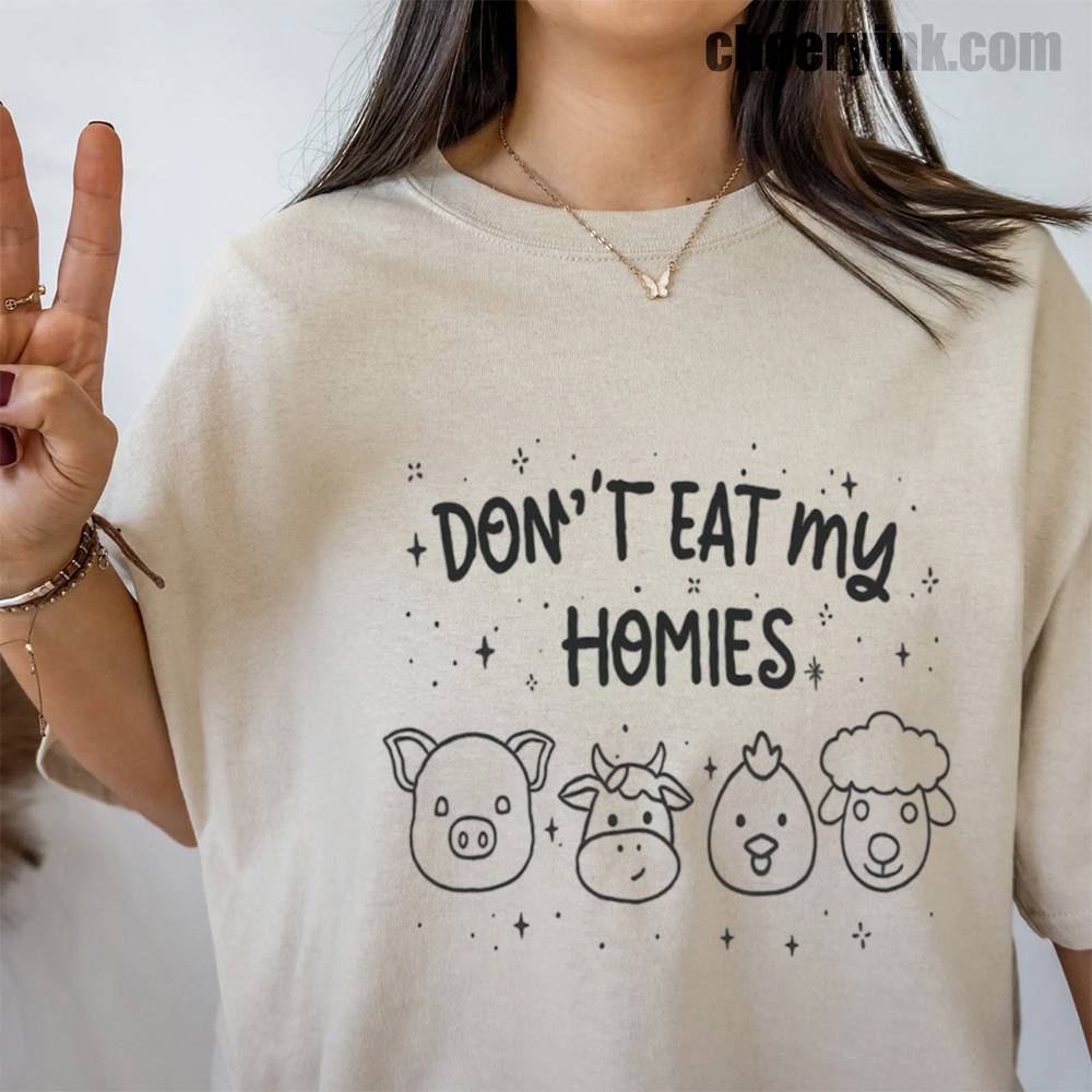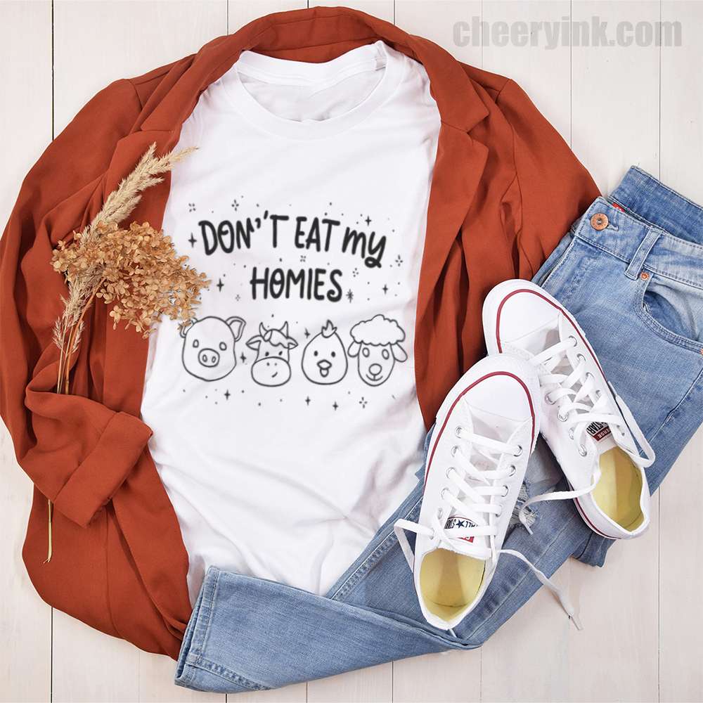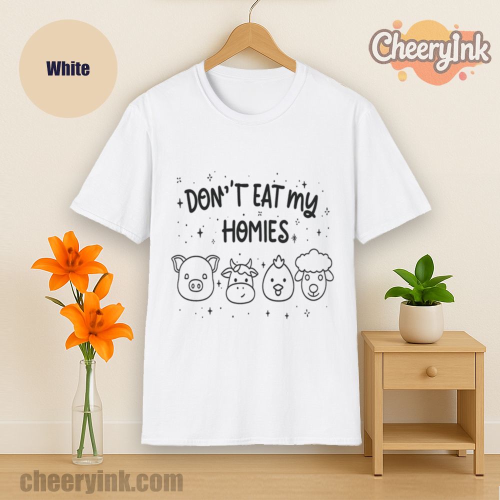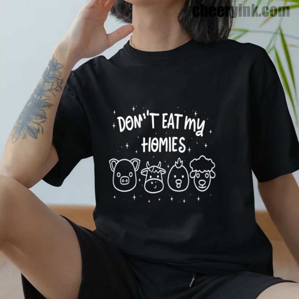 Make a statement that’s both bold and adorable with our Don’t Eat My Homies T-Shirt. Featuring cute cartoon illustrations of a pig, cow, chicken, and sheep, this shirt carries a heartfelt vegan message for anyone who believes in kindness toward animals. It’s more than a tee it’s a message of compassion wrapped in style.