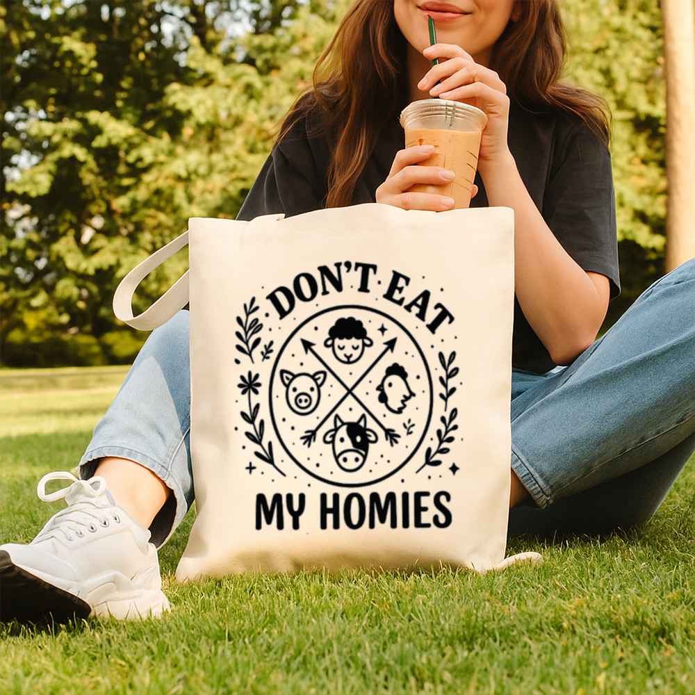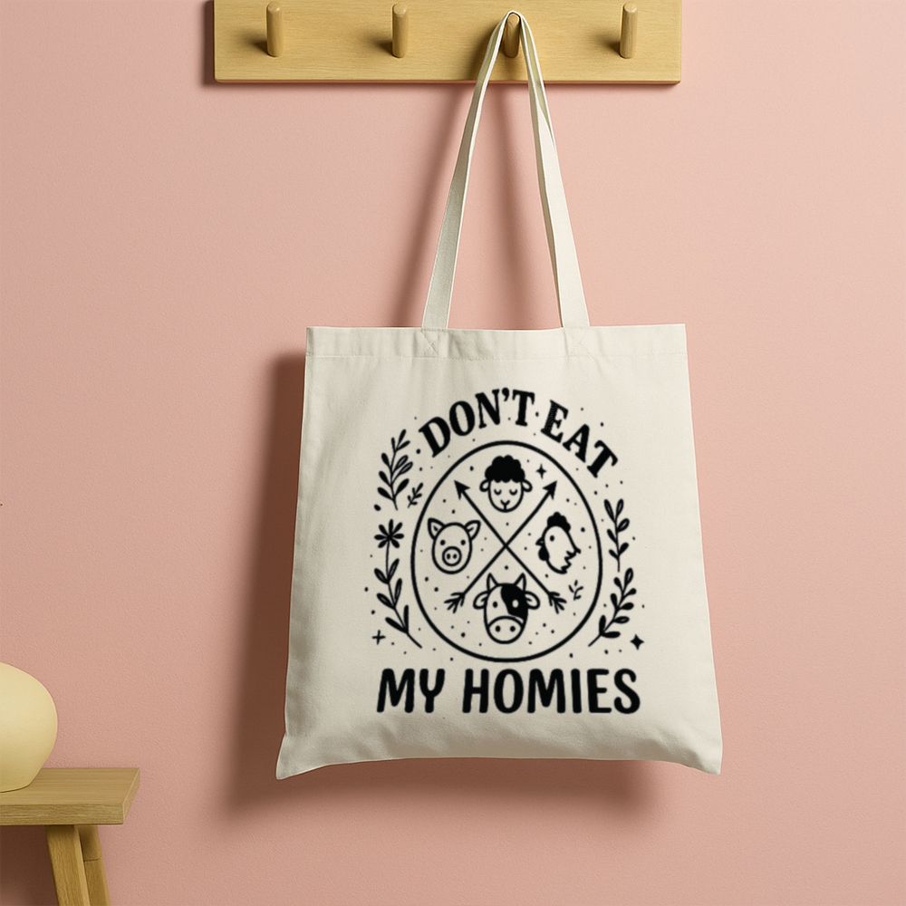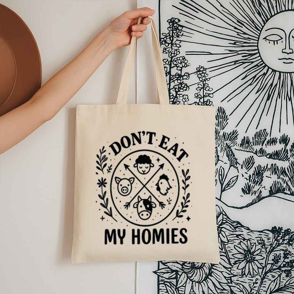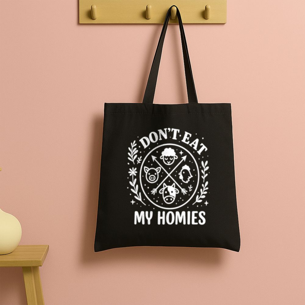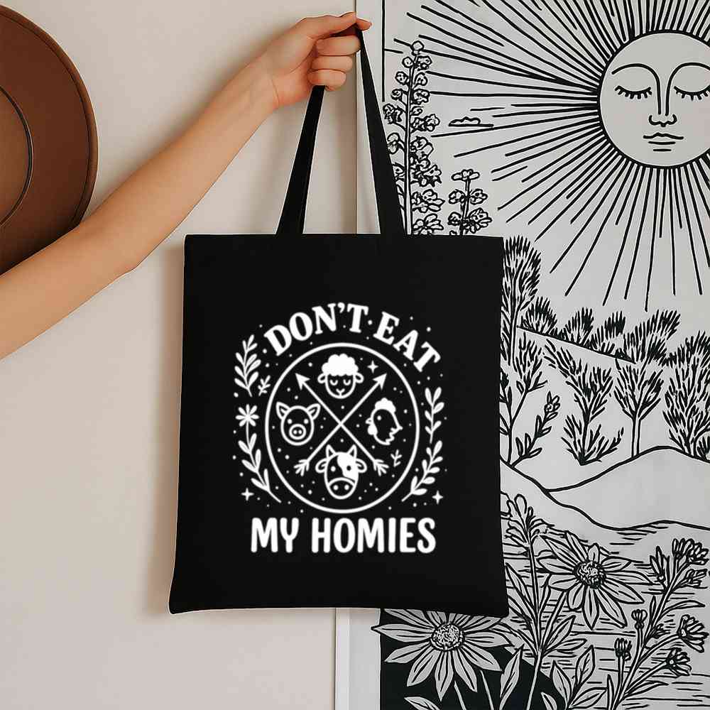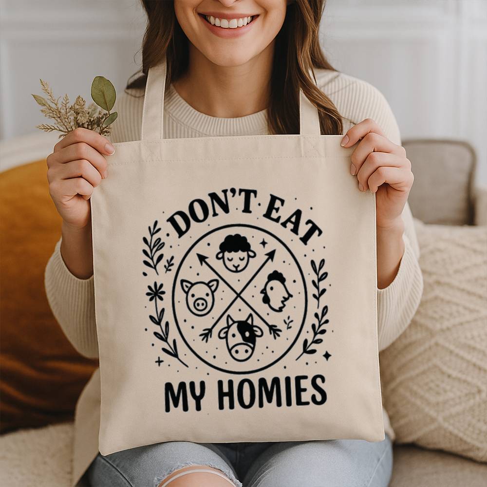 The Dont Eat My Homies Tote Bag is your new go-to for errands with ethics. With adorable line-drawn illustrations of your farm animal besties, this canvas tote lets you speak up for animal rights without saying a word. Simple, bold, and full of compassion, it’s the ideal companion for grocery trips, library runs, or vegan market strolls.