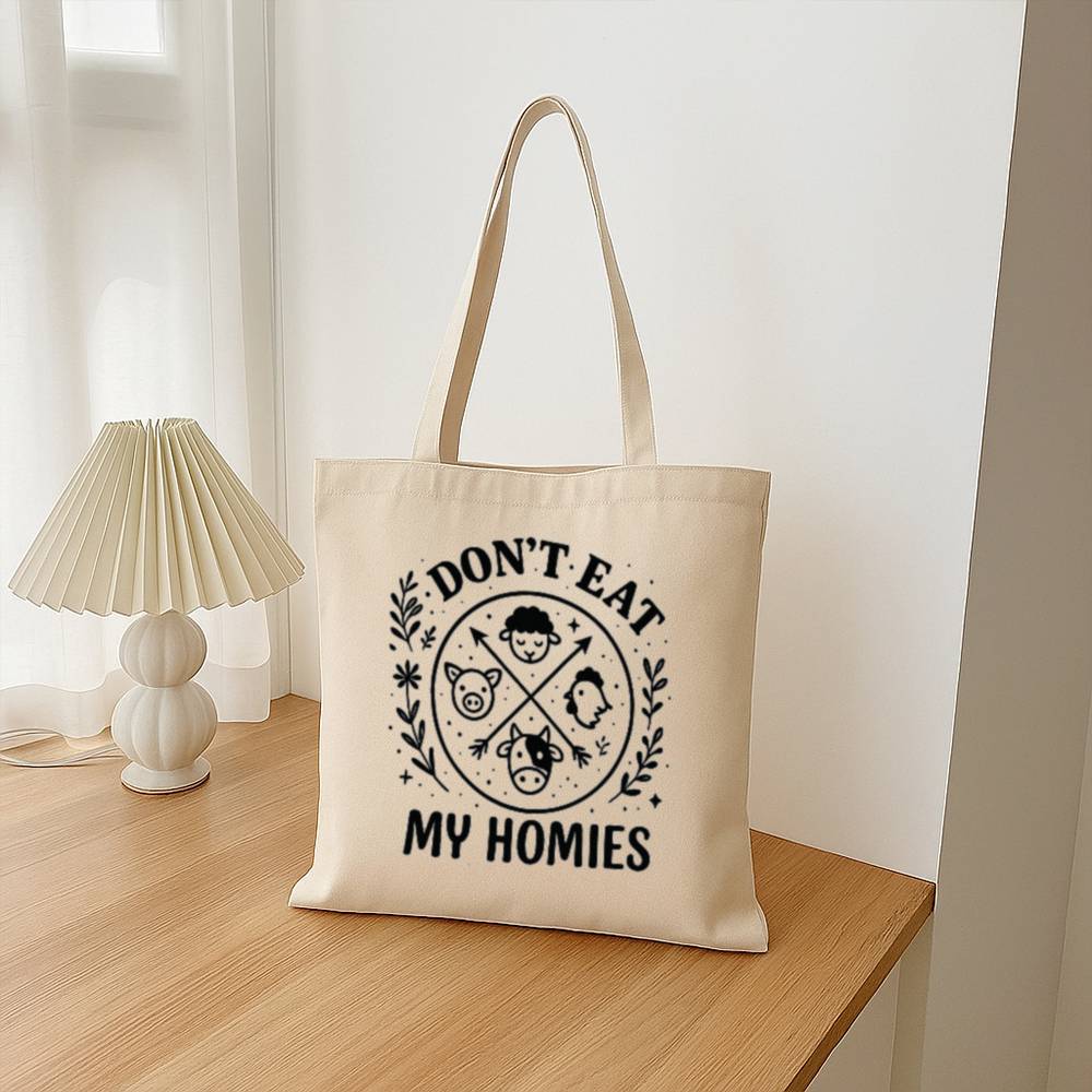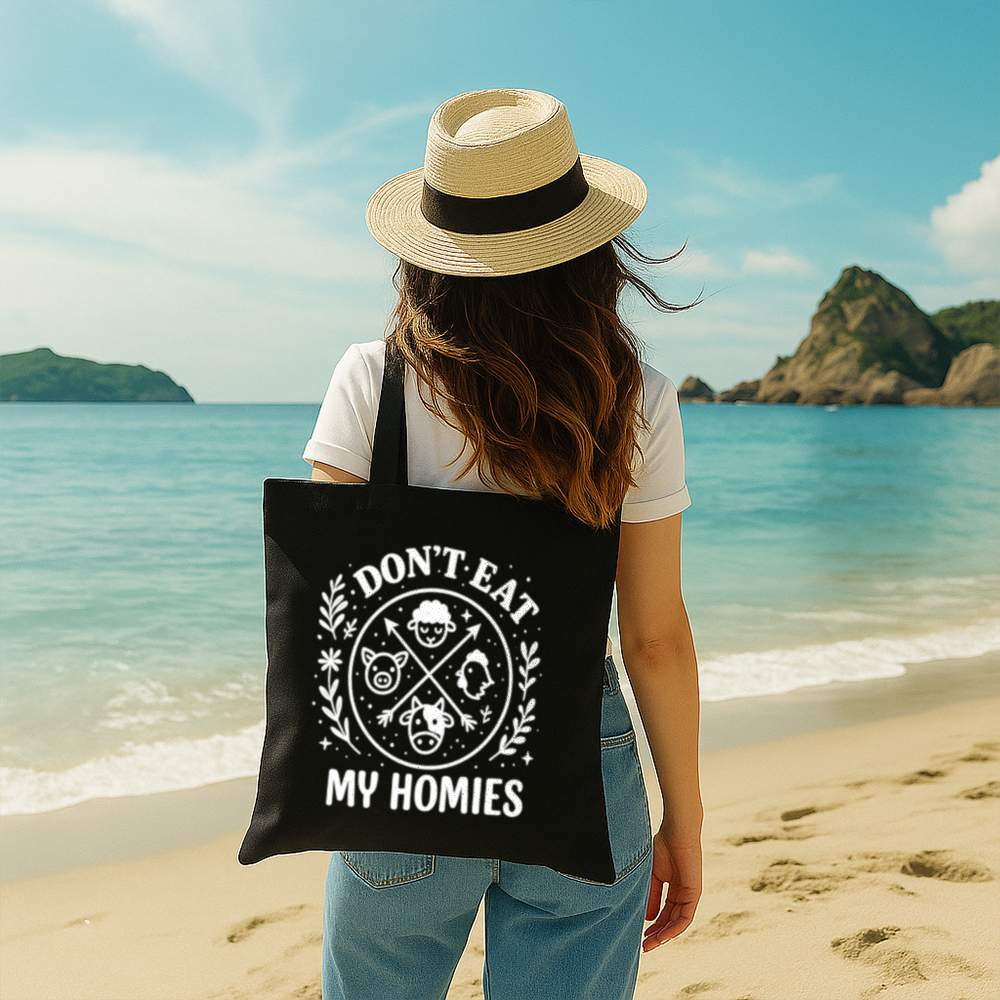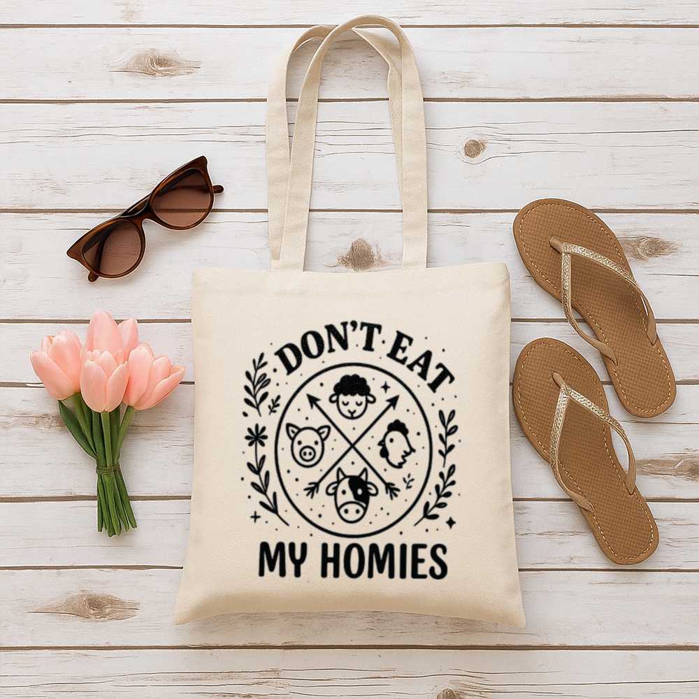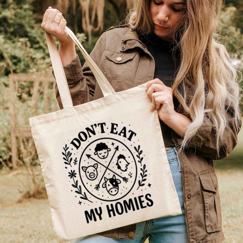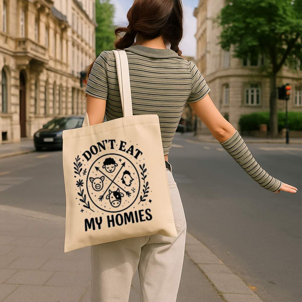 The Dont Eat My Homies Tote Bag is your new go-to for errands with ethics. With adorable line-drawn illustrations of your farm animal besties, this canvas tote lets you speak up for animal rights without saying a word. Simple, bold, and full of compassion, it’s the ideal companion for grocery trips, library runs, or vegan market strolls.