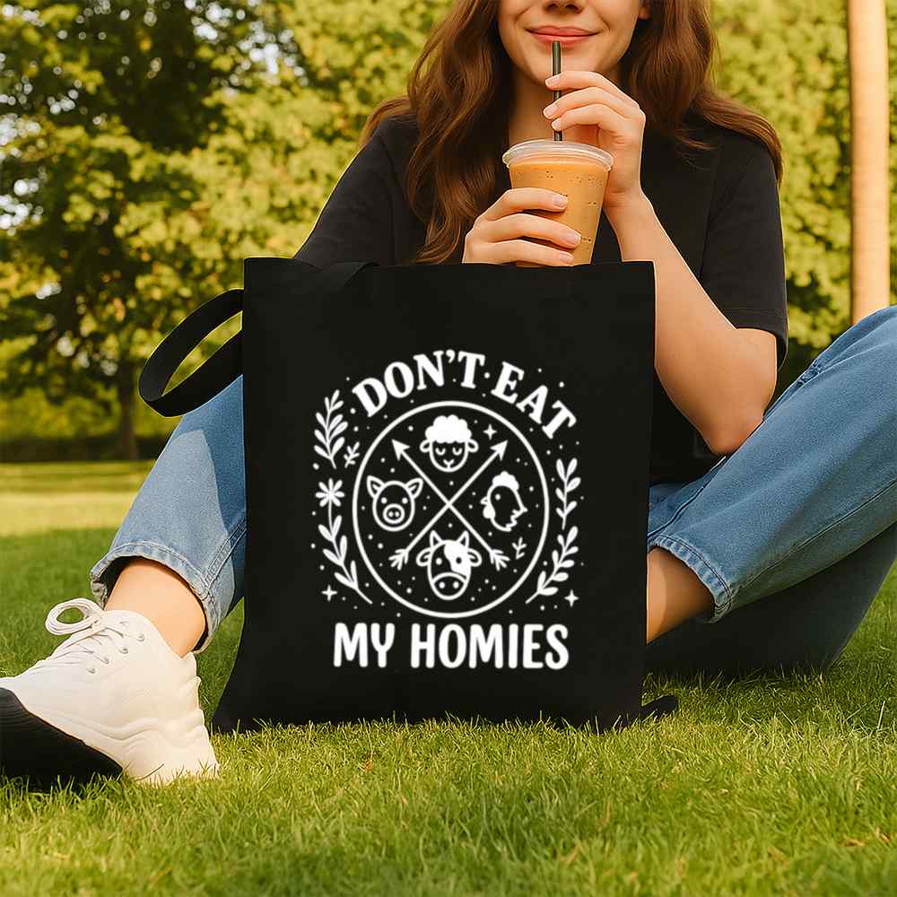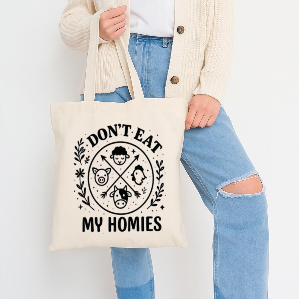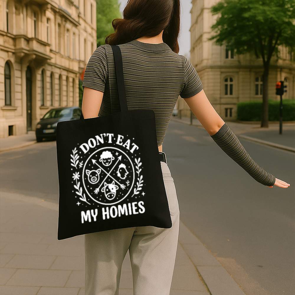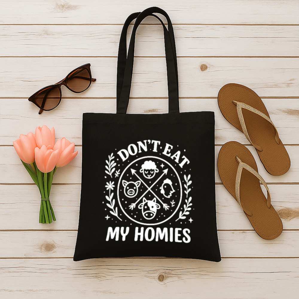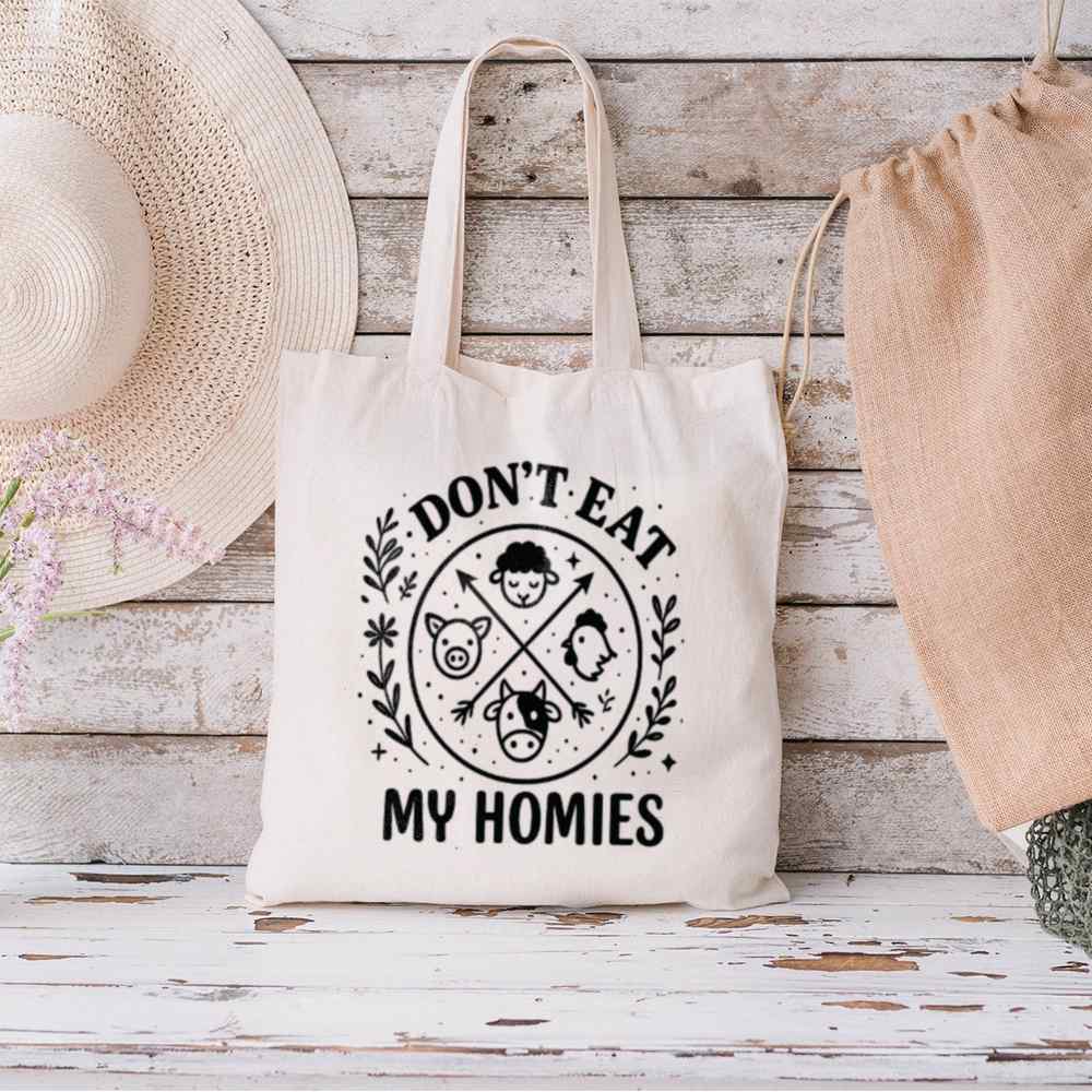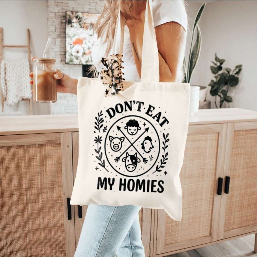 The Dont Eat My Homies Tote Bag is your new go-to for errands with ethics. With adorable line-drawn illustrations of your farm animal besties, this canvas tote lets you speak up for animal rights without saying a word. Simple, bold, and full of compassion, it’s the ideal companion for grocery trips, library runs, or vegan market strolls.