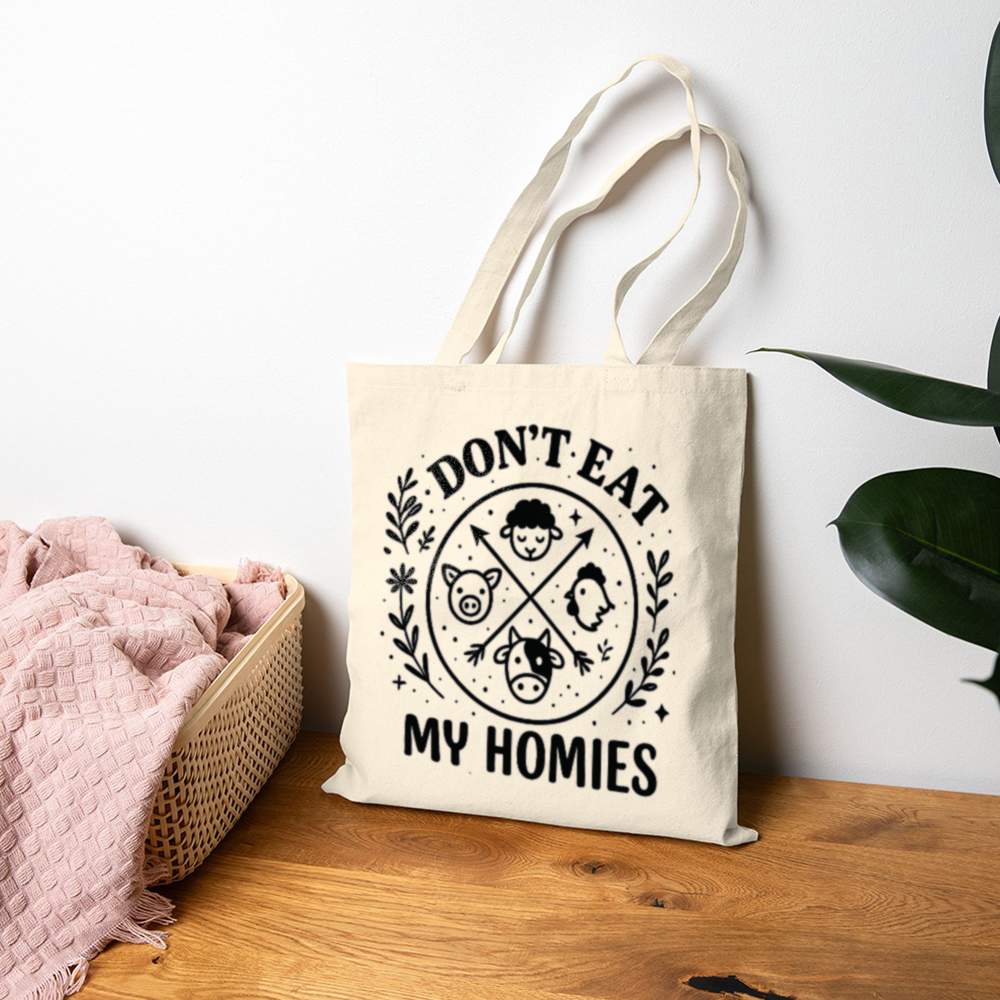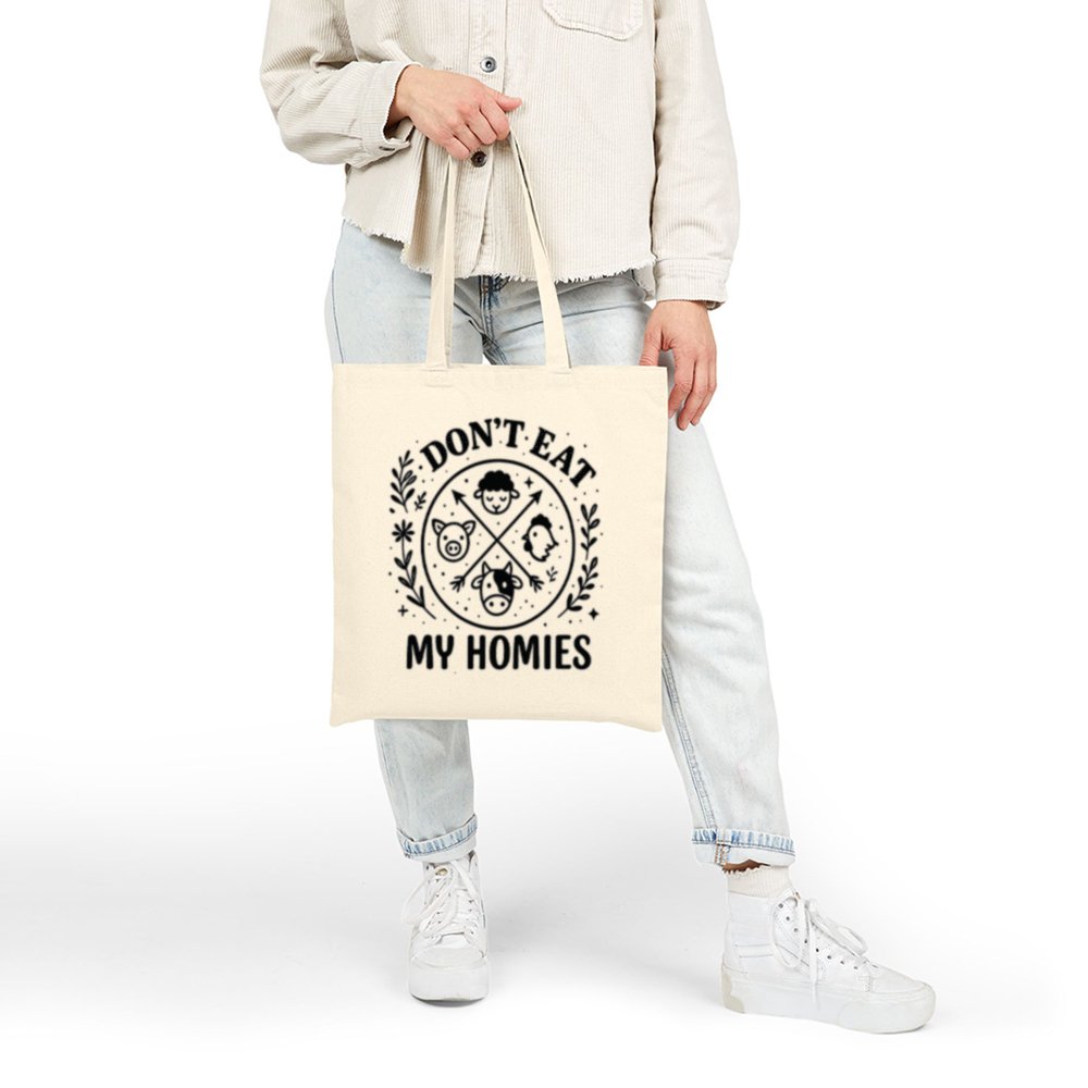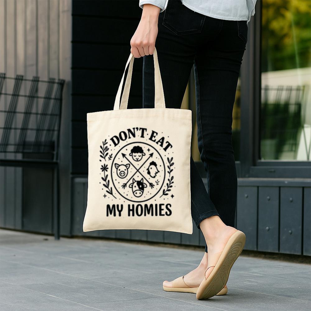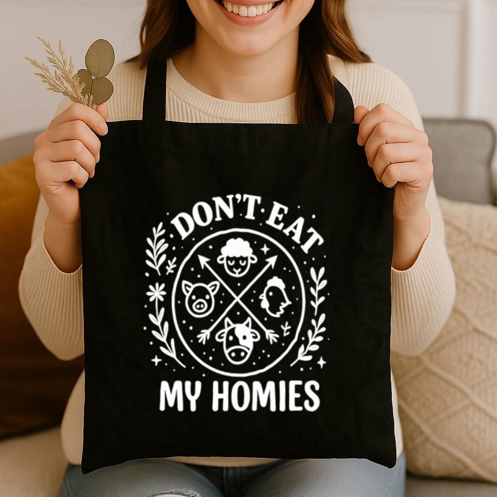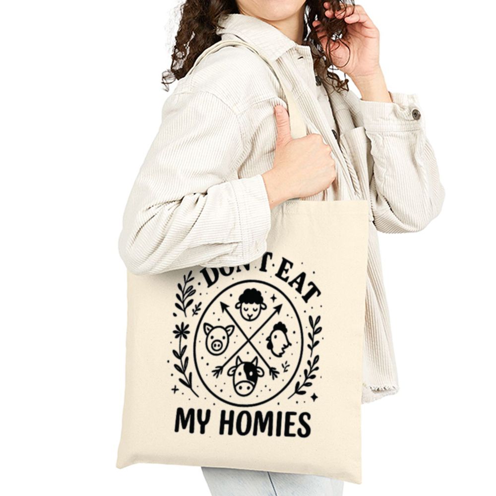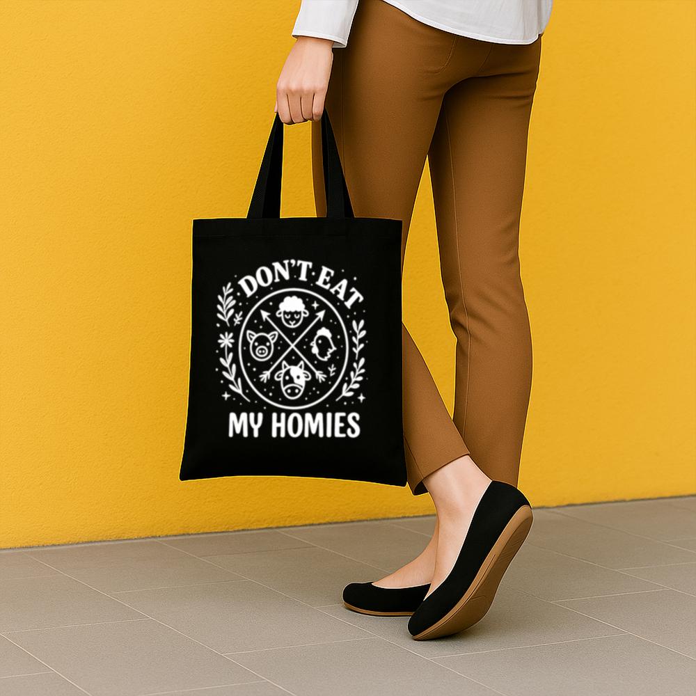 The Dont Eat My Homies Tote Bag is your new go-to for errands with ethics. With adorable line-drawn illustrations of your farm animal besties, this canvas tote lets you speak up for animal rights without saying a word. Simple, bold, and full of compassion, it’s the ideal companion for grocery trips, library runs, or vegan market strolls.