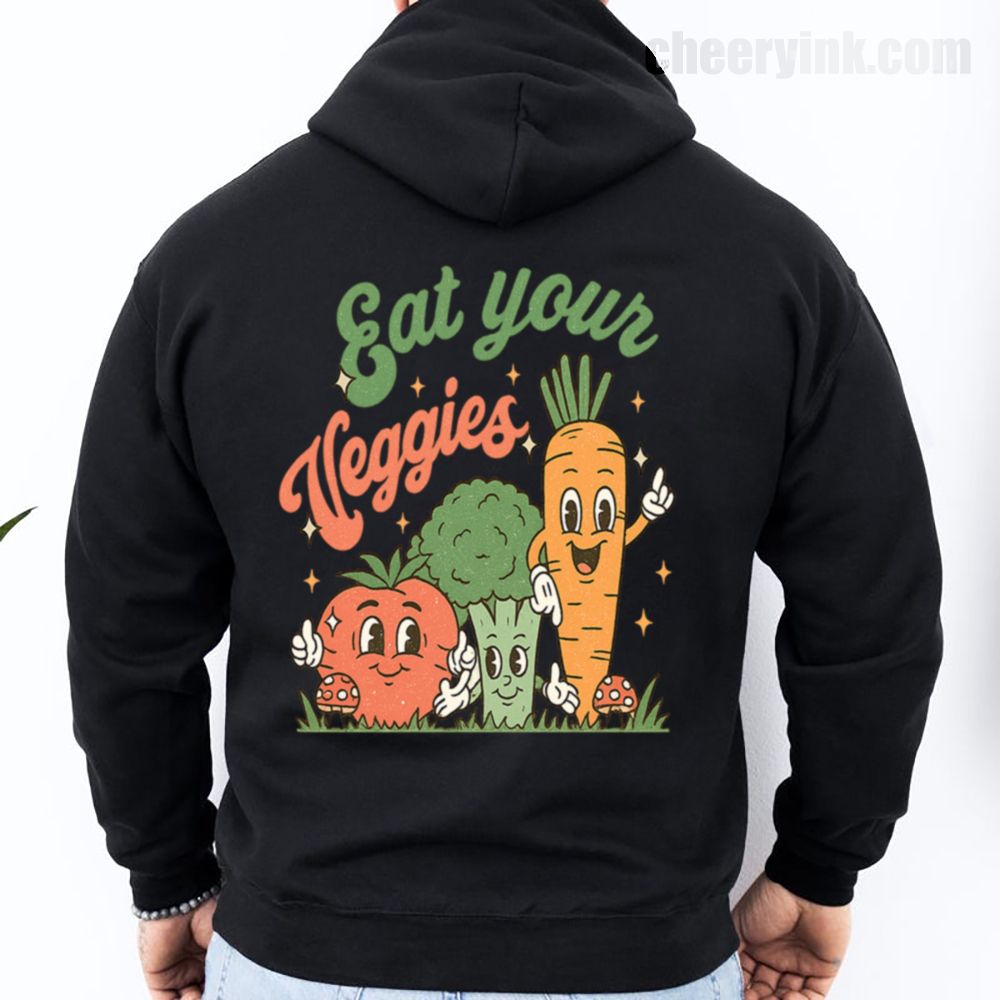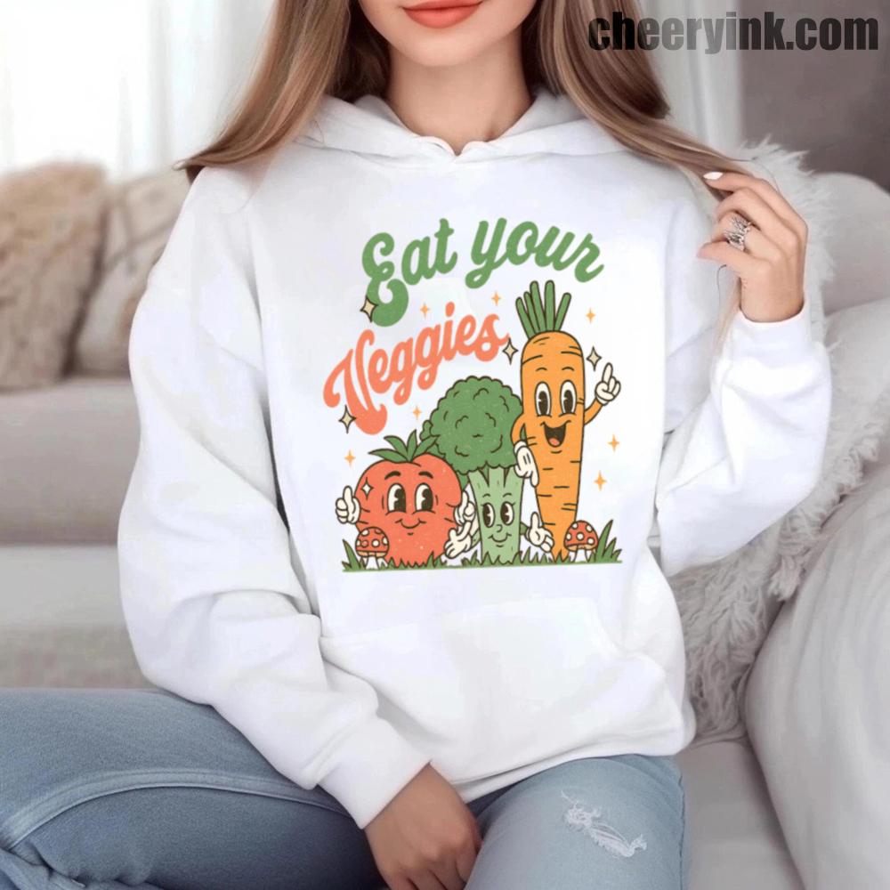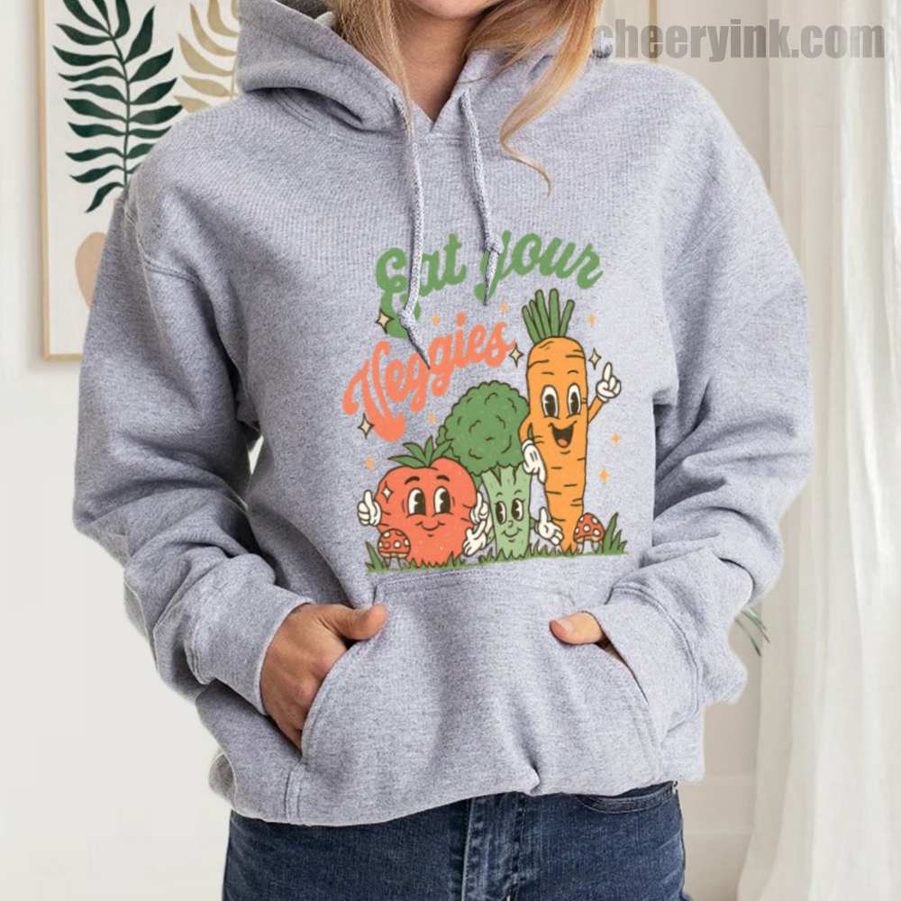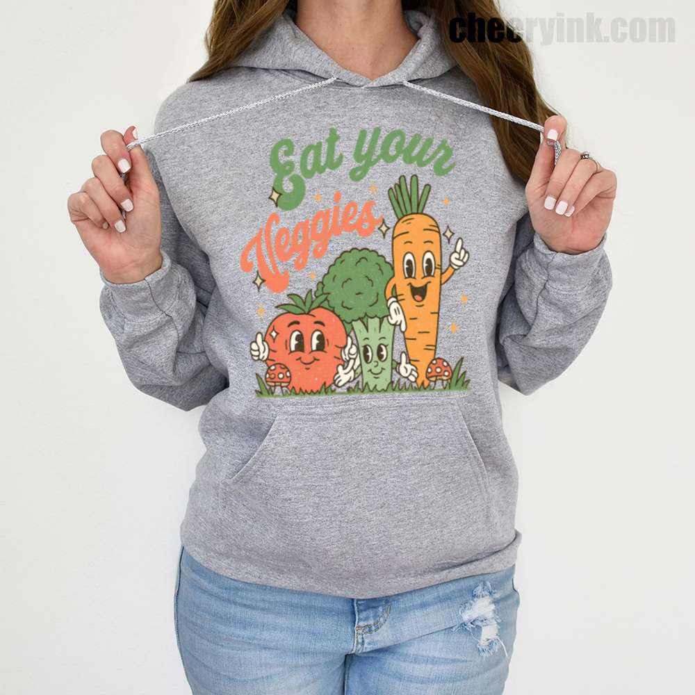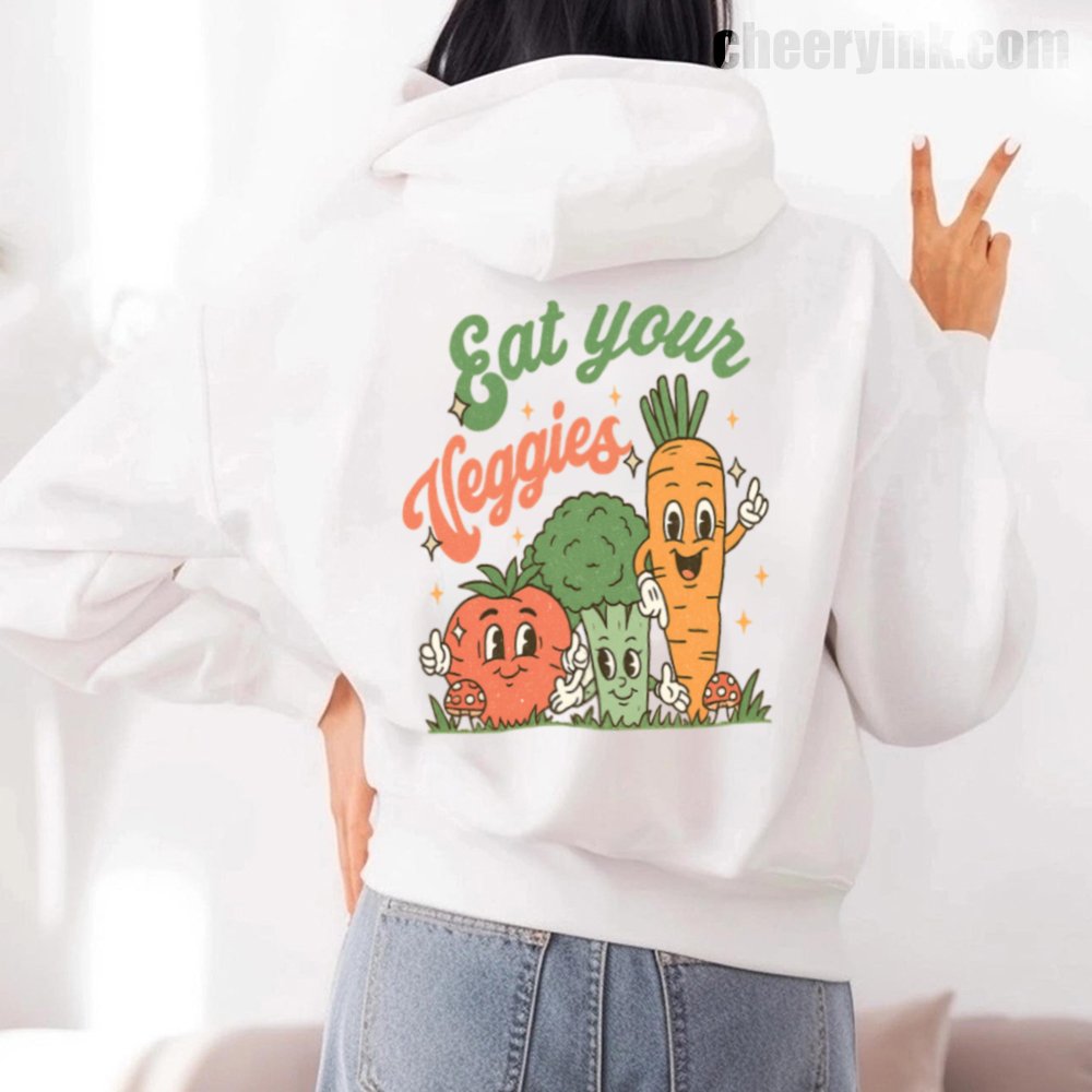 Wrap up in warmth and veggie-powered positivity with our Eat Your Veggies Hoodie Unisex. This unisex hoodie is as fun as it is functional, featuring a smiling carrot, broccoli, and tomato on a colorful background that screams retro charm. It’s perfect for making healthy living look cool and comfy.