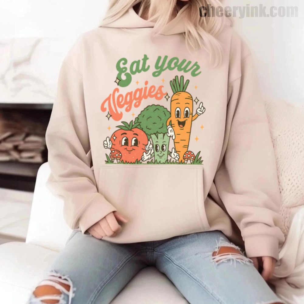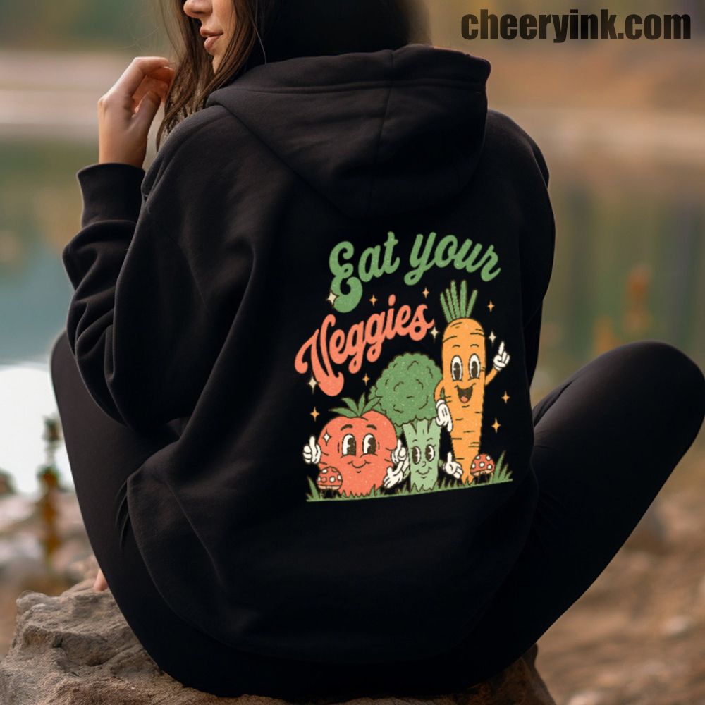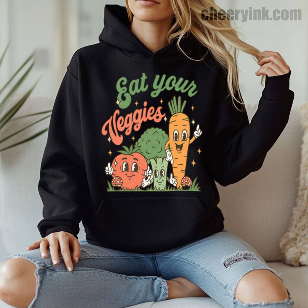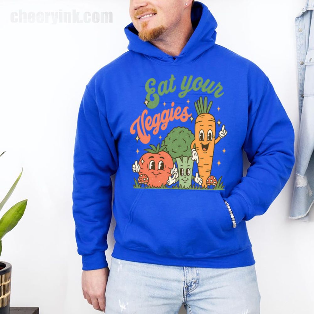 Wrap up in warmth and veggie-powered positivity with our Eat Your Veggies Hoodie Unisex. This unisex hoodie is as fun as it is functional, featuring a smiling carrot, broccoli, and tomato on a colorful background that screams retro charm. It’s perfect for making healthy living look cool and comfy.