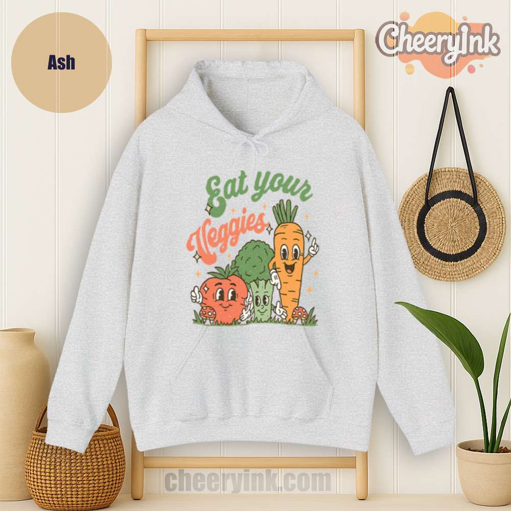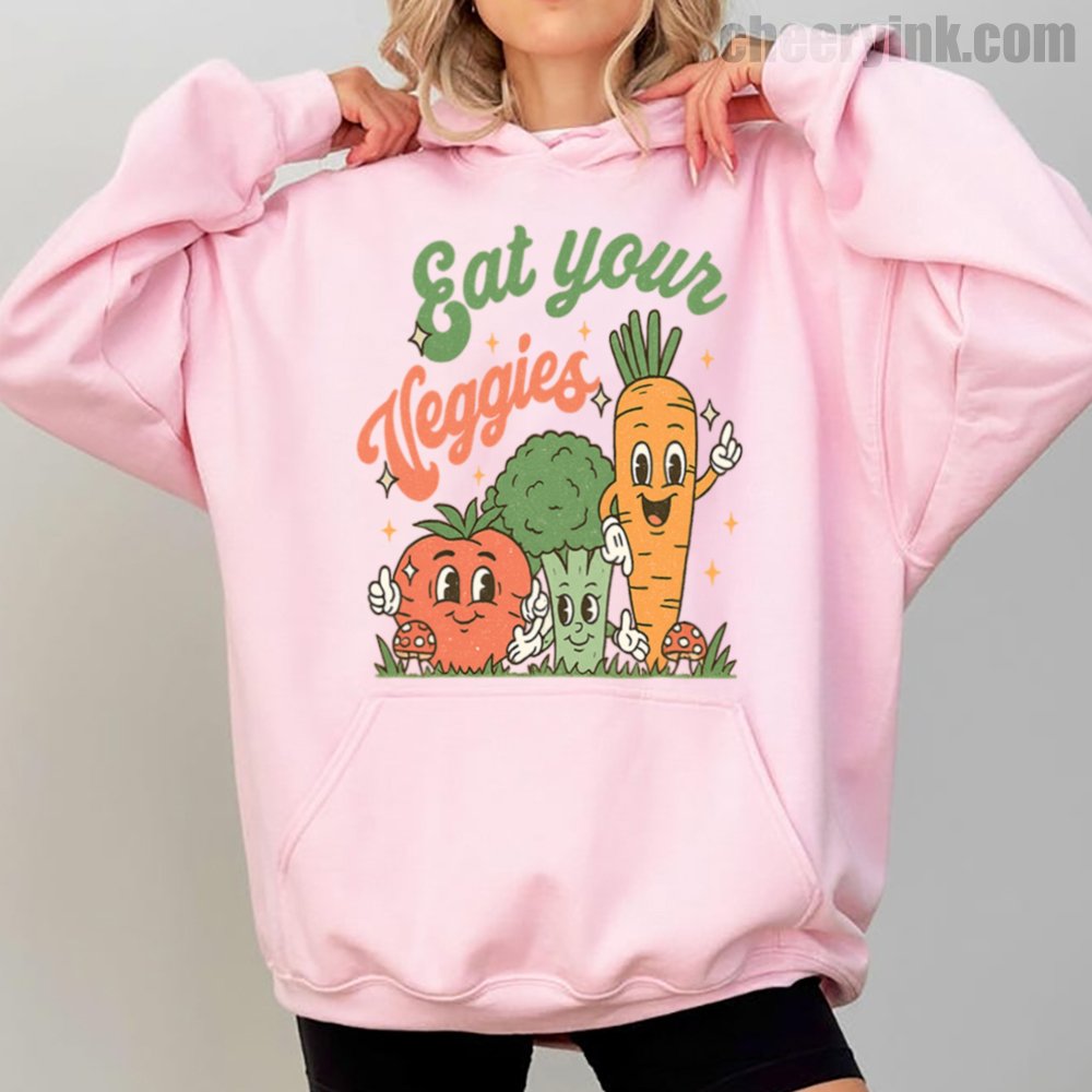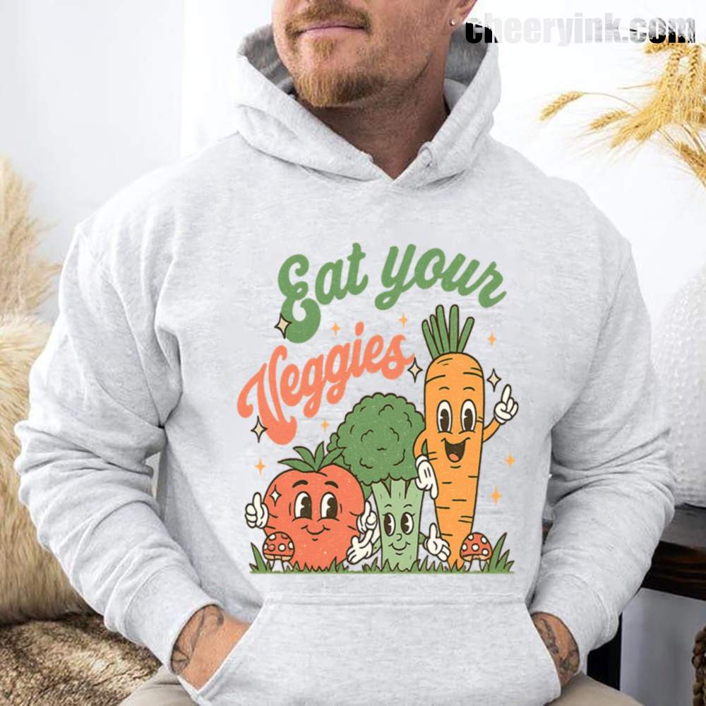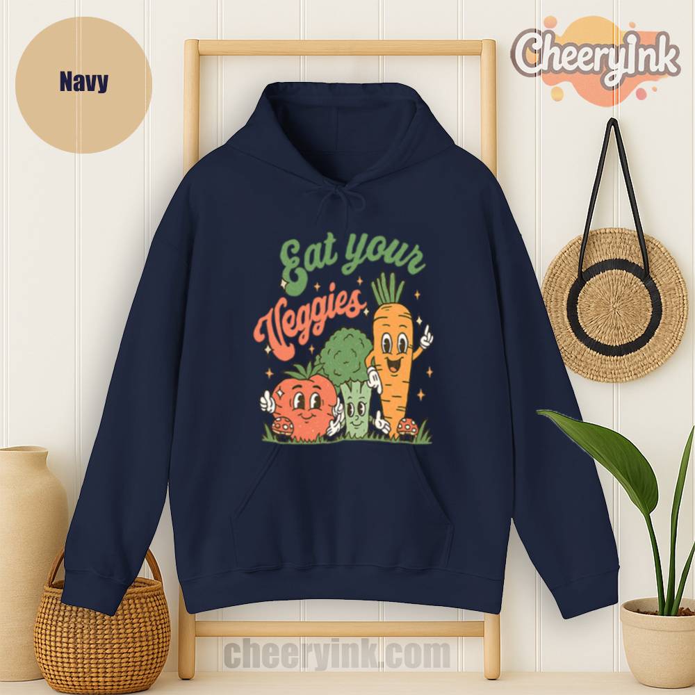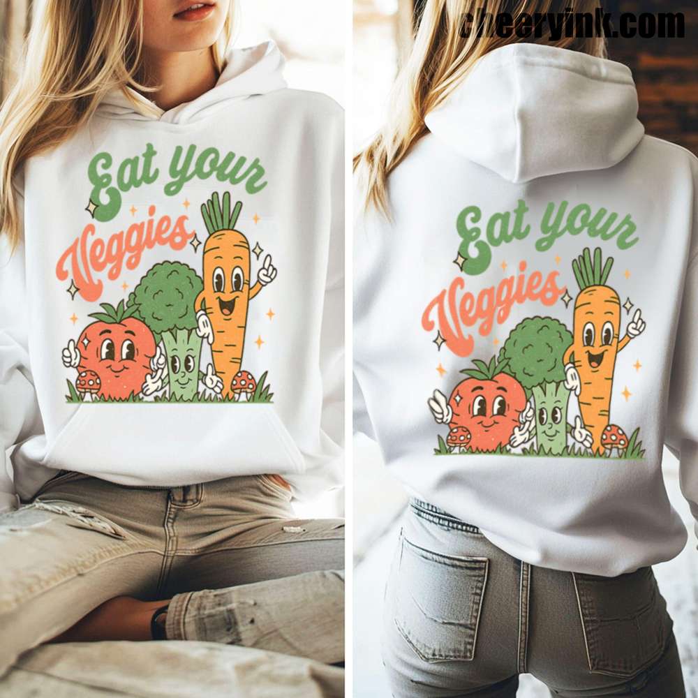 Wrap up in warmth and veggie-powered positivity with our Eat Your Veggies Hoodie Unisex. This unisex hoodie is as fun as it is functional, featuring a smiling carrot, broccoli, and tomato on a colorful background that screams retro charm. It’s perfect for making healthy living look cool and comfy.