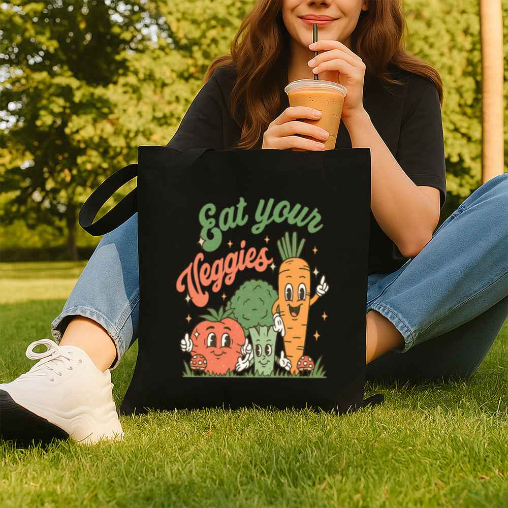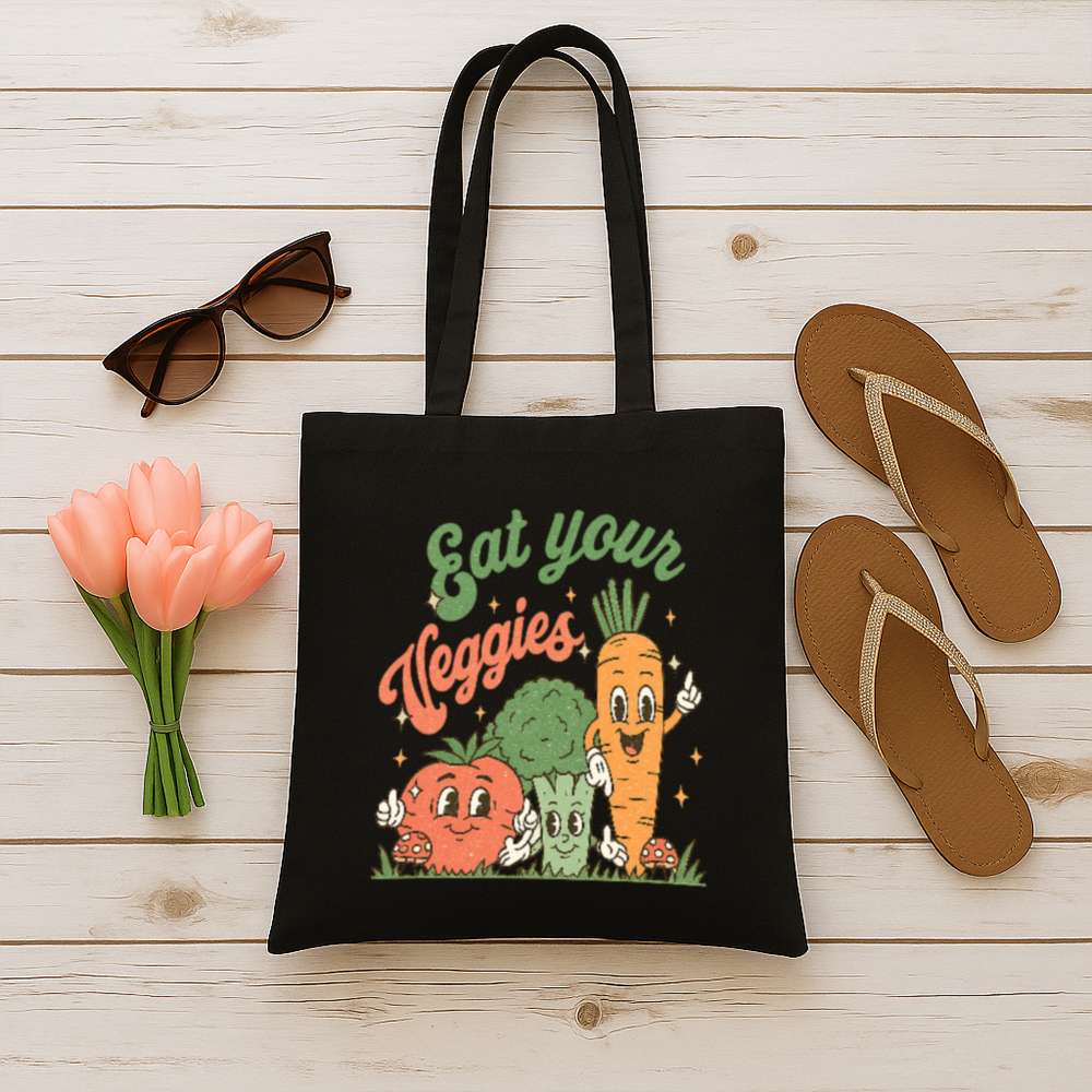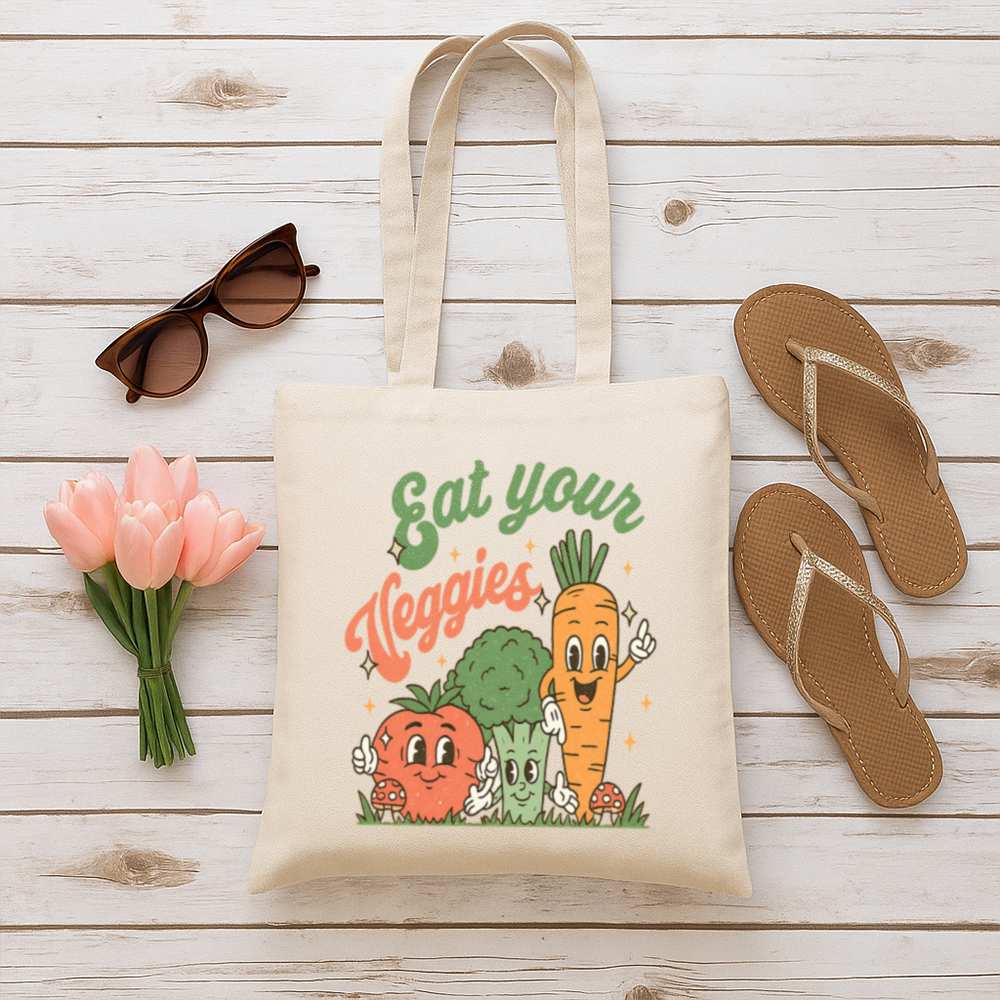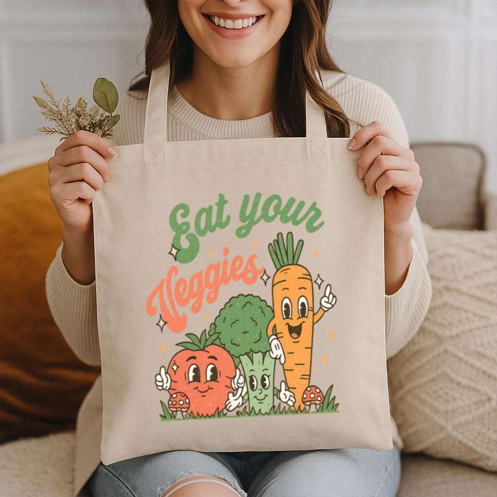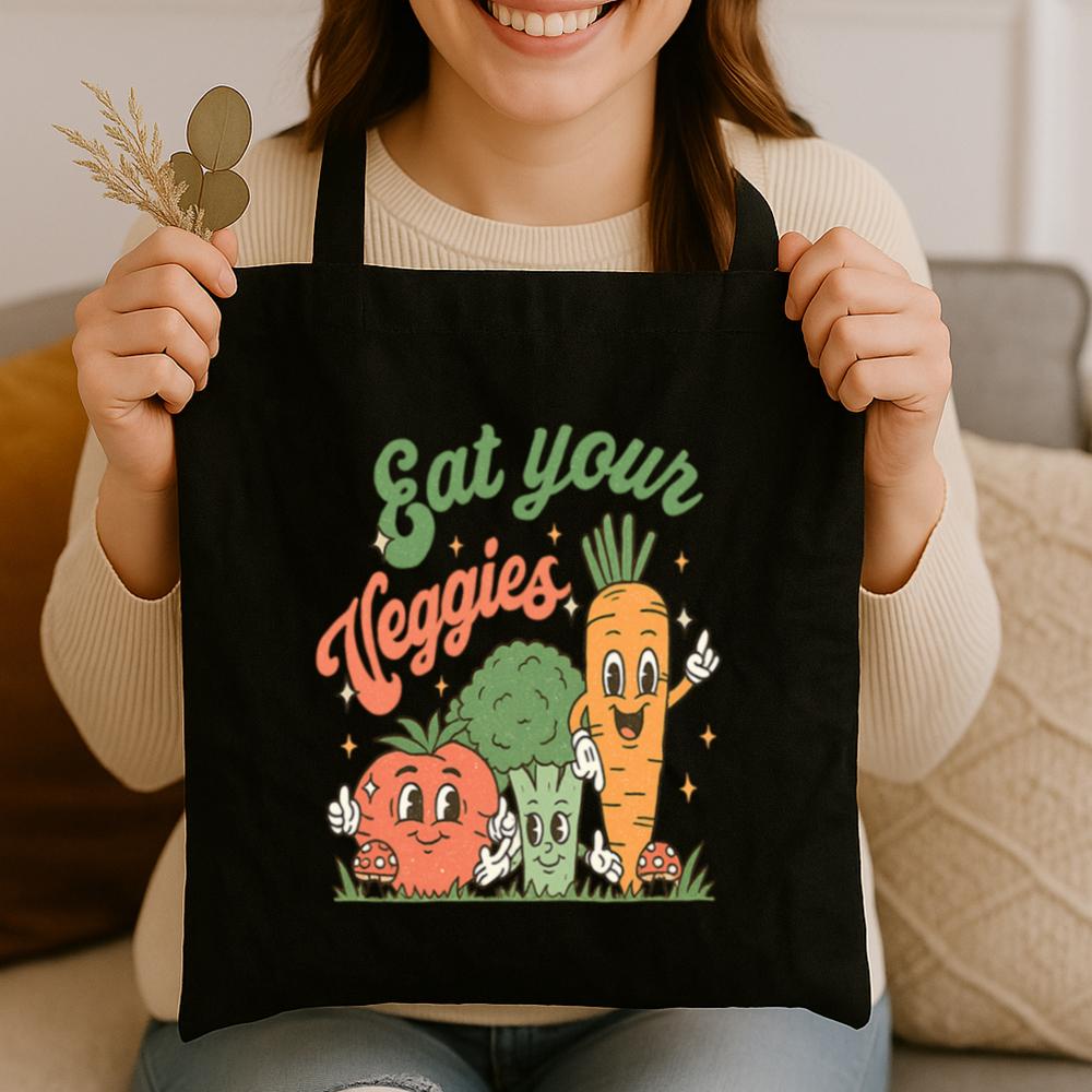 Spread smiles and healthy habits with the Eat Your Veggies Tote Bag. A colorful, reusable shopper perfect for groceries, books, or school.