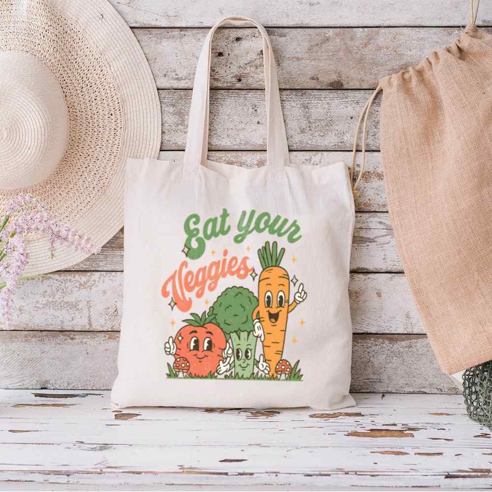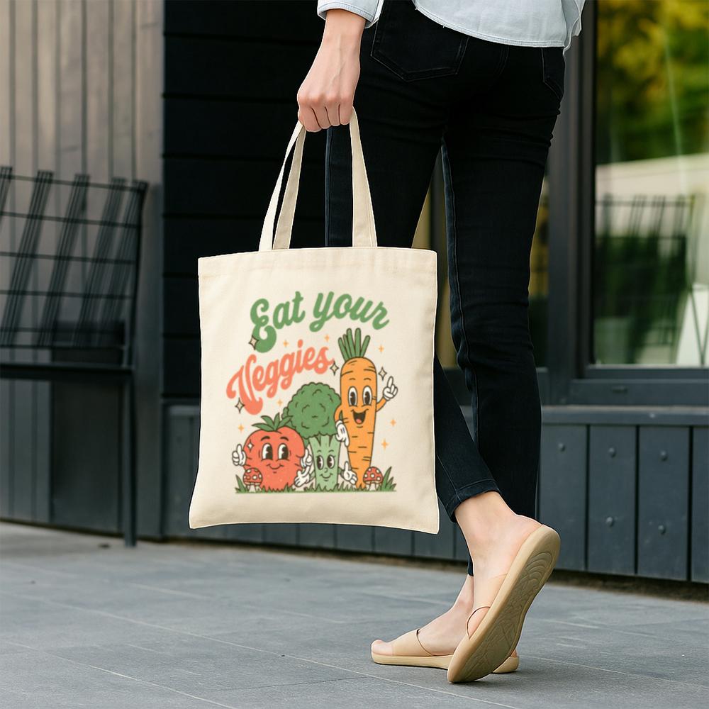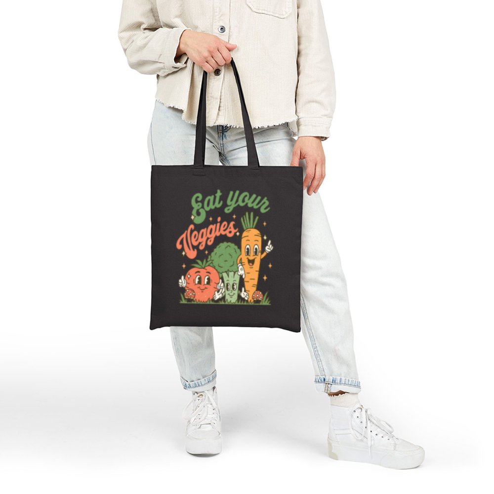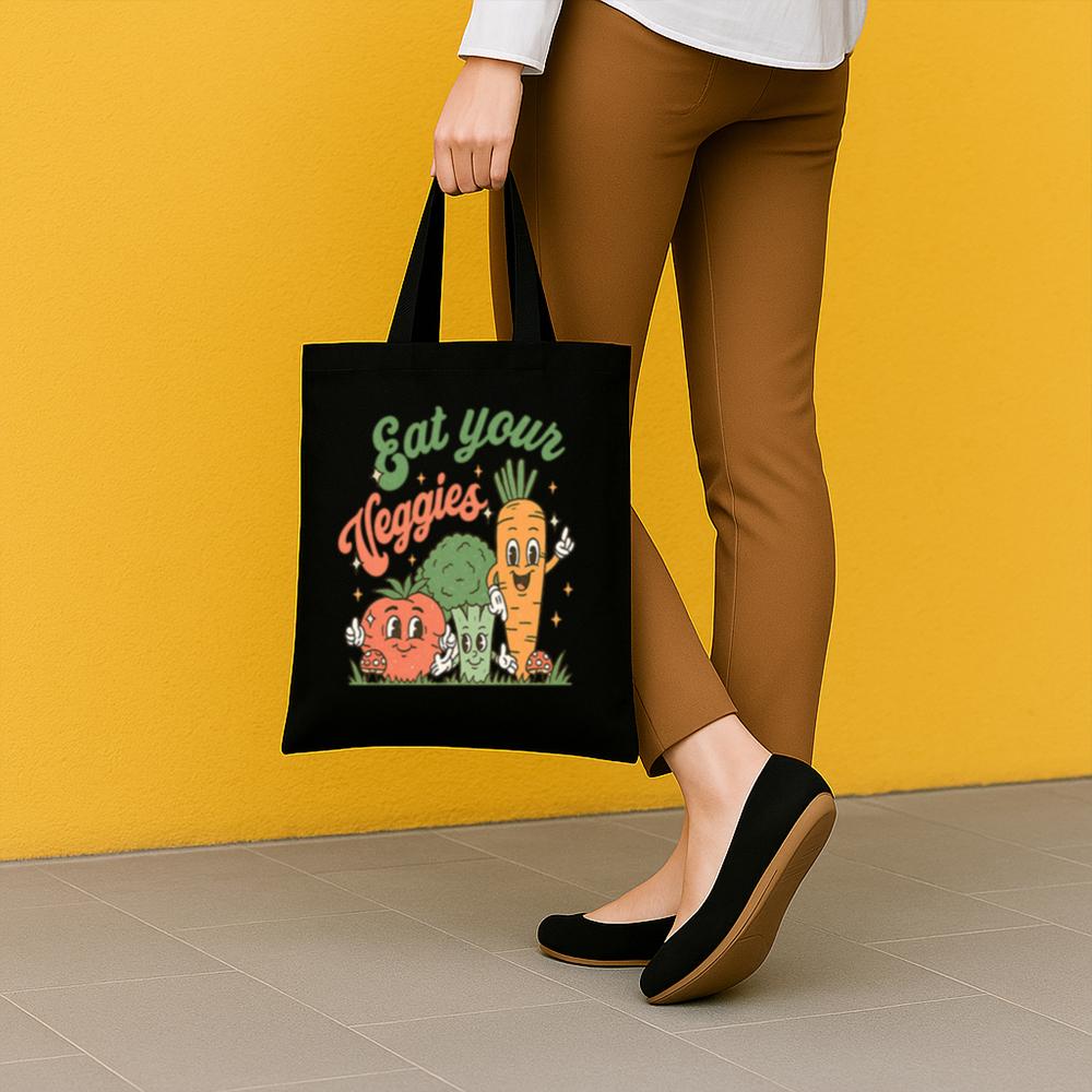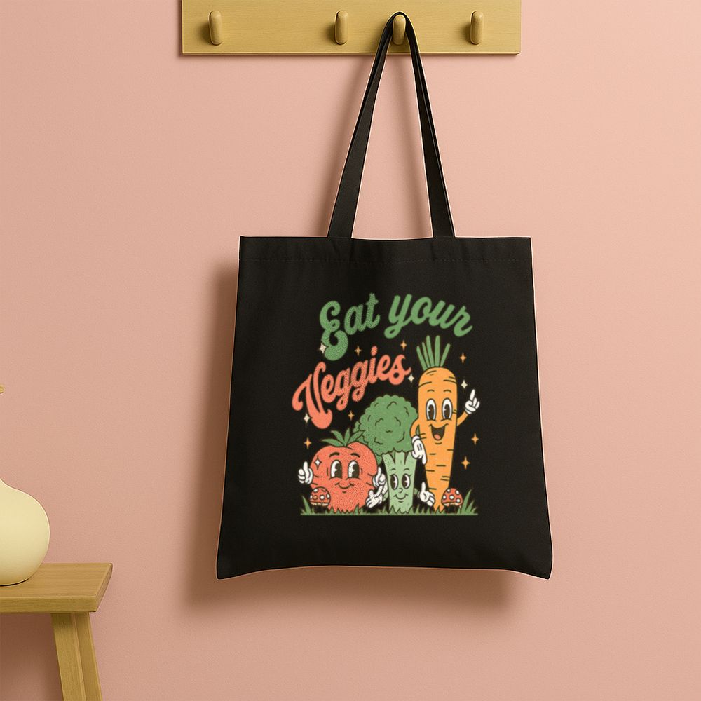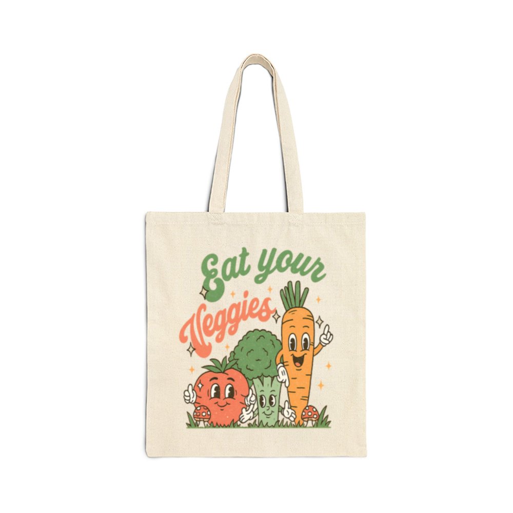 Spread smiles and healthy habits with the Eat Your Veggies Tote Bag. A colorful, reusable shopper perfect for groceries, books, or school.