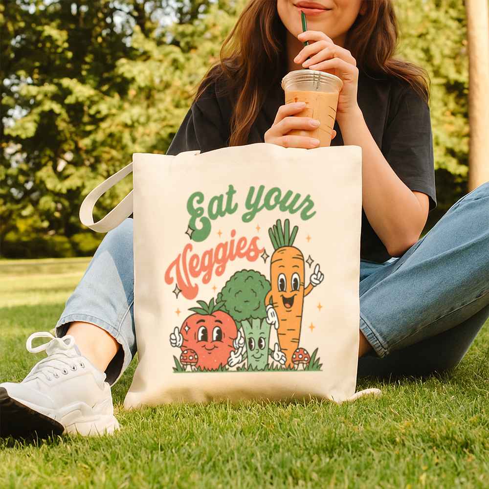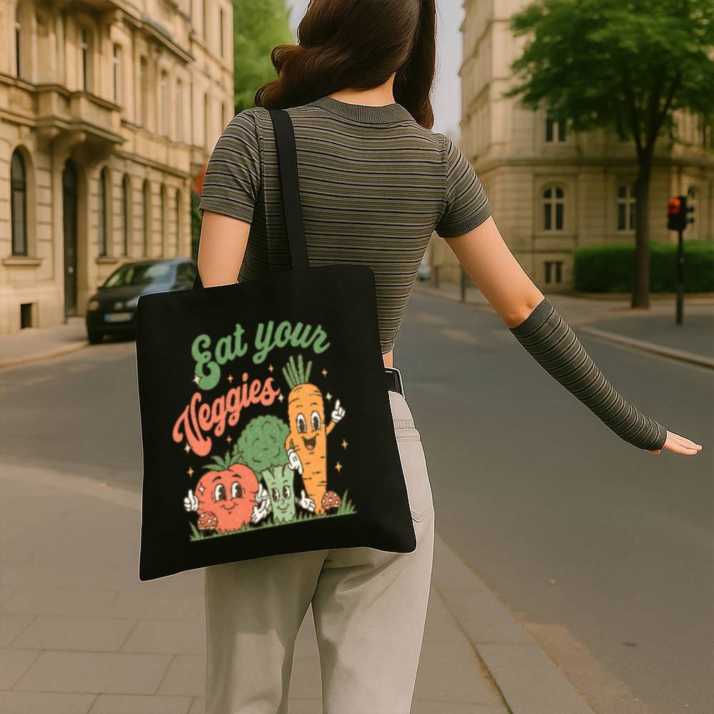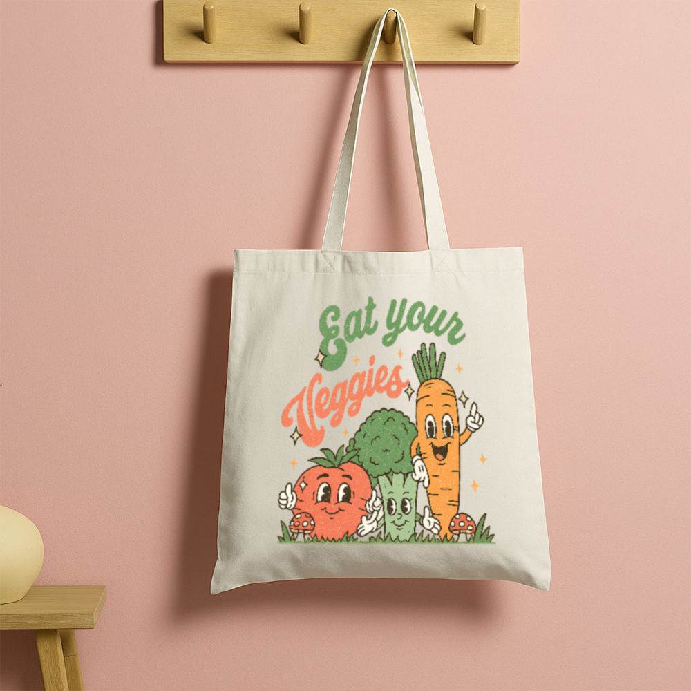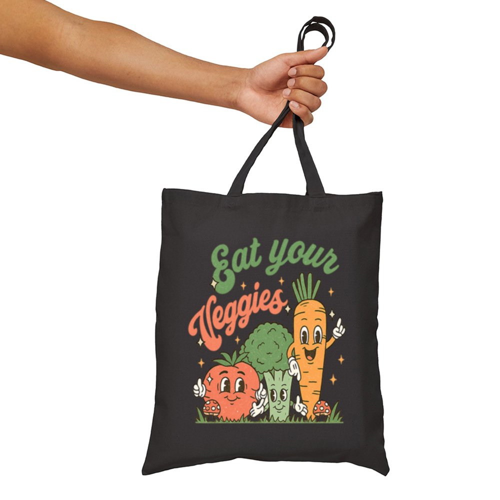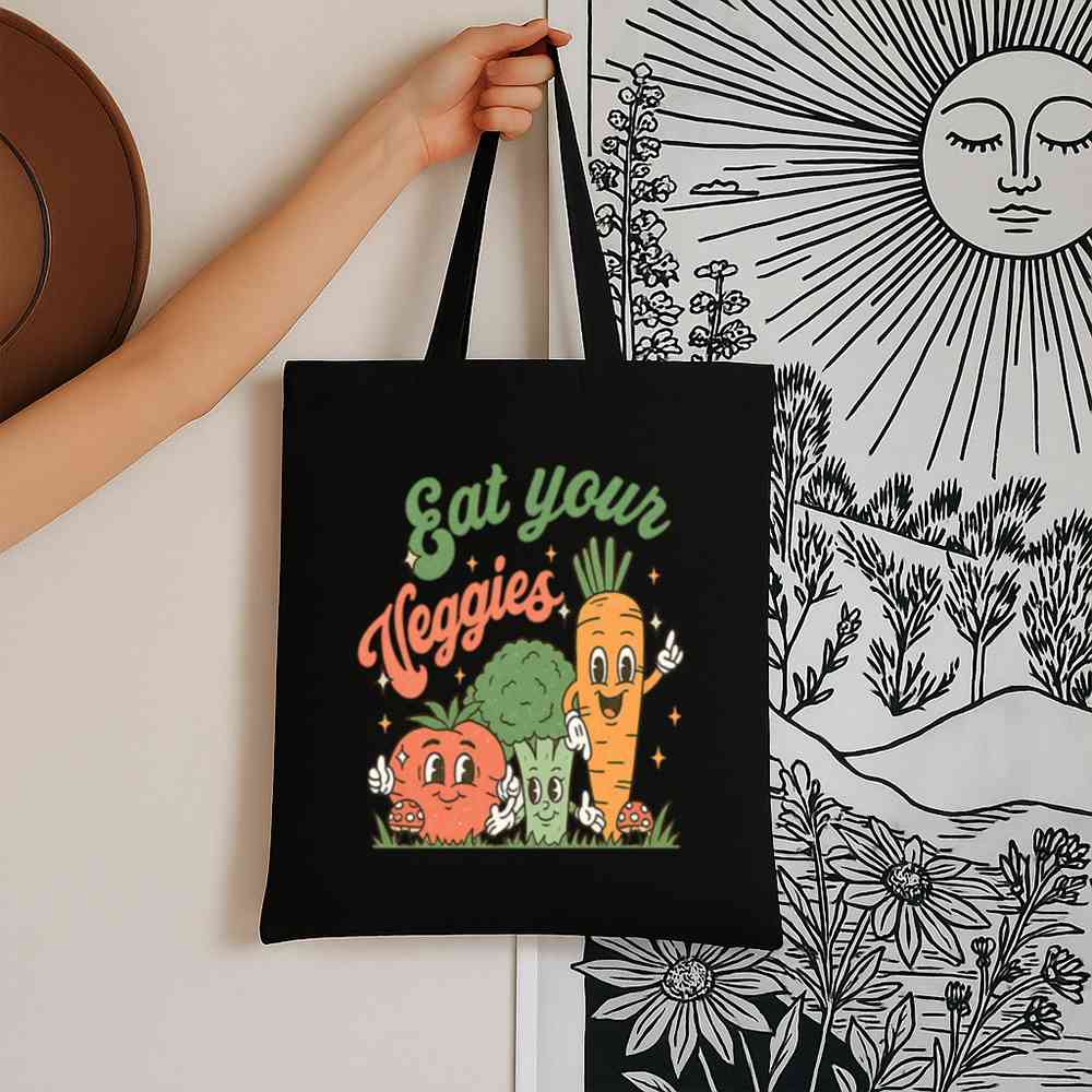 Spread smiles and healthy habits with the Eat Your Veggies Tote Bag. A colorful, reusable shopper perfect for groceries, books, or school.