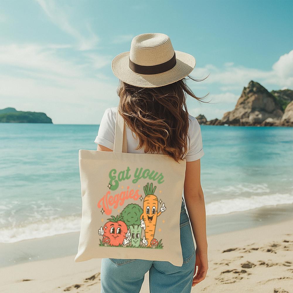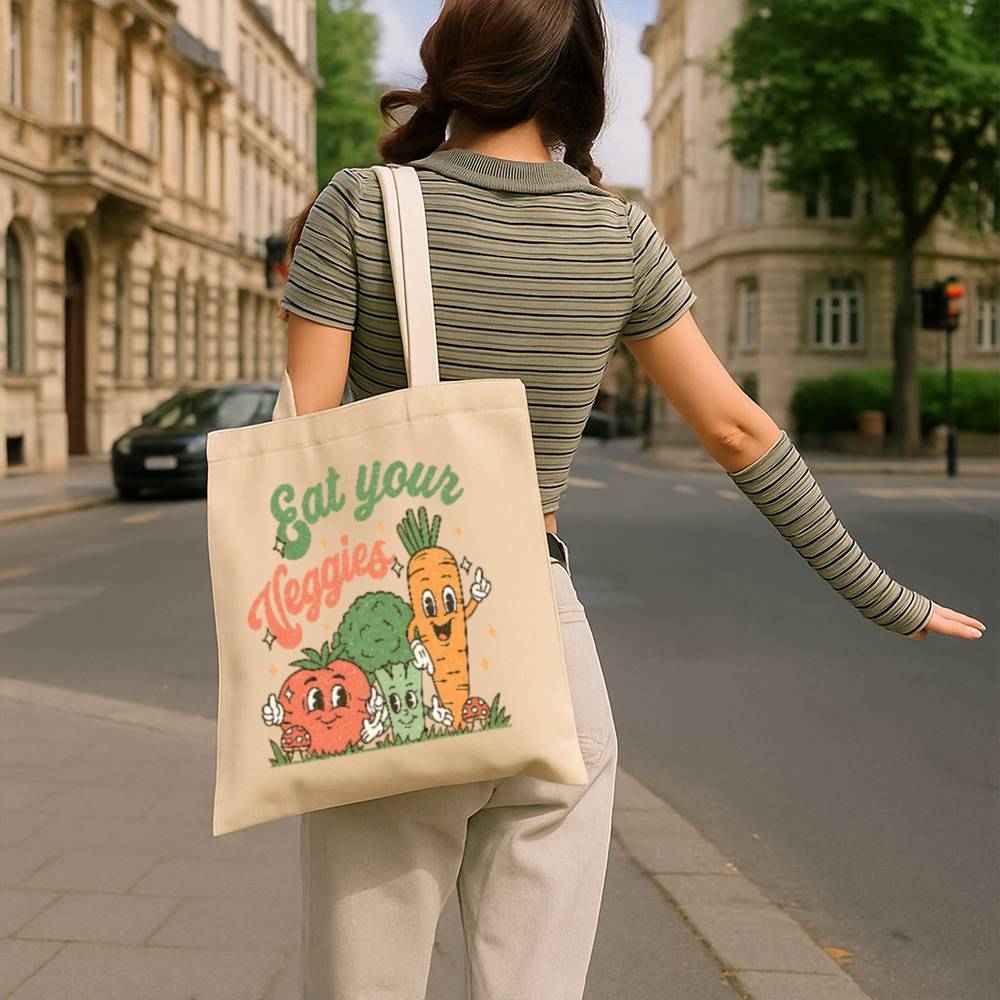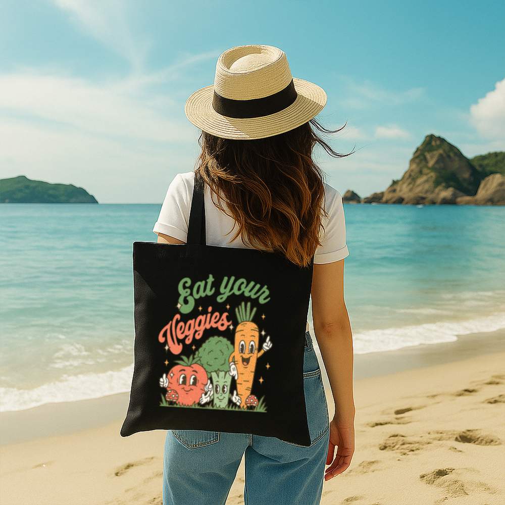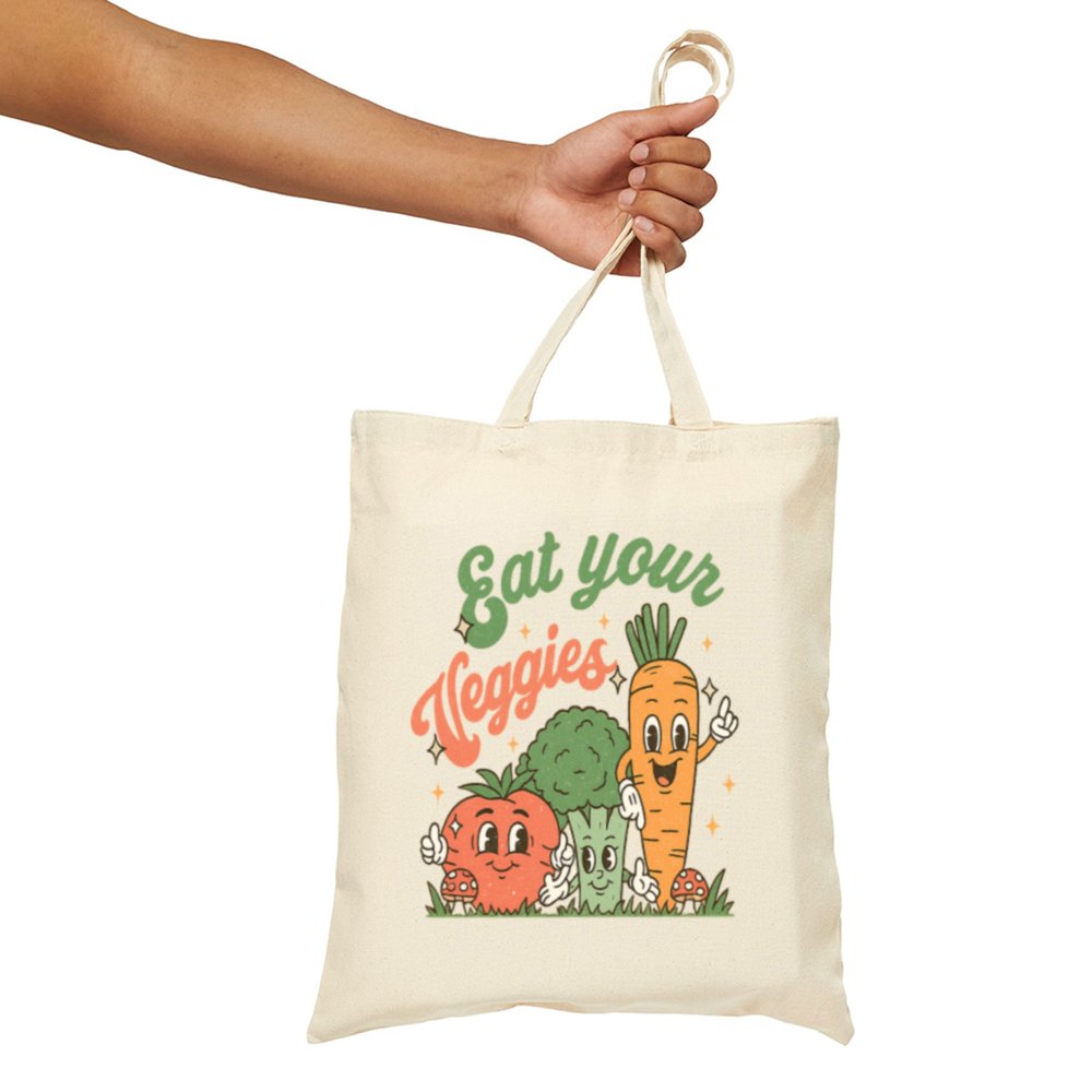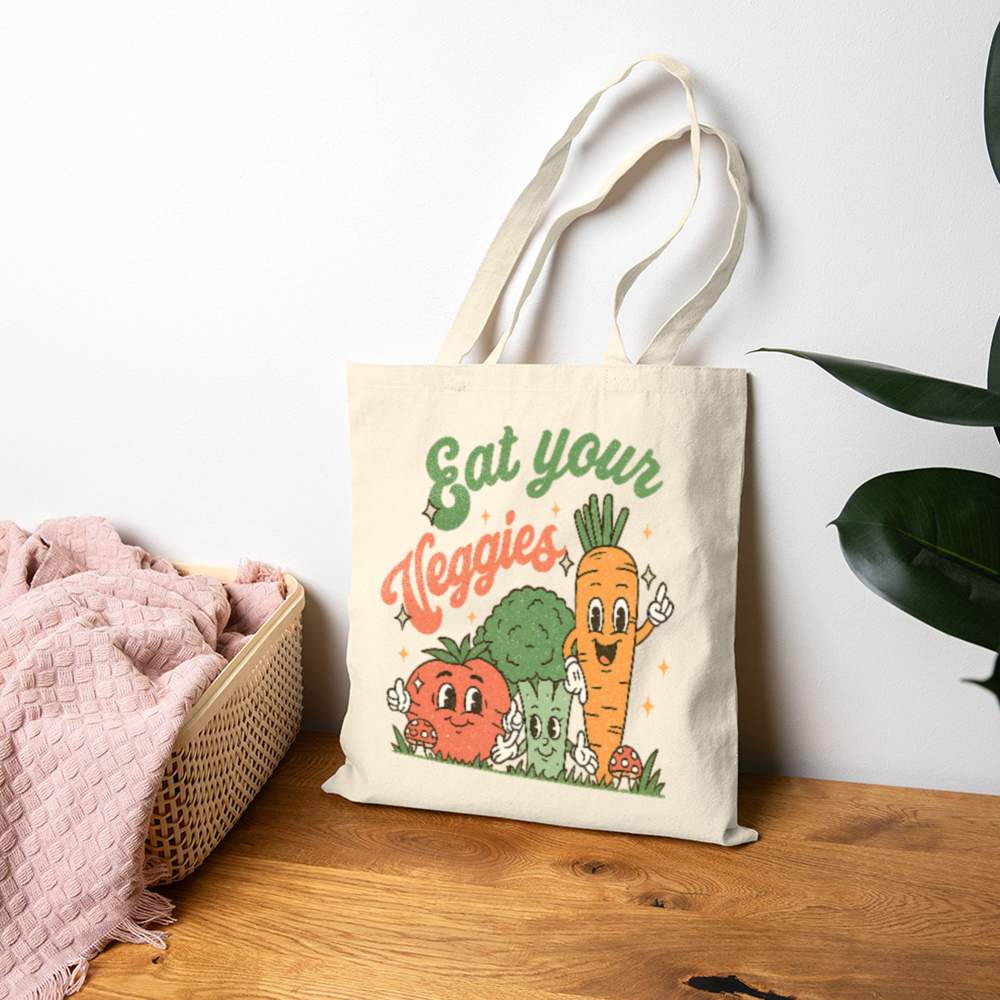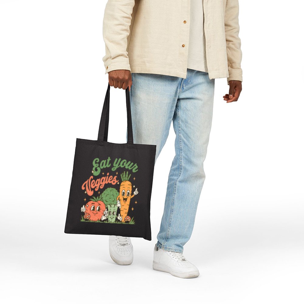 Spread smiles and healthy habits with the Eat Your Veggies Tote Bag. A colorful, reusable shopper perfect for groceries, books, or school.