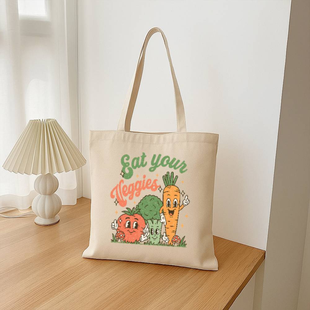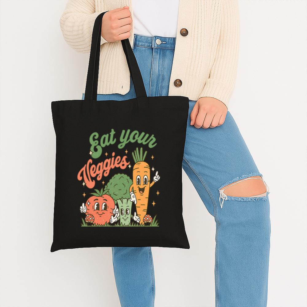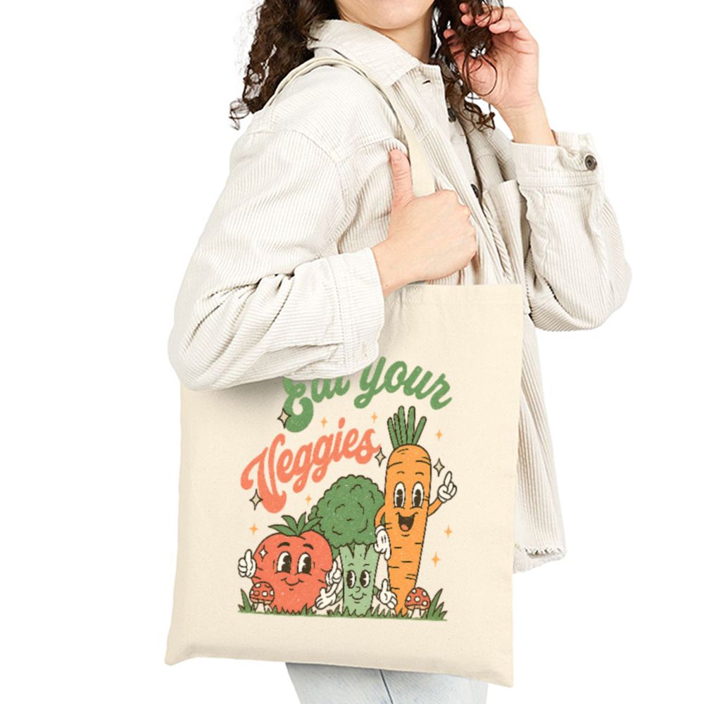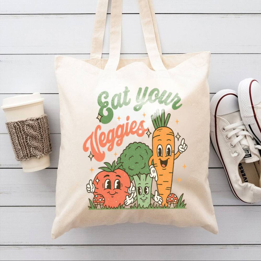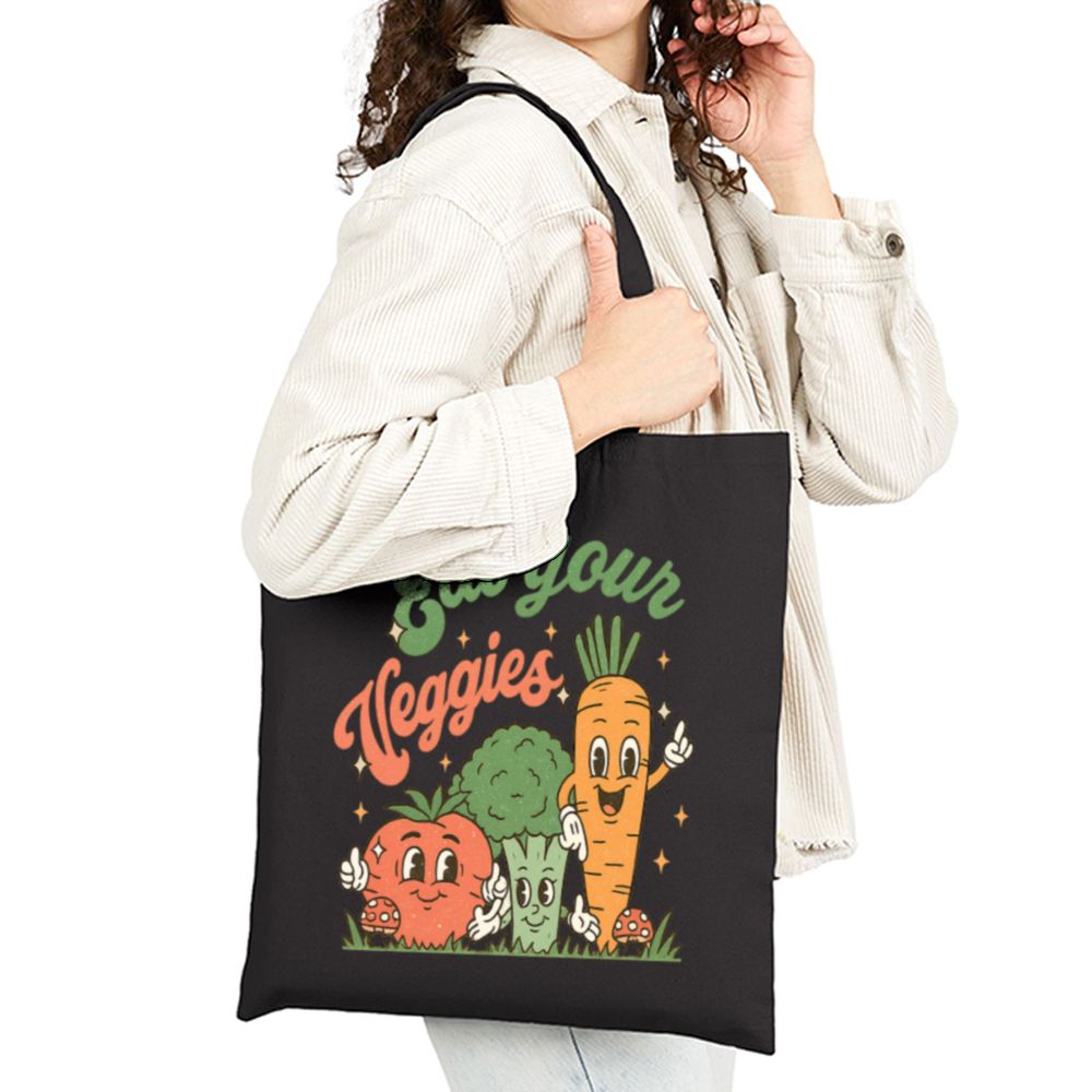 Eat Your Veggies Tote Bag Eco-Friendly Grocery Bag For Gift with Cute Veggies