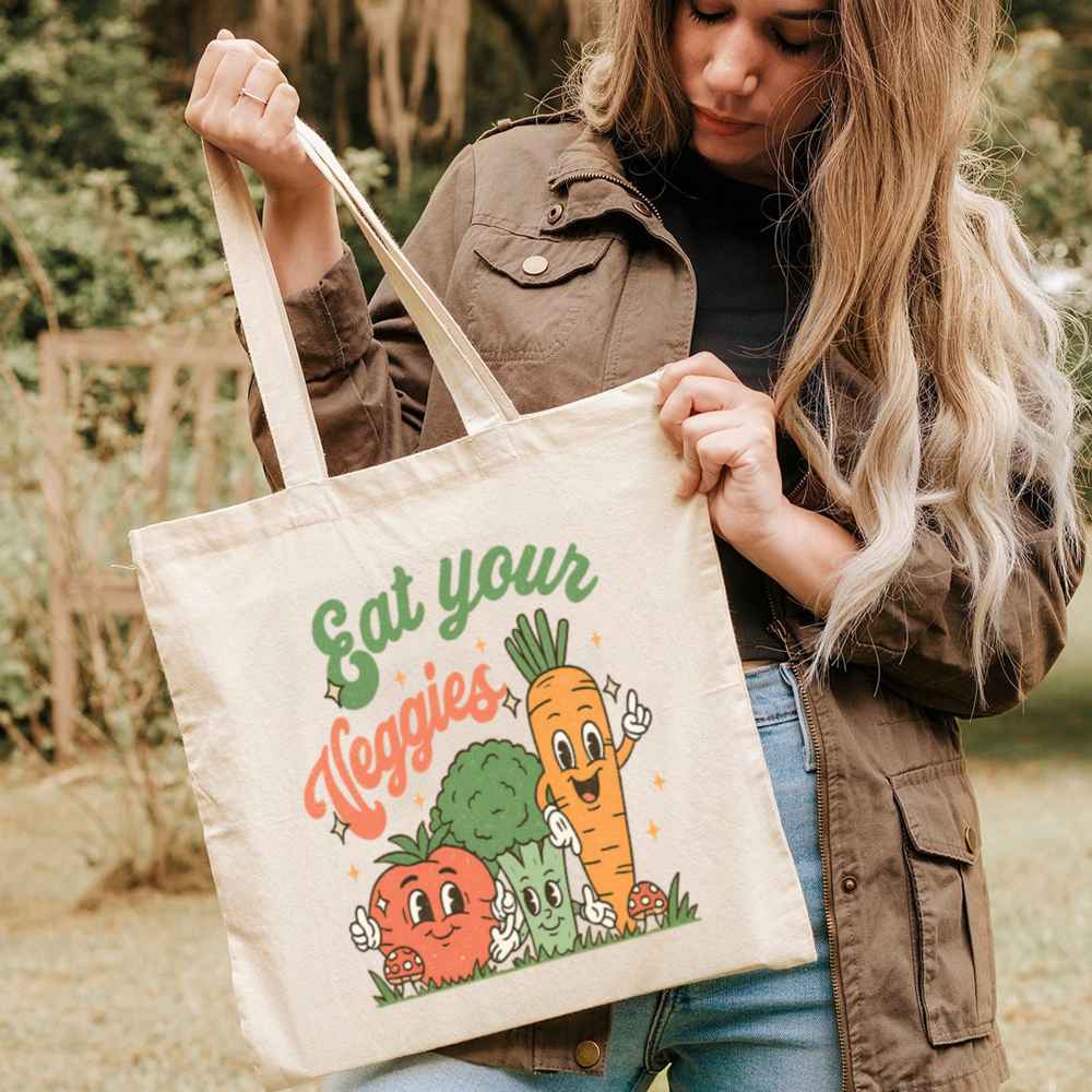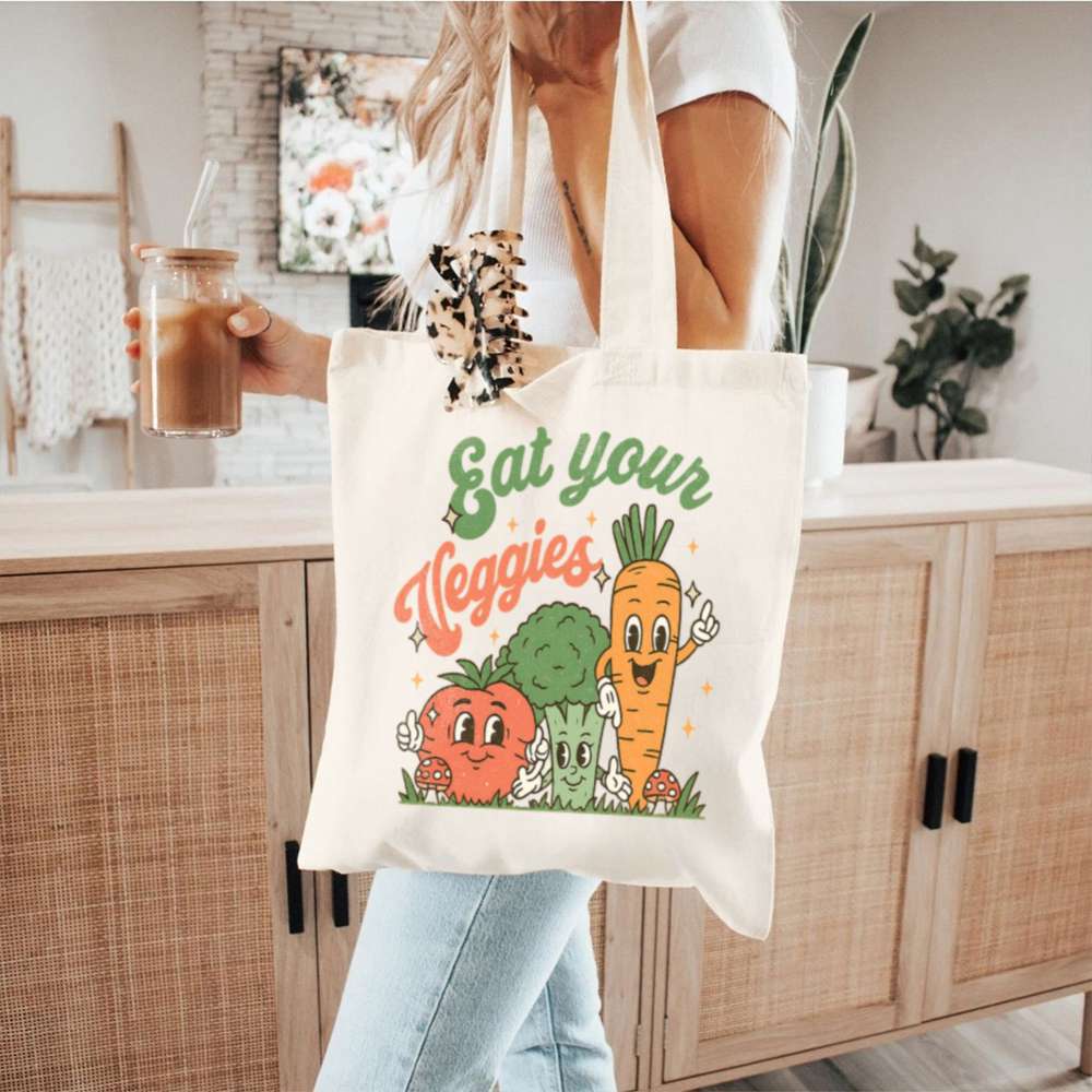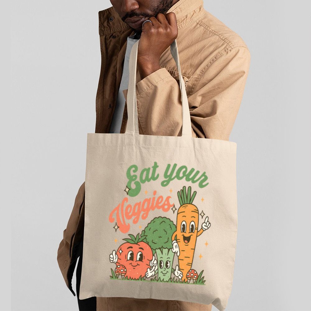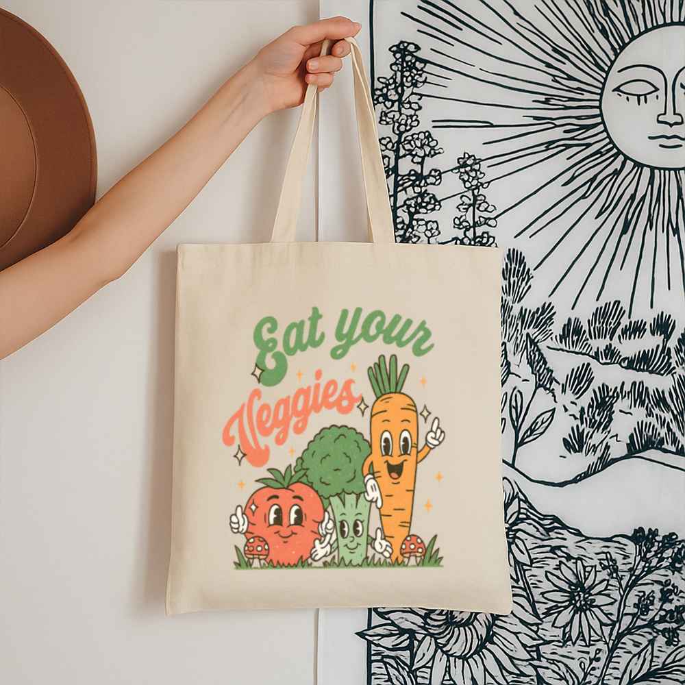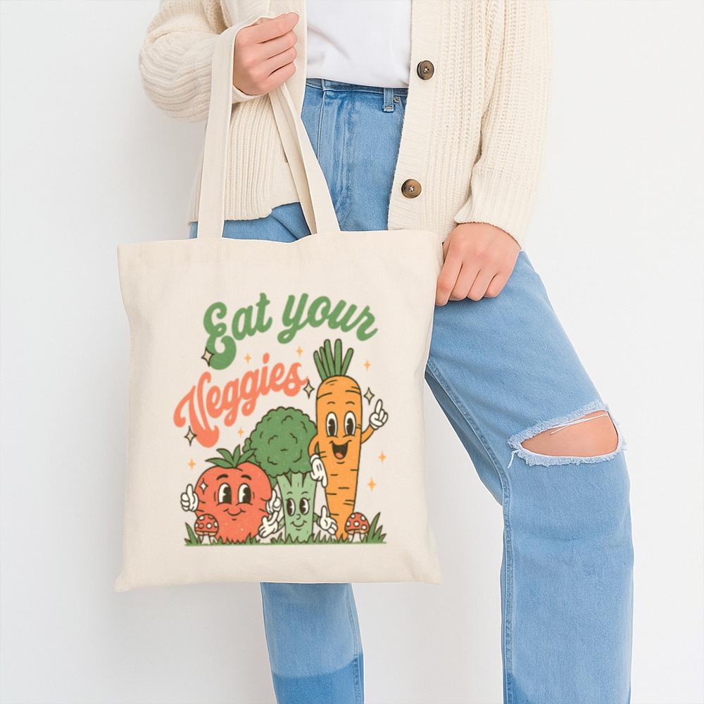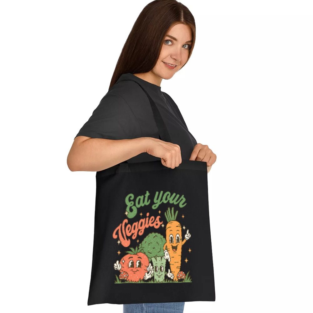 Eat Your Veggies Tote Bag Eco-Friendly Grocery Bag For Gift with Cute Veggies