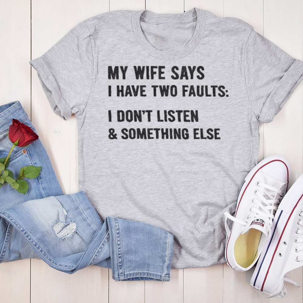 My Wife Says I Have Two Faults I Don T Listen Something Else Inappropriate Shirts For Introverts 12