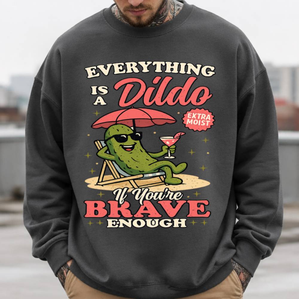 The Everything Is a Dildo Funny T-Shirt is for those who like their jokes spicy, their pickles sassy, and their punch lines unforgettable. Unisex fit with unapologetically adult humor. It’s flirty, weird, and guaranteed to turn heads (and maybe cause a few blushes). Perfect for brave souls with a wild sense of humor.