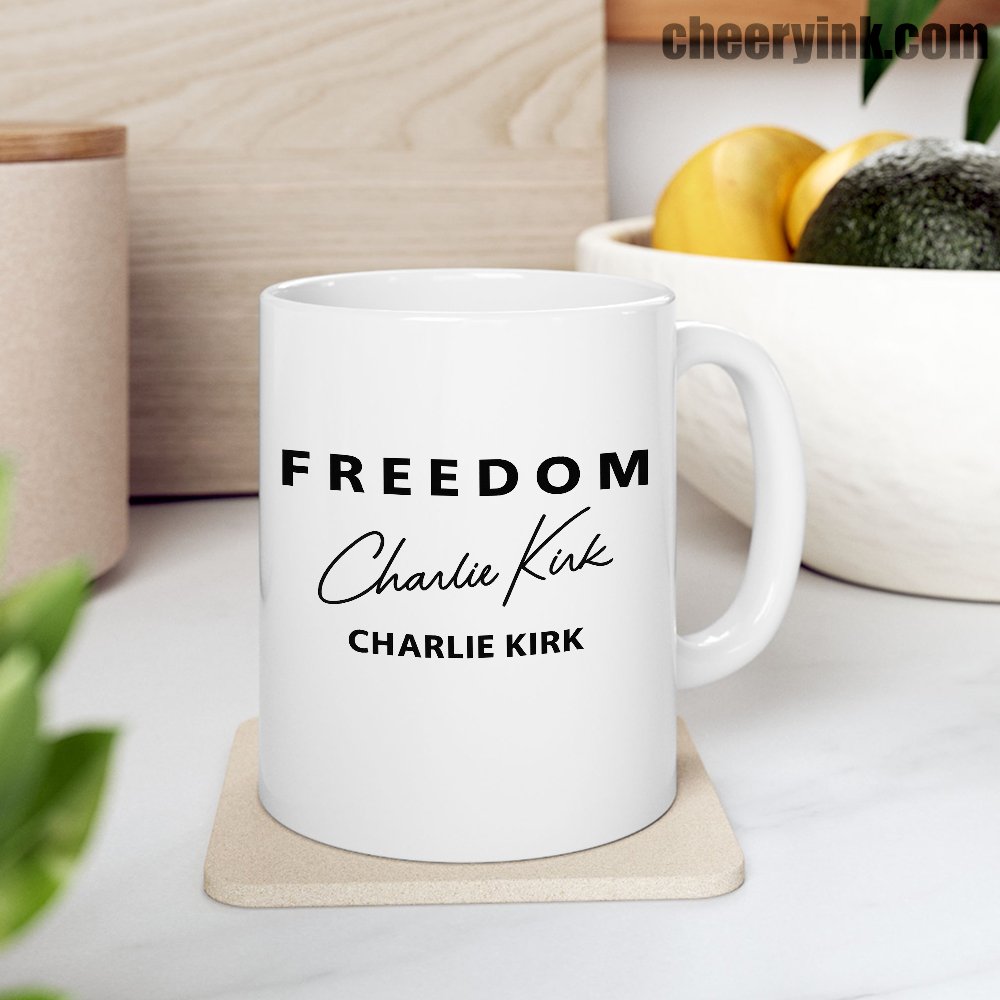 Sip with conviction using the Freedom Charlie Kirk Mug. Designed for those who believe in bold ideas and strong values, this ceramic mug features a clean black design with “FREEDOM” and Charlie Kirk’s signature printed front and center. Whether it’s morning coffee or afternoon tea, this mug keeps your message visible and your spirit strong.