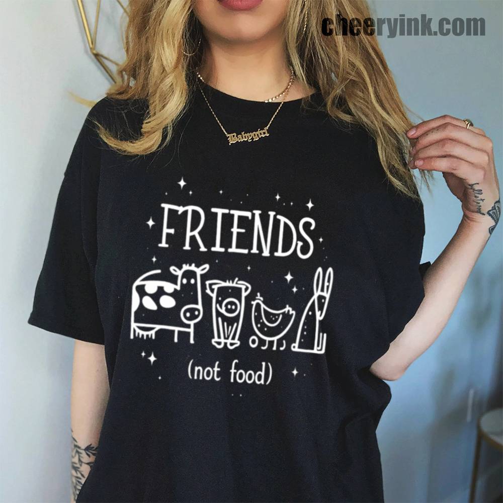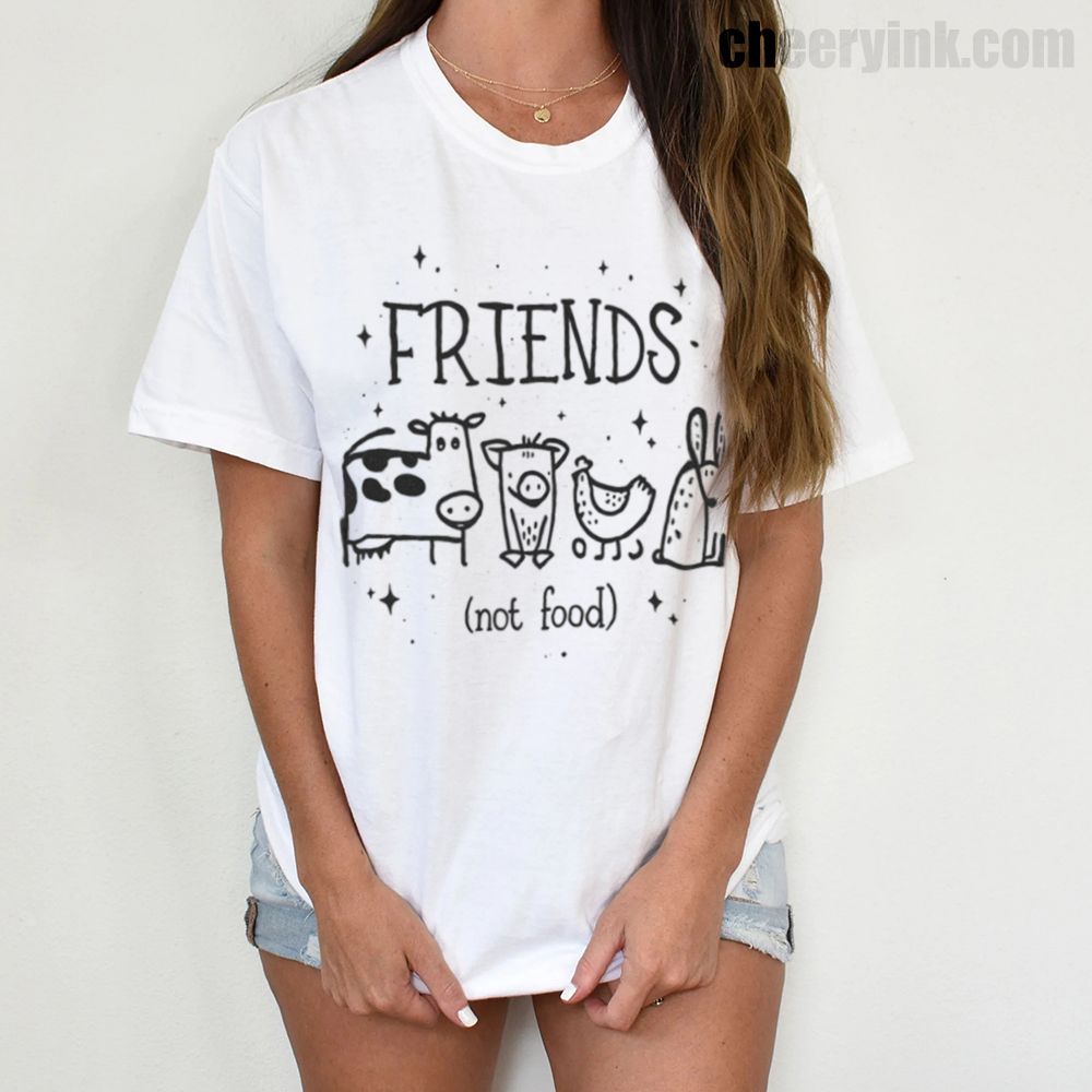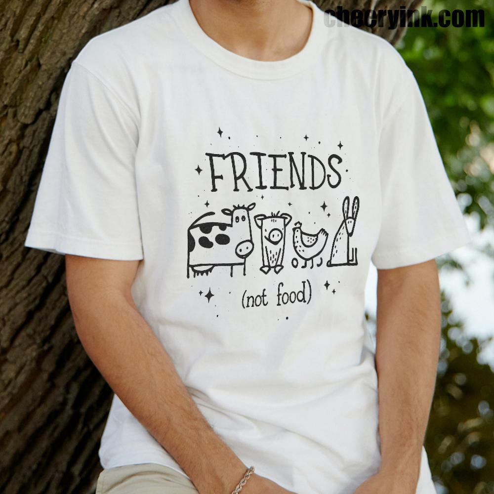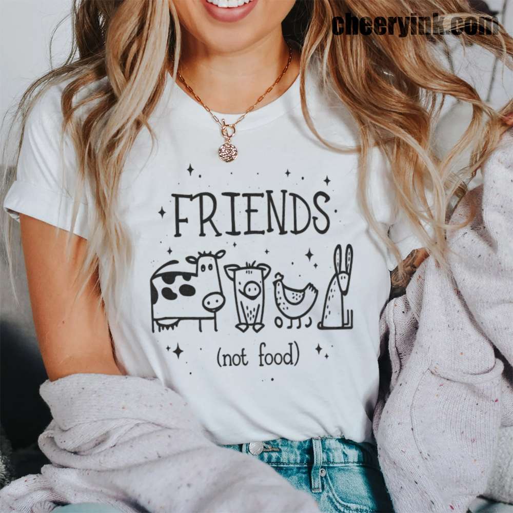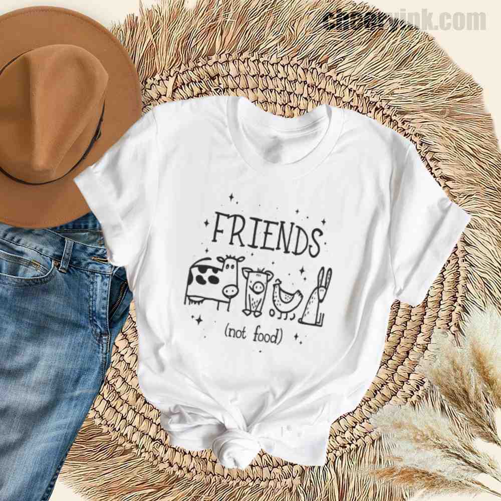 Let your outfit reflect your values with the Friends Not Food T-Shirt. This heart warming design shows four lovable animal friends a cow, pig, chicken, and rabbit under the clear message that they are companions, not cuisine. It’s ideal for vegans, vegetarians, and anyone advocating for kindness over cruelty.