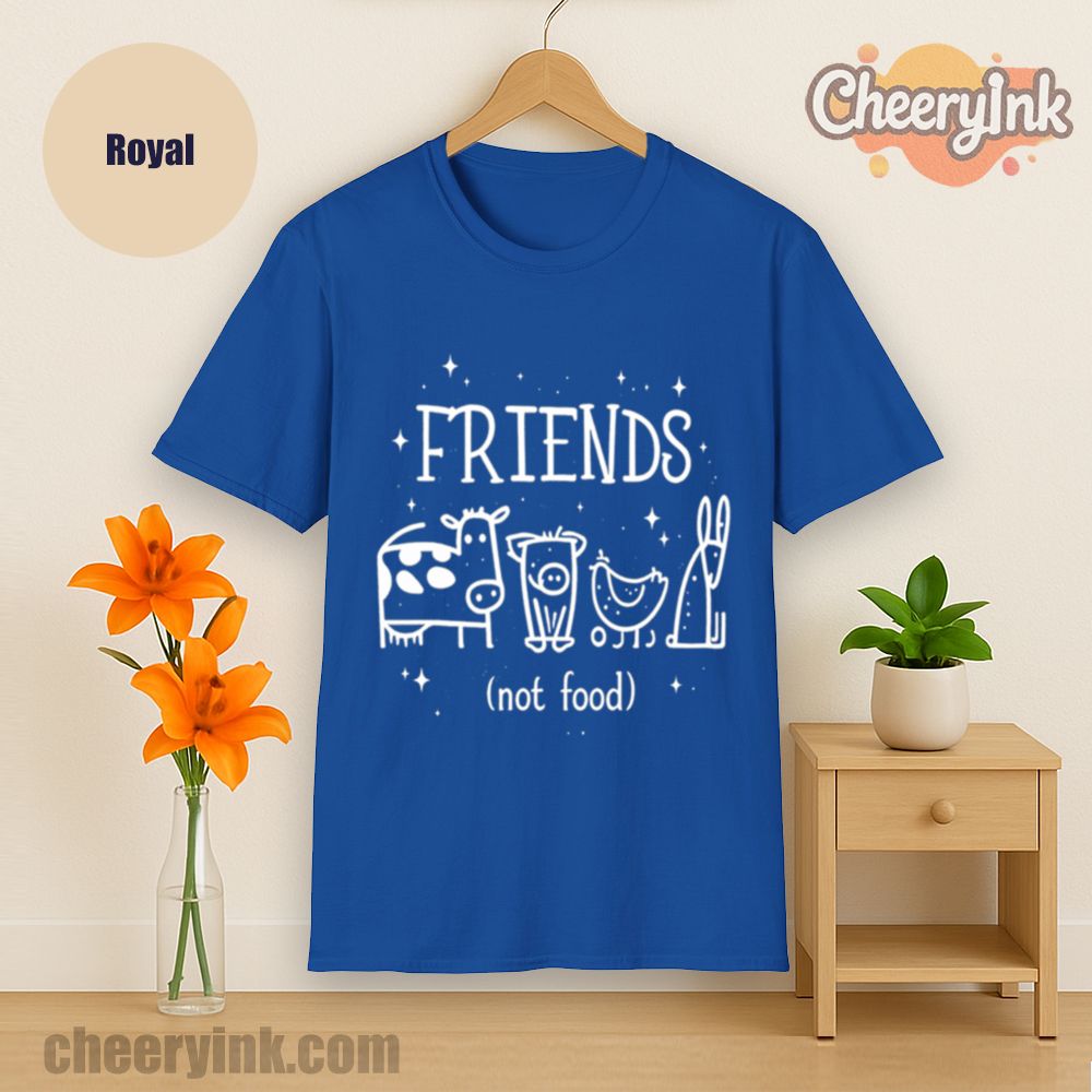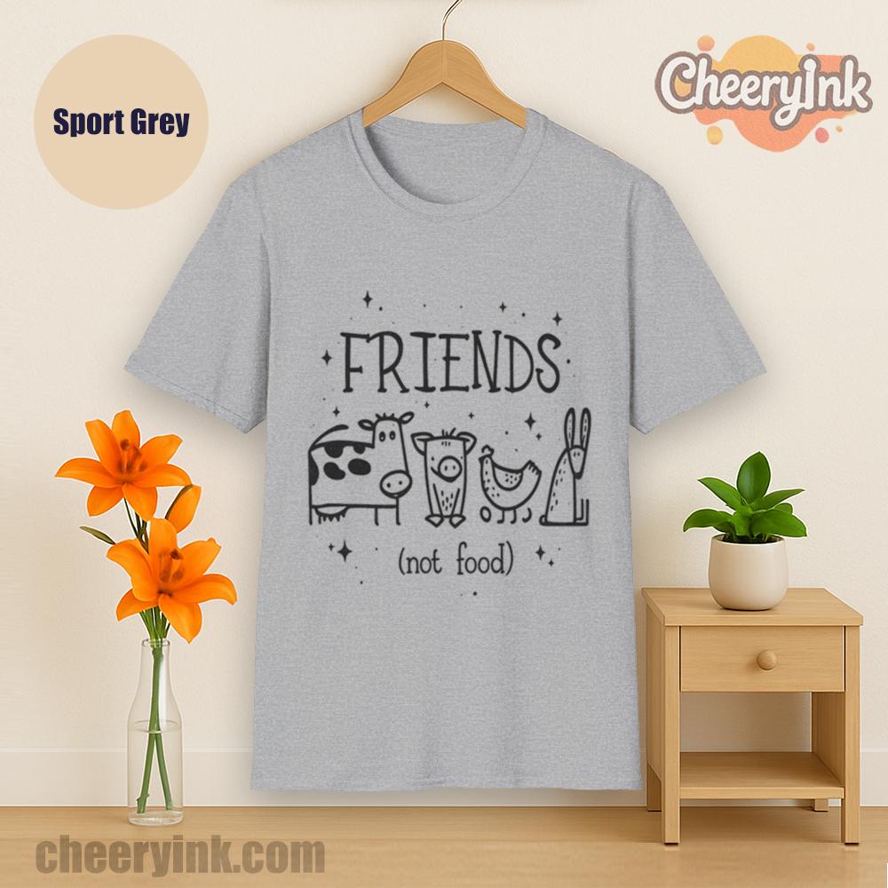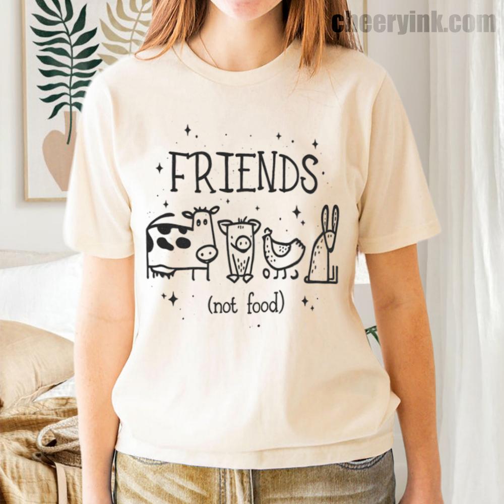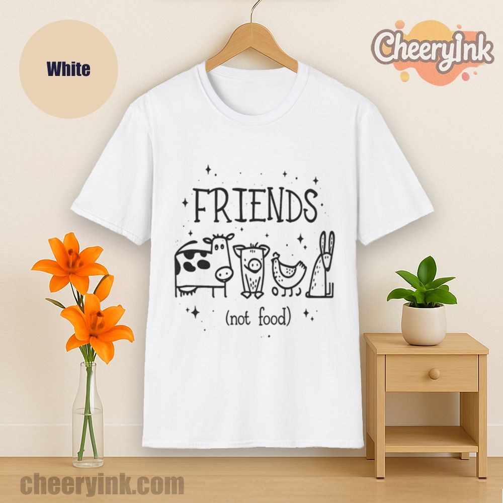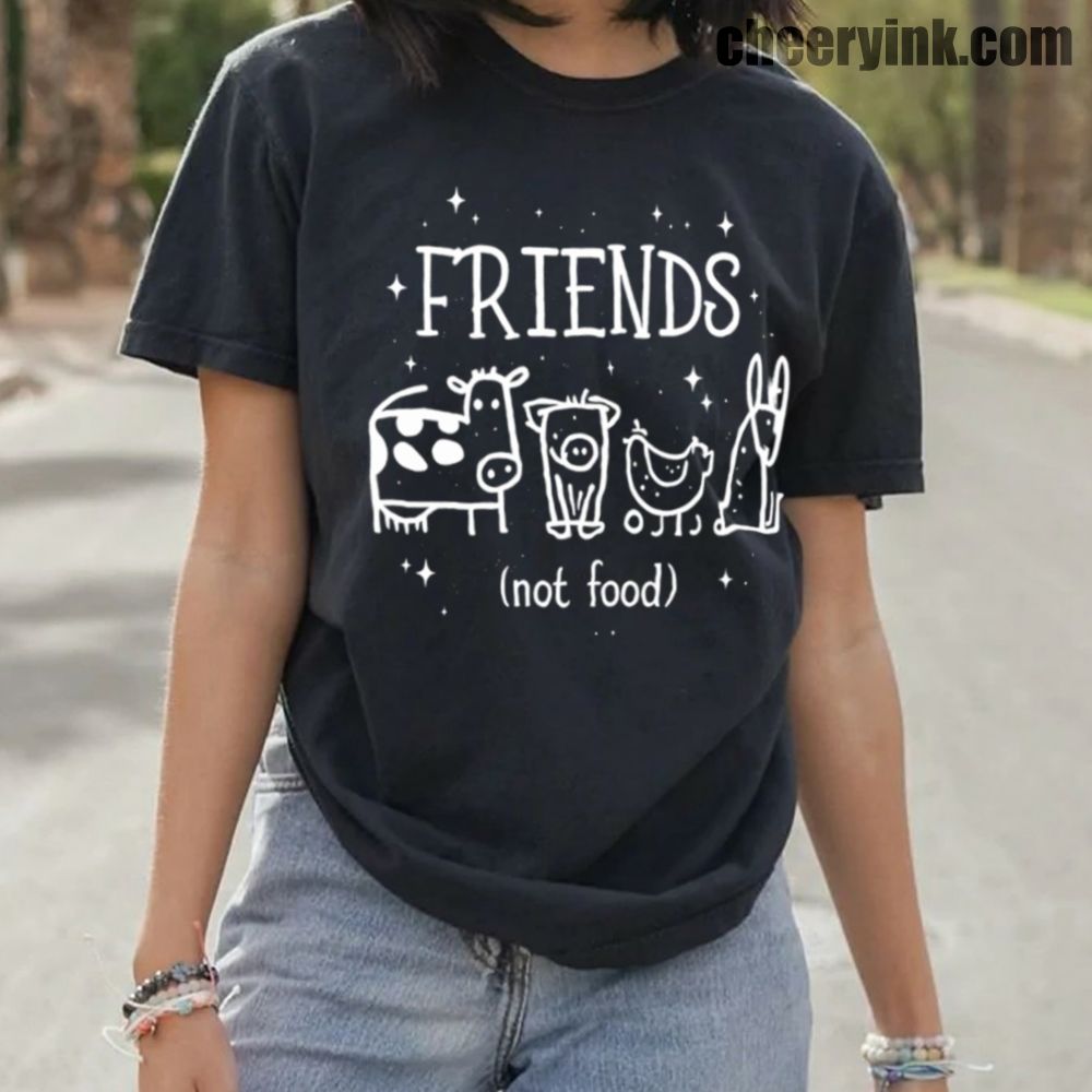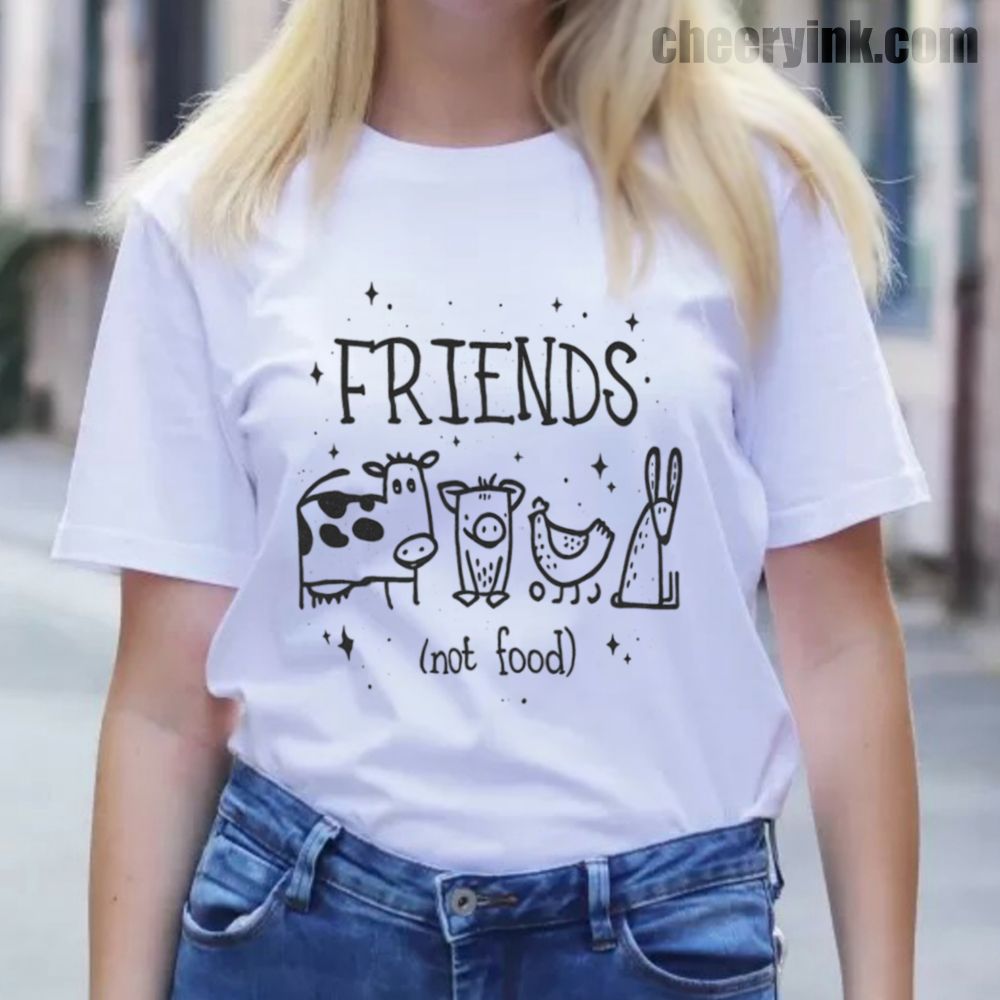 Let your outfit reflect your values with the Friends Not Food T-Shirt. This heart warming design shows four lovable animal friends a cow, pig, chicken, and rabbit under the clear message that they are companions, not cuisine. It’s ideal for vegans, vegetarians, and anyone advocating for kindness over cruelty.