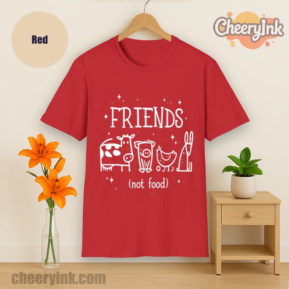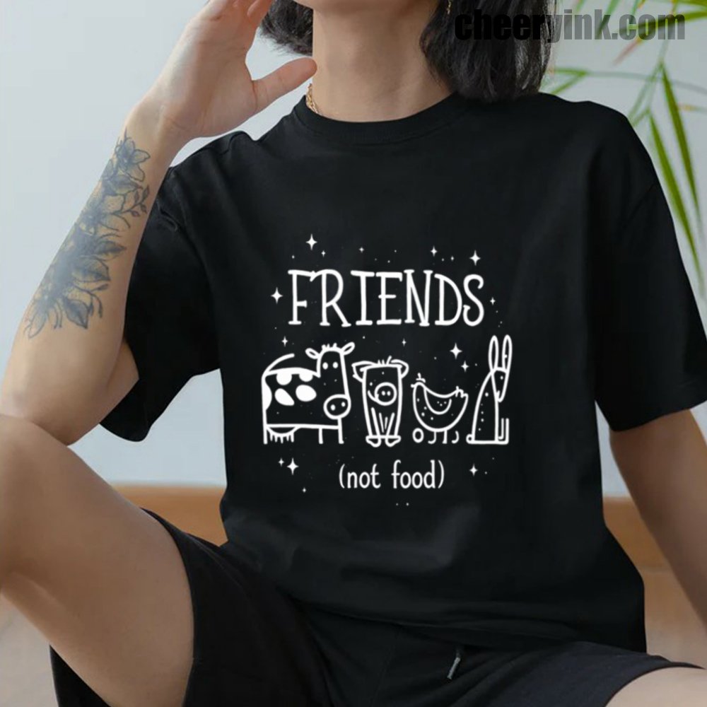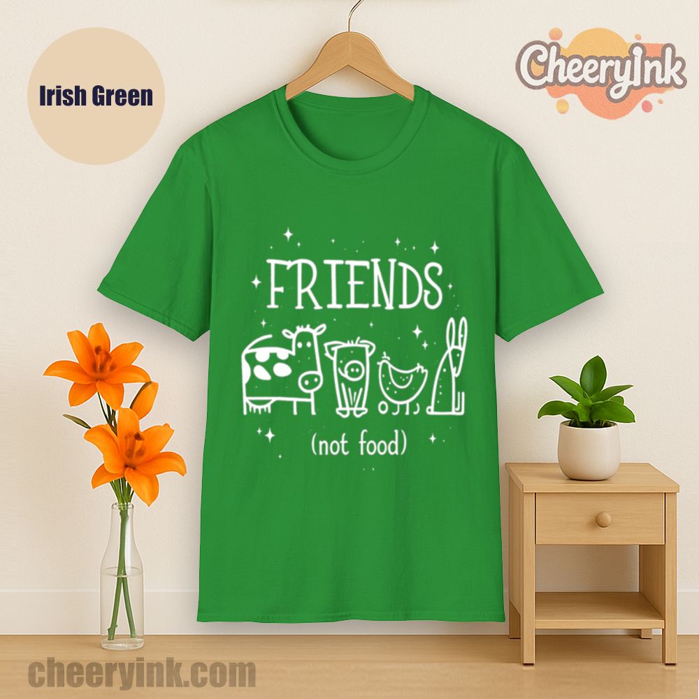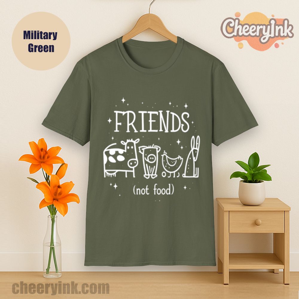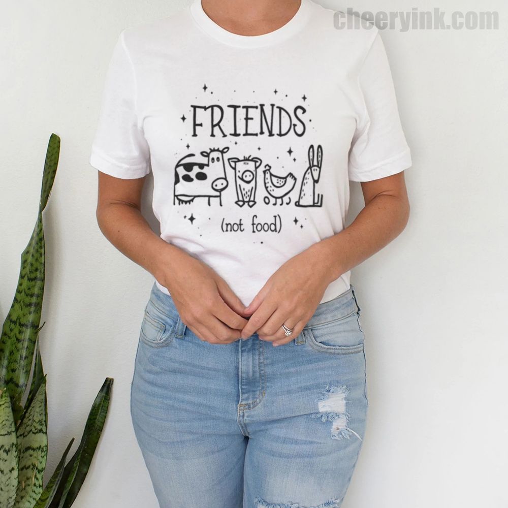 Let your outfit reflect your values with the Friends Not Food T-Shirt. This heart warming design shows four lovable animal friends a cow, pig, chicken, and rabbit under the clear message that they are companions, not cuisine. It’s ideal for vegans, vegetarians, and anyone advocating for kindness over cruelty.