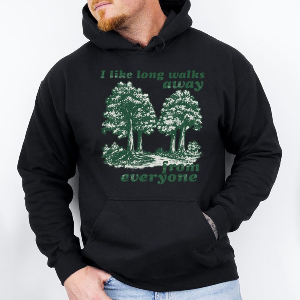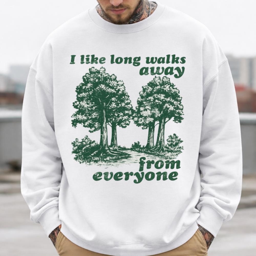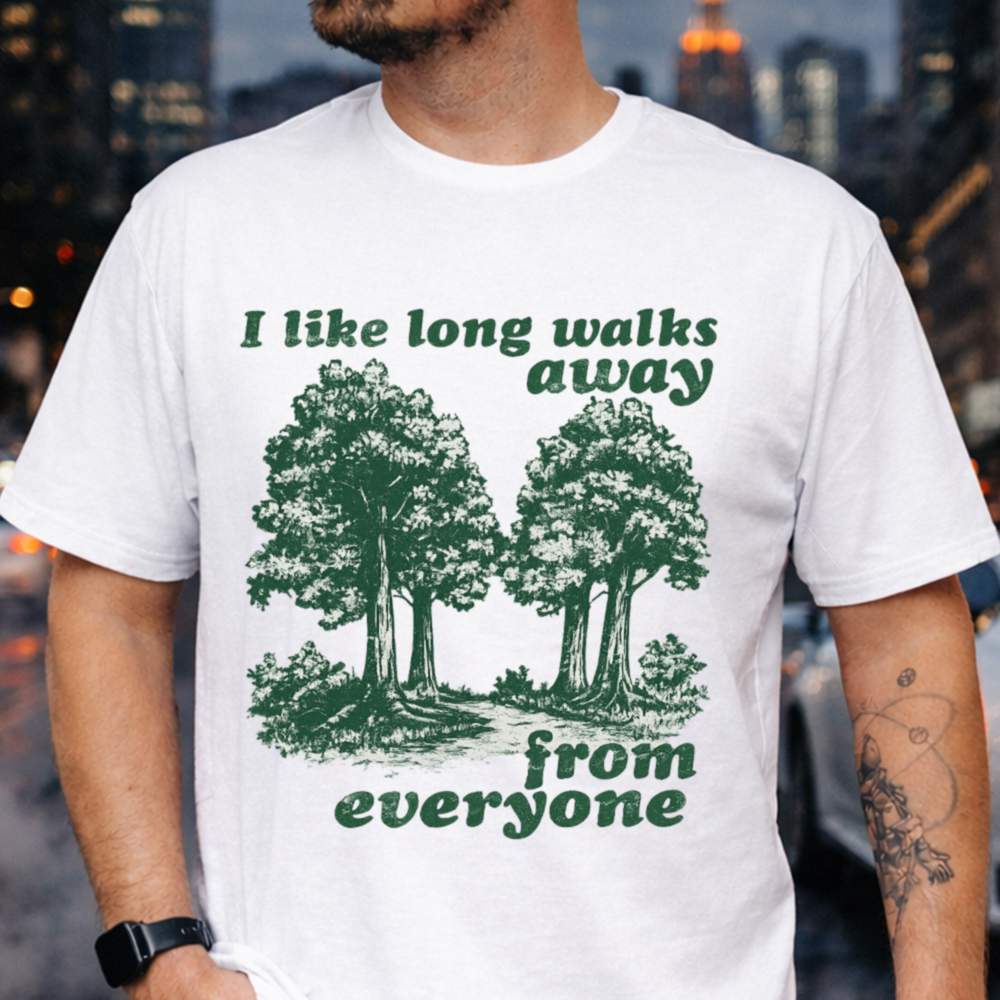 It’s made for those who genuinely enjoy long walks especially when they lead away from crowds. The earthy tones and rustic illustration give it a relaxed, nature-loving aesthetic while the message delivers a playful boundary that many introverts understand deeply.