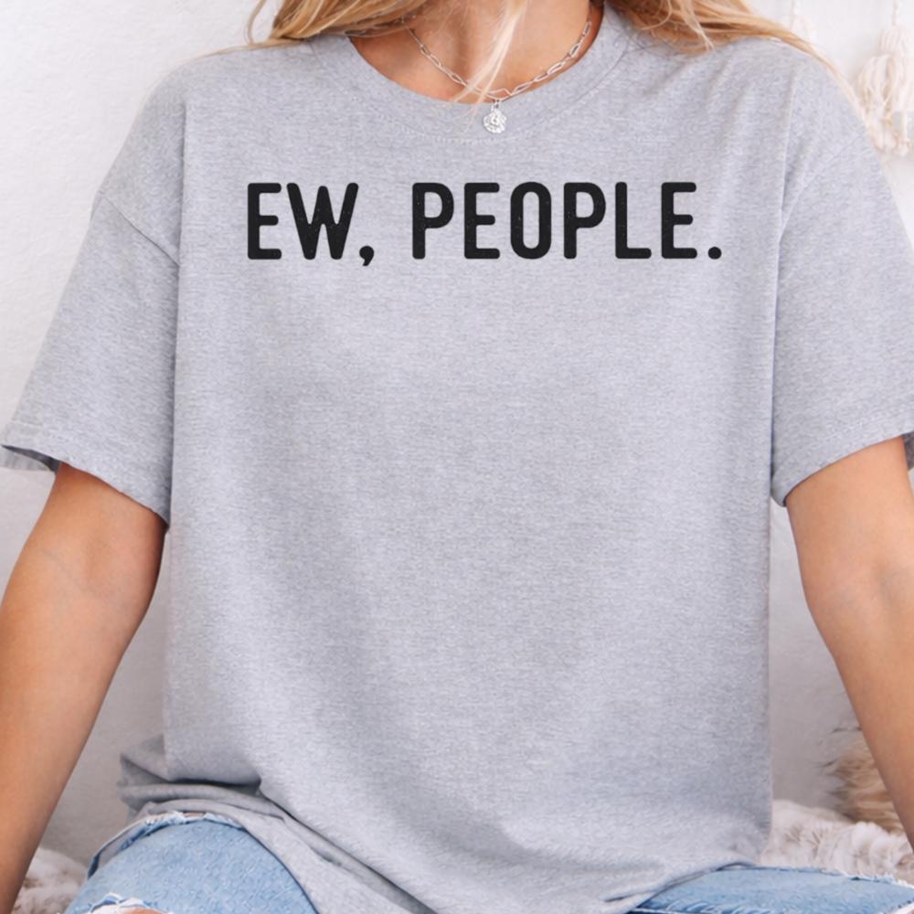 Some days just call for distance. The Funny Introvert People Avoidance T-Shirt captures that immediate, instinctive reaction to unwanted social interaction short, blunt, and completely relatable. Featuring the bold phrase “EW, PEOPLE.”, this design speaks for anyone whose social battery drains the second they step outside.