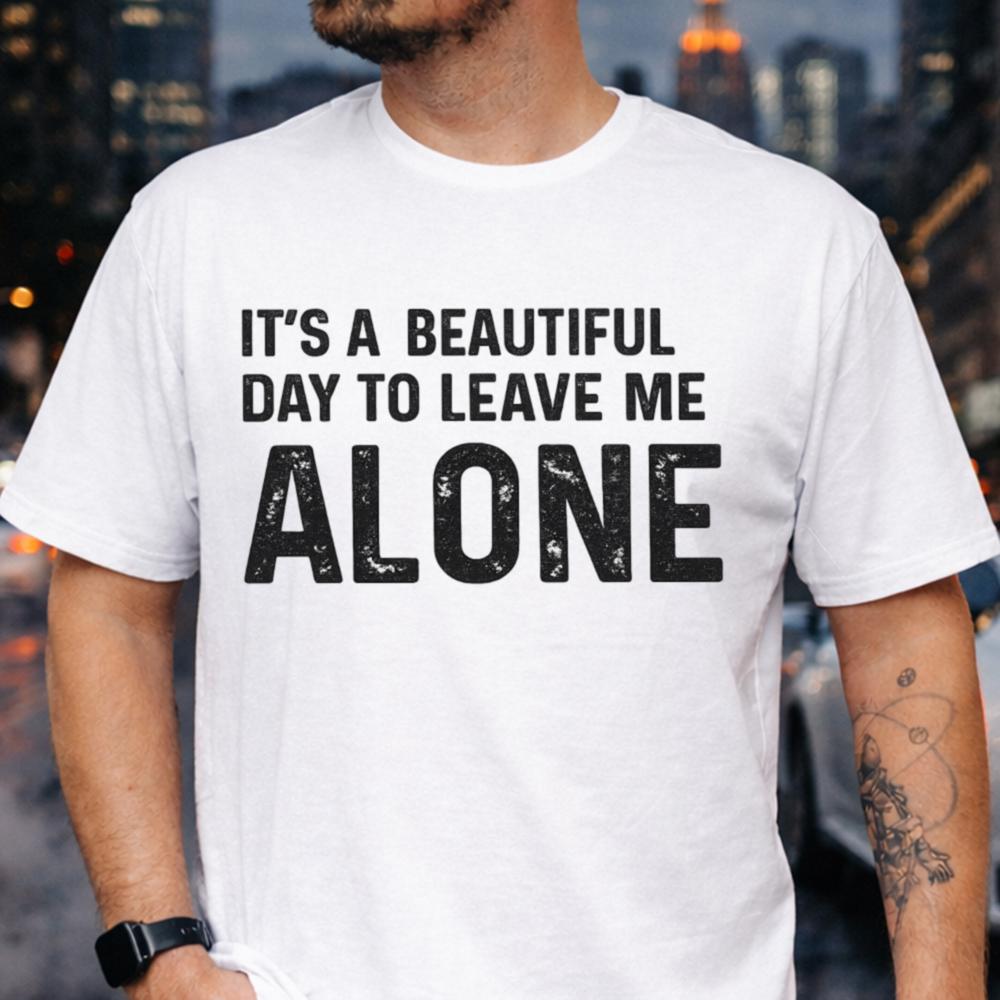 The bold, distressed typography reflects a laid-back but firm message: enjoying a beautiful day doesn’t require social interaction. It’s not negativity it’s clarity. For introverts, alone time isn’t isolation; it’s restoration.