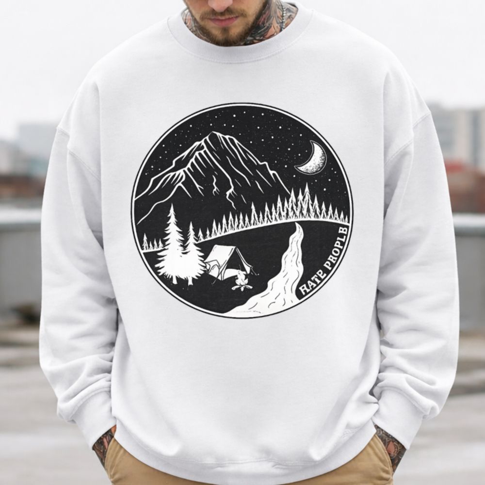 The Funny Introvert Wilderness Isolation T-Shirt is made for anyone who would trade crowded rooms for quiet mountain nights. Featuring a bold circular outdoor scene with a tent, campfire, forest, and the phrase “I Hate People,” this design channels that peaceful, off-the-grid mindset introverts truly understand.