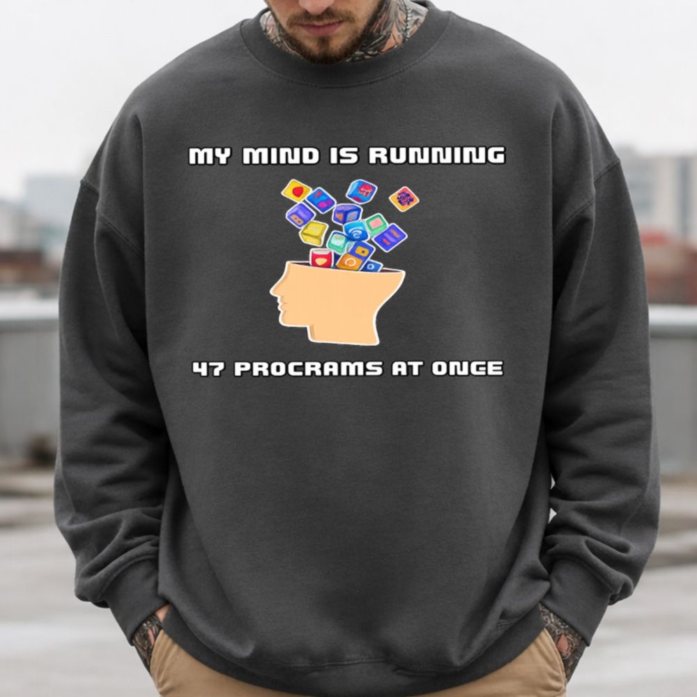 This shirt is made for overthinkers, multitaskers, and anyone whose brain refuses to close background tabs. It reflects that familiar feeling of mental noise ideas stacking up, attention jumping, and focus constantly shifting. The humor is slightly inappropriate, self-aware, and perfect for people who cope with busy minds by laughing at them.