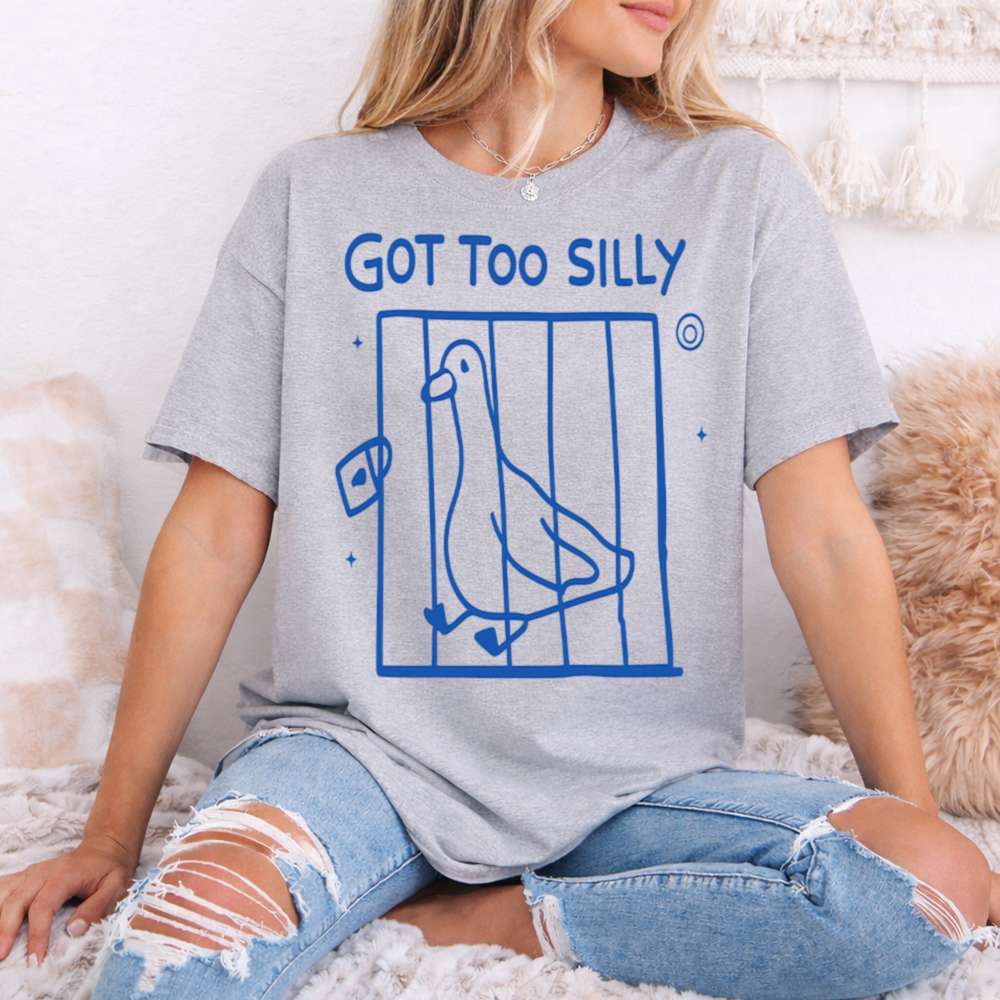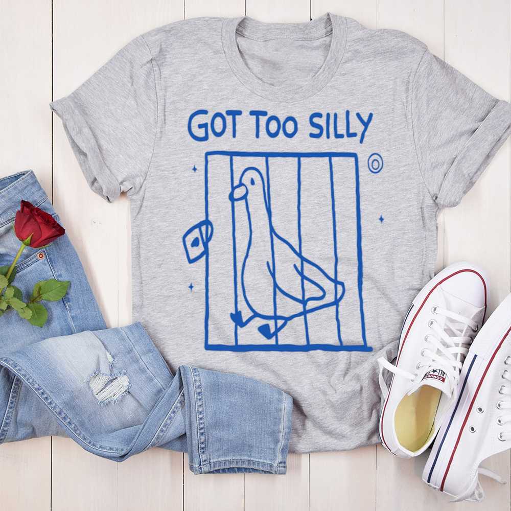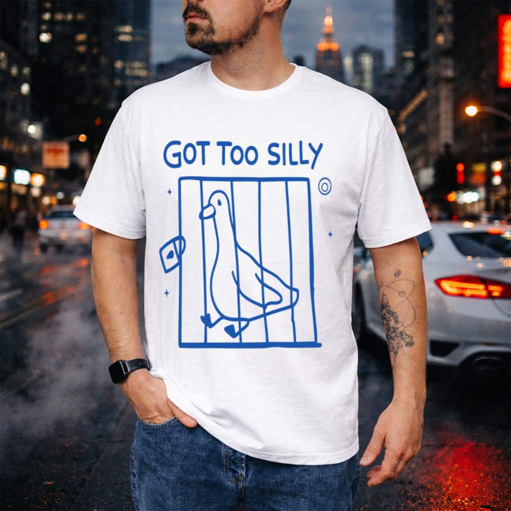Some say there’s a line between normal and goofy you crossed it in this Got Too Silly Funny T-Shirt. With a doodle-style illustration of a pigeon locked up behind bars and the caption “Got Too Silly,” this design captures the joyful essence of going just a little too far into silliness. It’s playful, weird, and totally relatable to anyone who lives life with chaotic good energy.