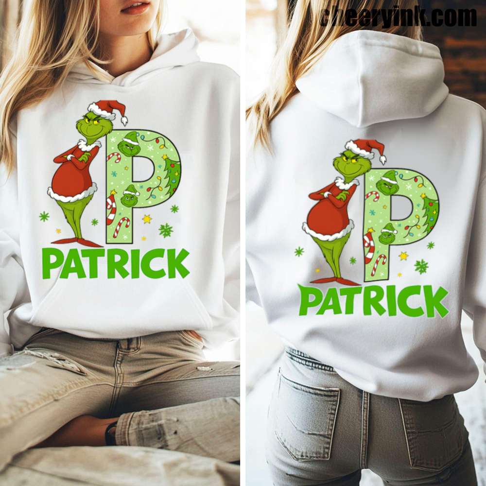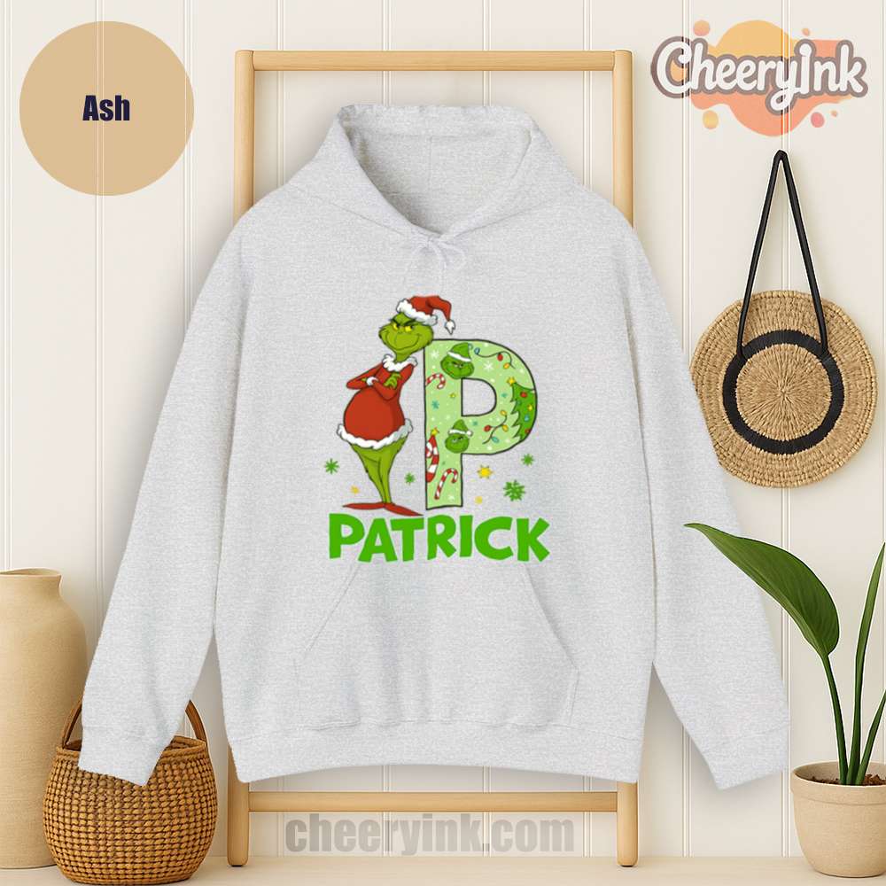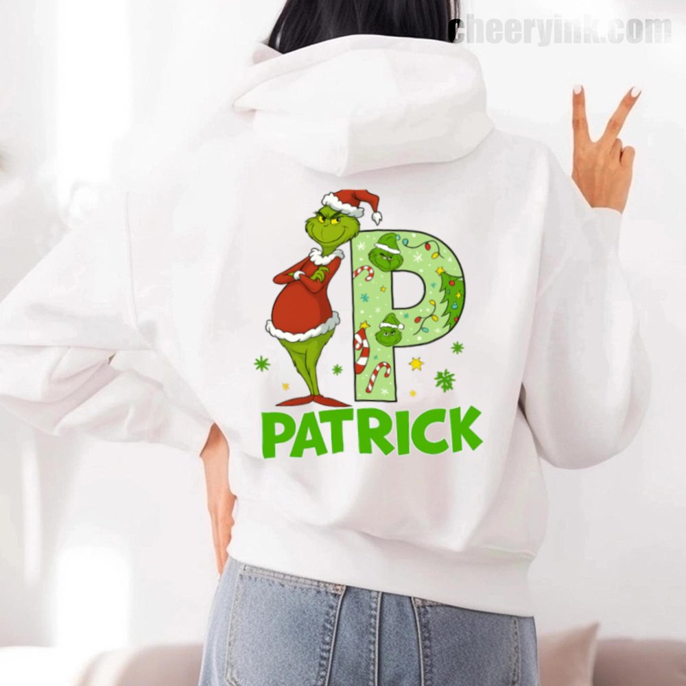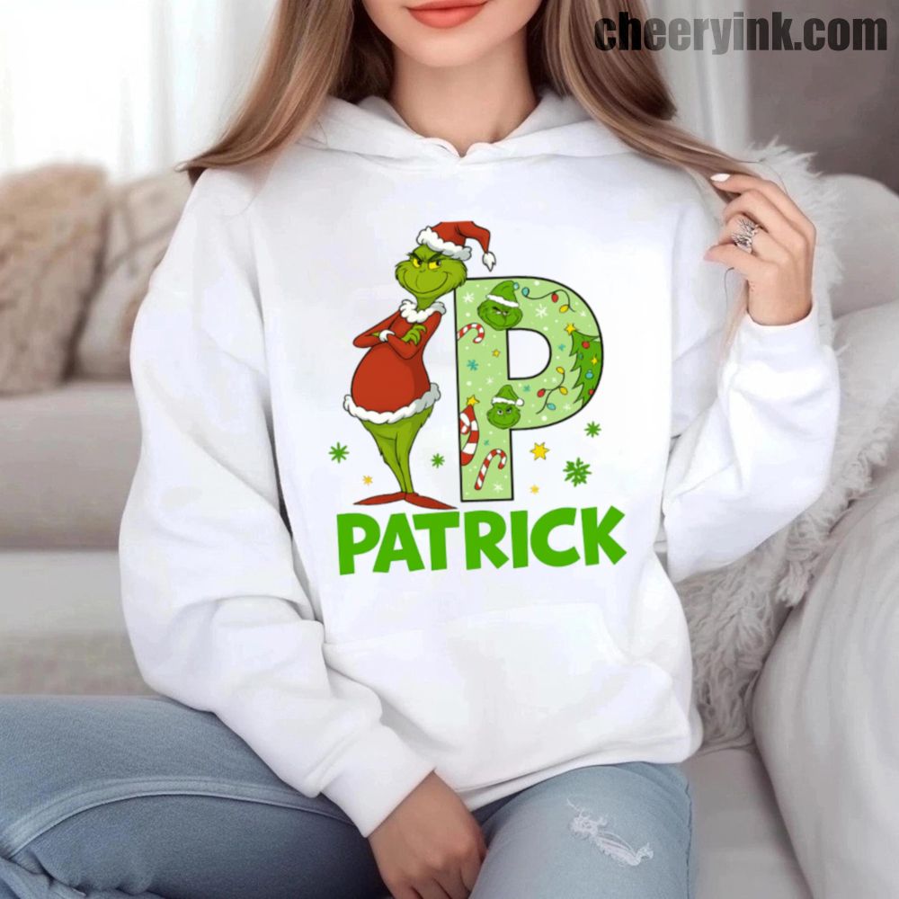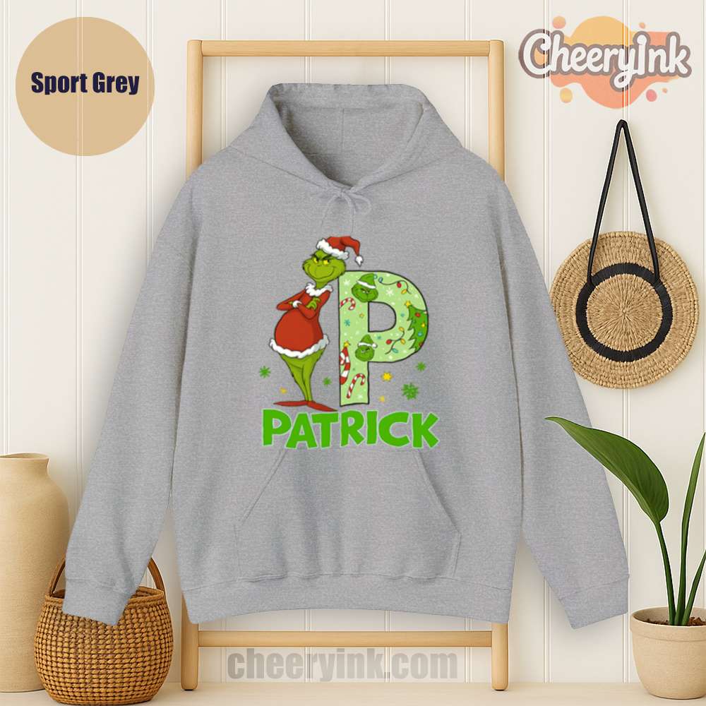 Our Grinch Patrick Christmas Hoodie brings cozy cheer and a dash of holiday mischief to your wardrobe. Featuring a grumpy green character in Santa gear and the name Patrick in festive green letters, this hoodie is as bold as it is warm.
