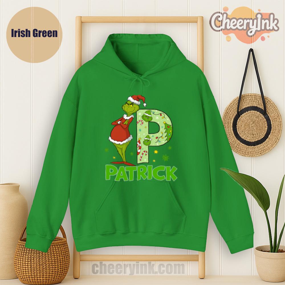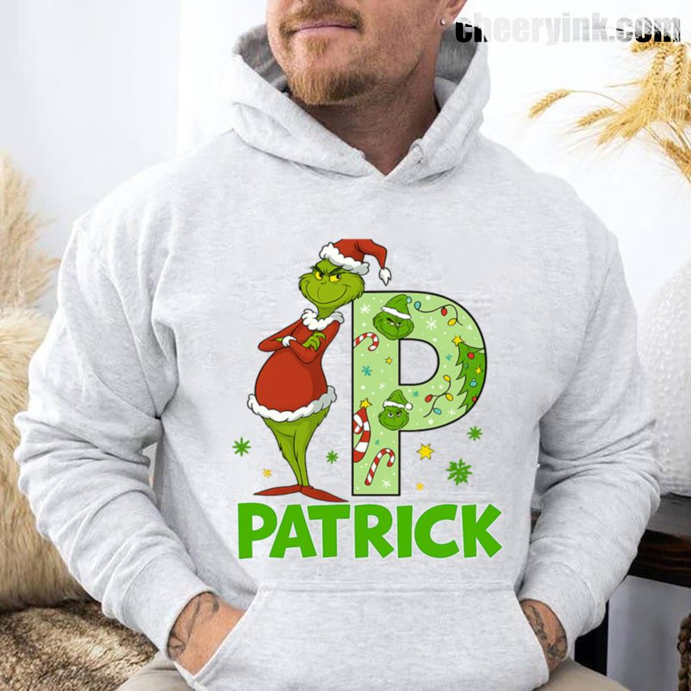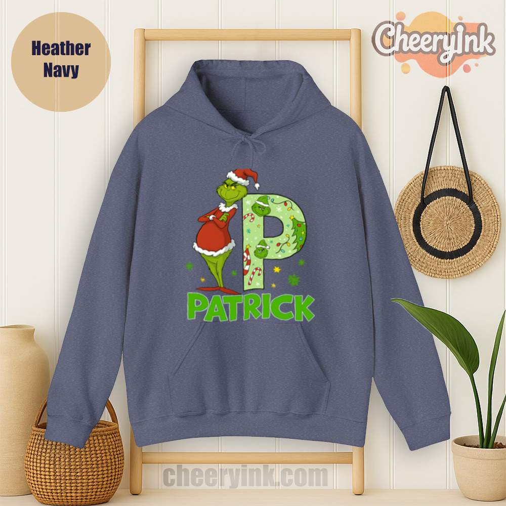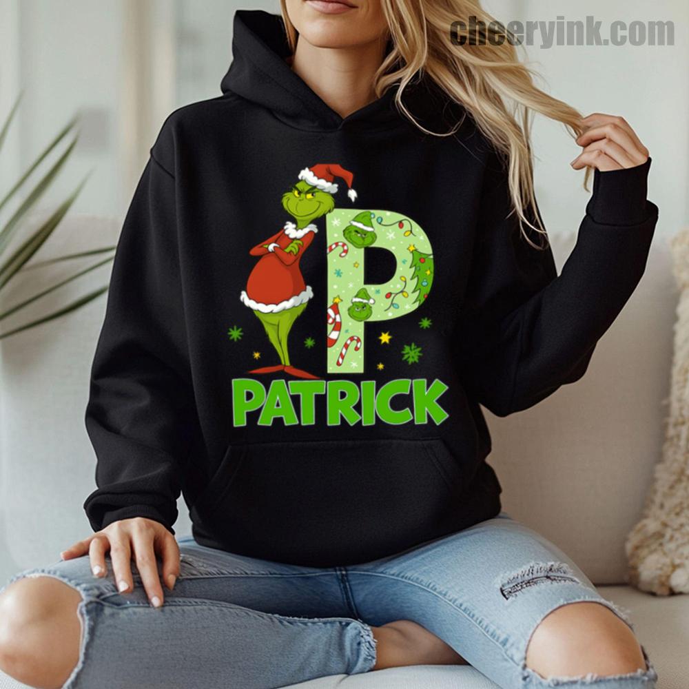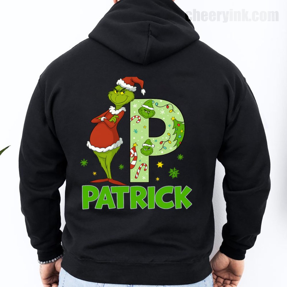 Our Grinch Patrick Christmas Hoodie brings cozy cheer and a dash of holiday mischief to your wardrobe. Featuring a grumpy green character in Santa gear and the name Patrick in festive green letters, this hoodie is as bold as it is warm.