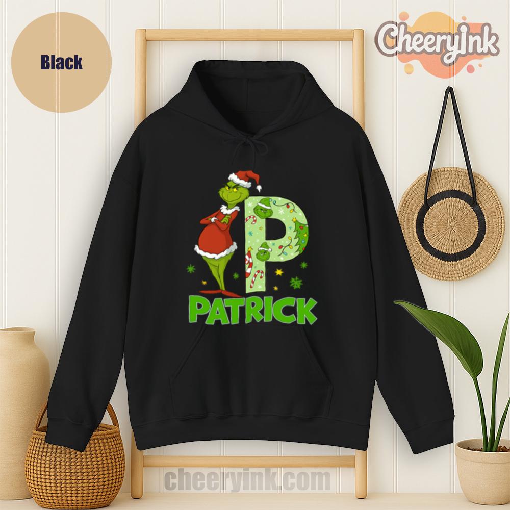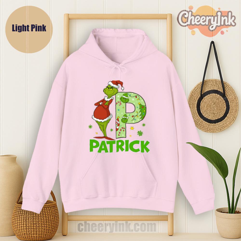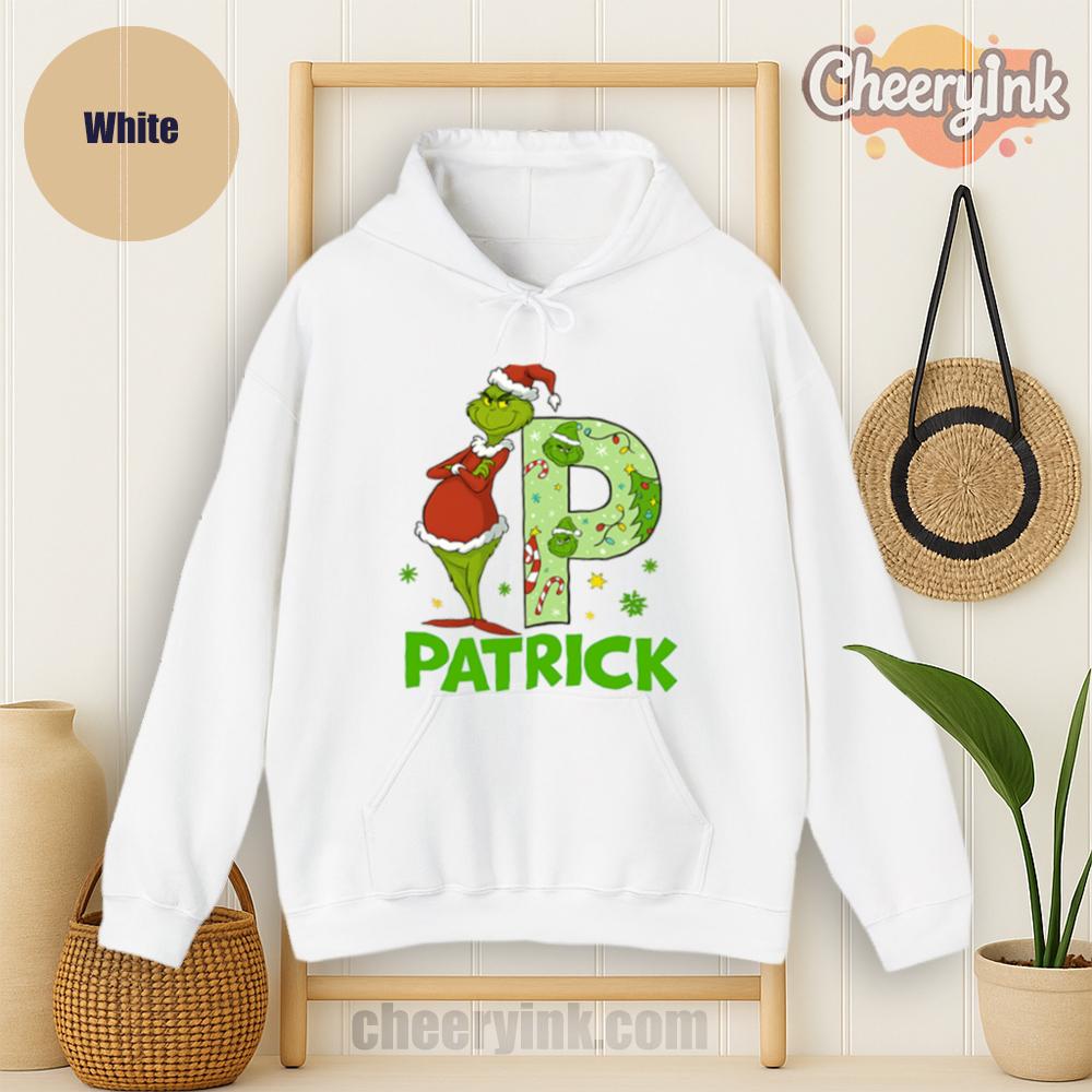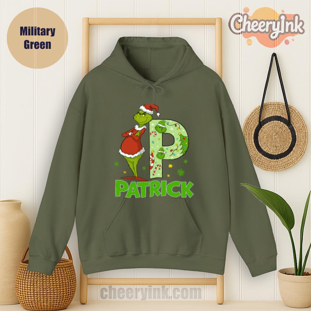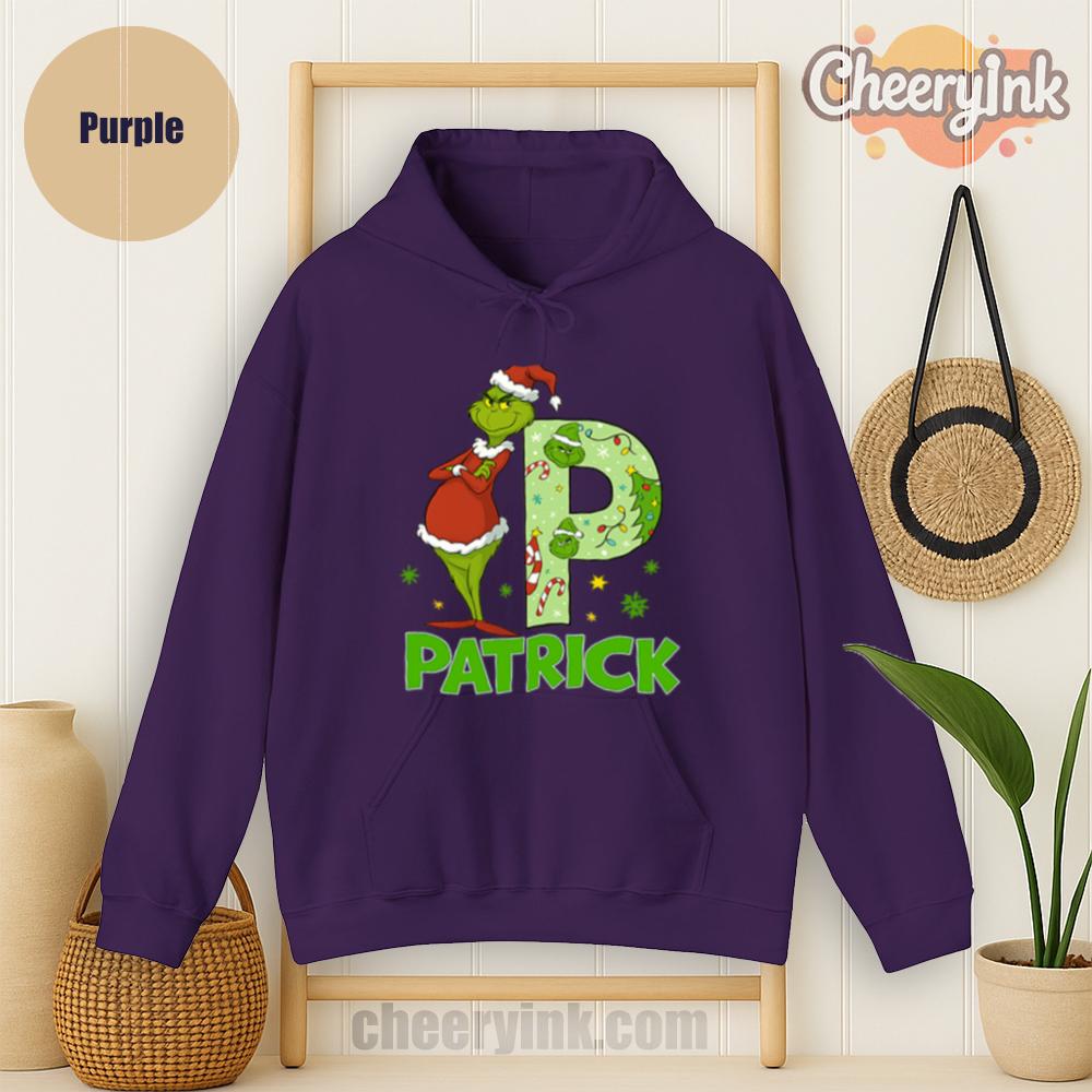 Our Grinch Patrick Christmas Hoodie brings cozy cheer and a dash of holiday mischief to your wardrobe. Featuring a grumpy green character in Santa gear and the name Patrick in festive green letters, this hoodie is as bold as it is warm.