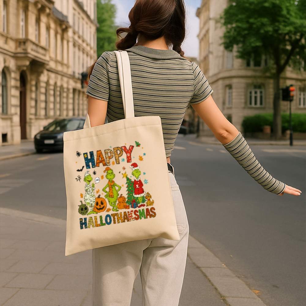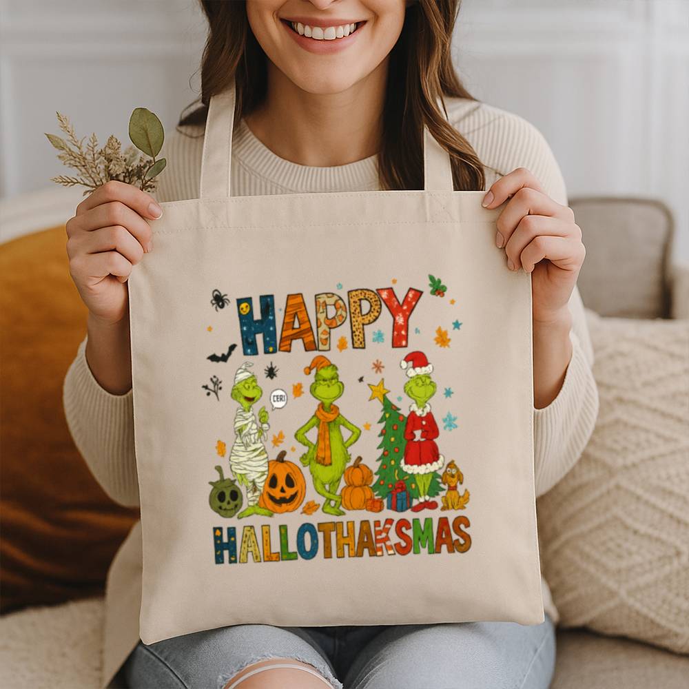 Show off your holiday mashup style with the Happy Hallothanksmas Tote Bag and make every season a shopping spree!