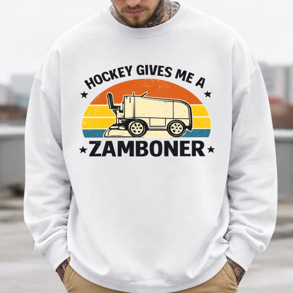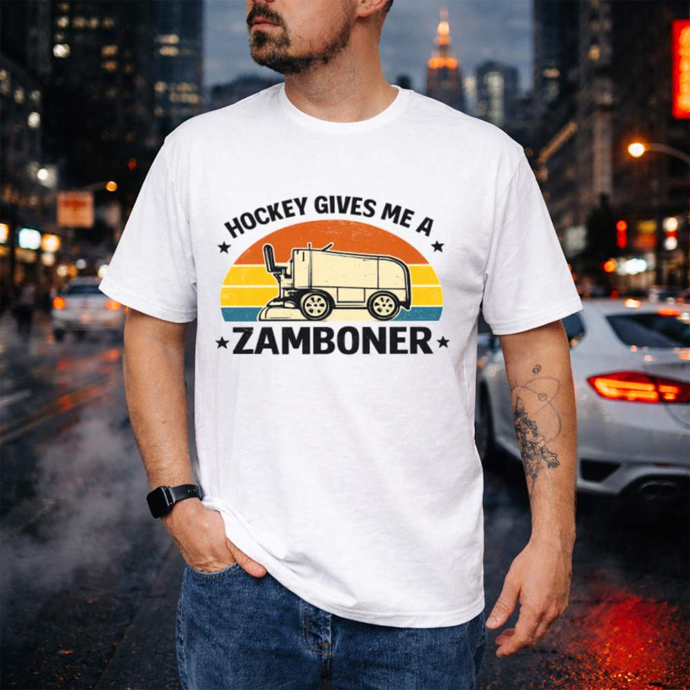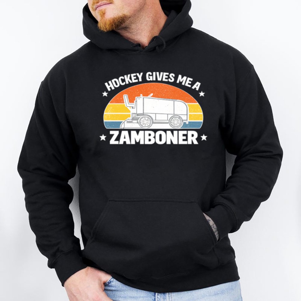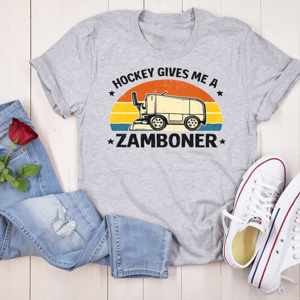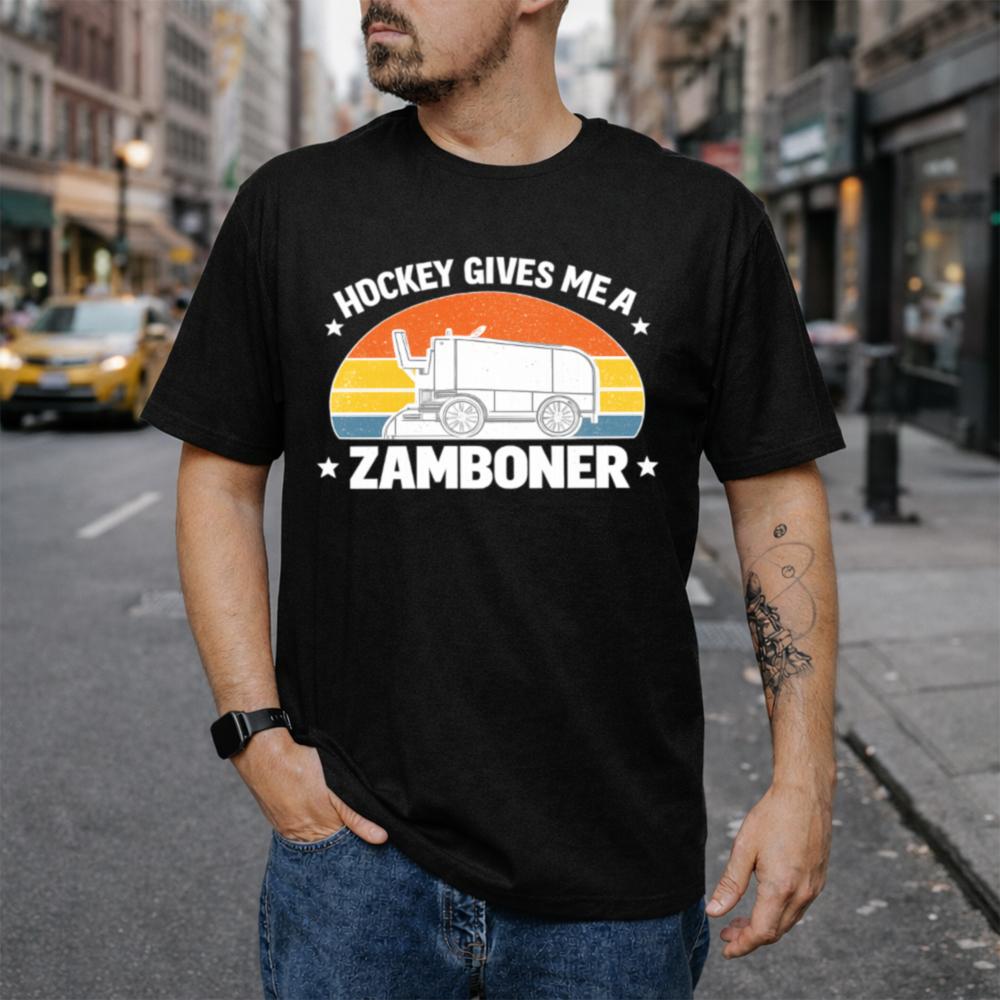 Let’s face it hockey fans are a different breed. And this Hockey Gives Me a Zamboner Funny T-Shirt is made just for those who like their jokes as bold as their slap shots. With a classic Zamboni, vintage sunset stripes, and one hilariously inappropriate pun, it’s guaranteed to get laughs (and maybe a few raised eyebrows).