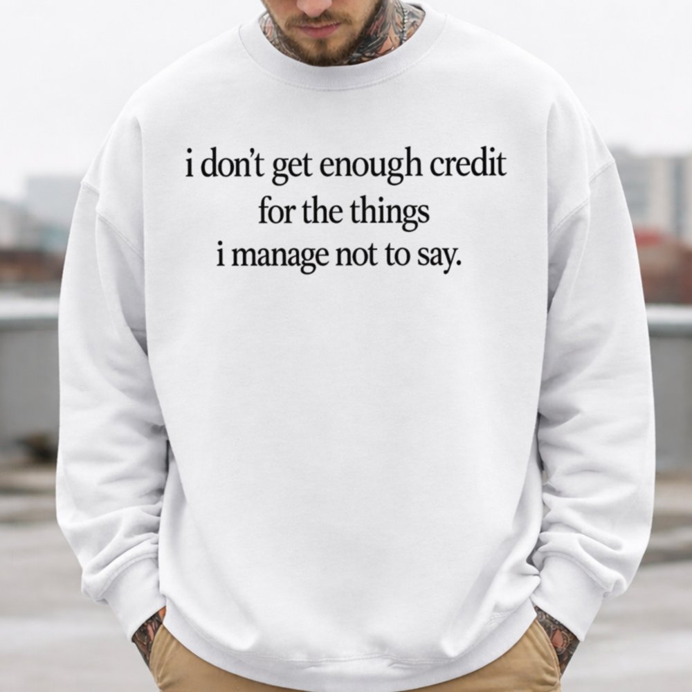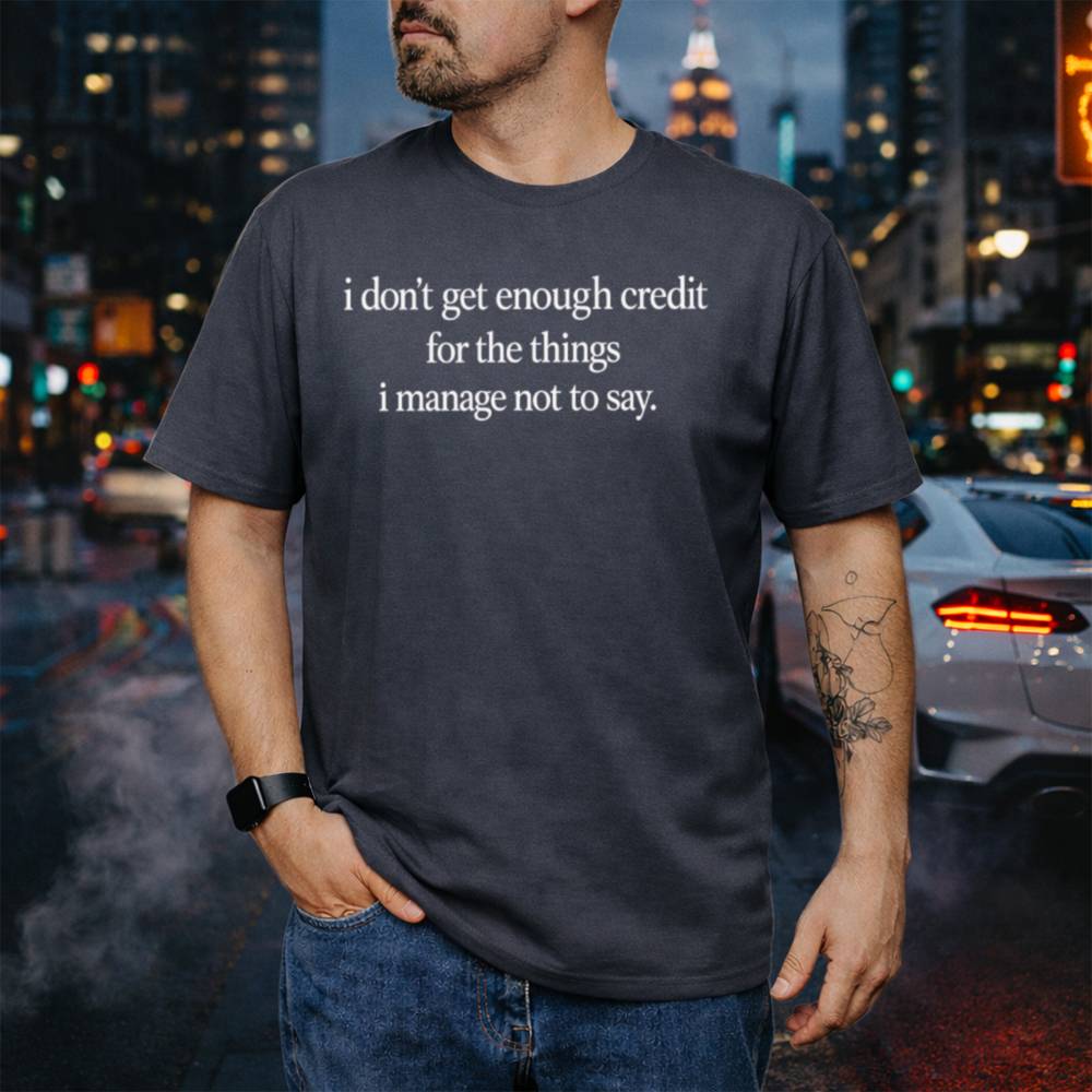 Tired of biting your tongue and not being applauded for it? You’re not alone. The I Dont Get Enough Credit Funny T-Shirt. nails that perfectly passive-aggressive truth: “I don’t get enough credit for the things I manage not to say.” It’s a statement of sass, self-control, and sarcasm served with minimalist style.