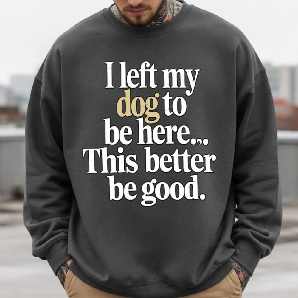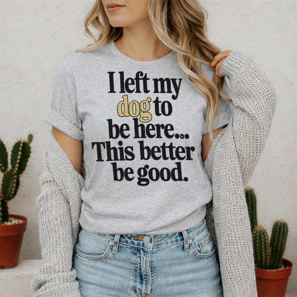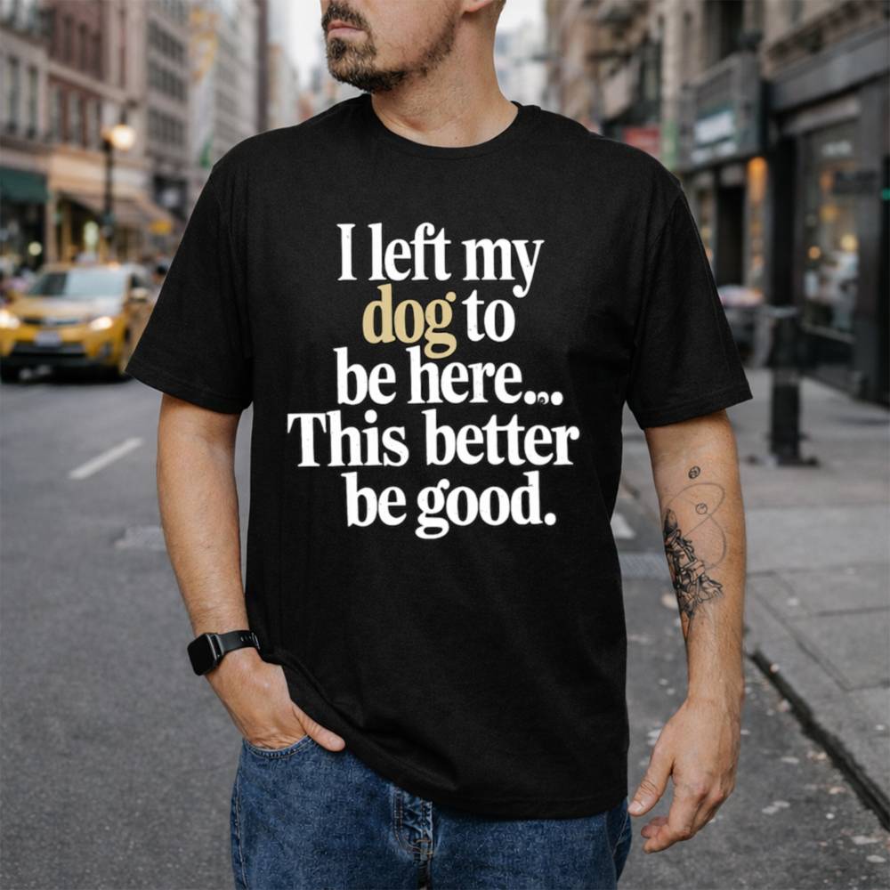 If you’re someone who prefers your dog over most humans, this I Left My Dog To Be Here Funny T-Shirt was made for you. Featuring bold, expressive typography and the hilarious message “I left my dog to be here… This better be good,” it’s a relatable truth bomb for every dog parent who’d rather be home with their pup.