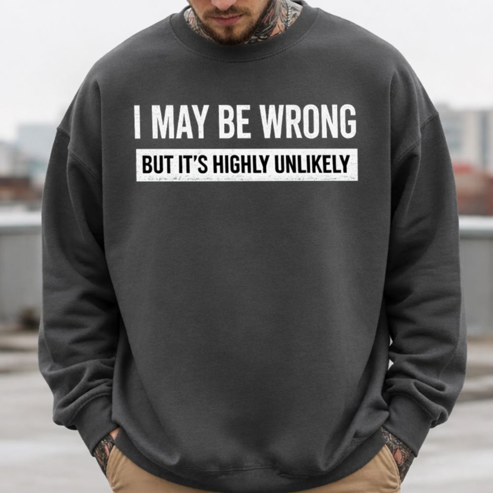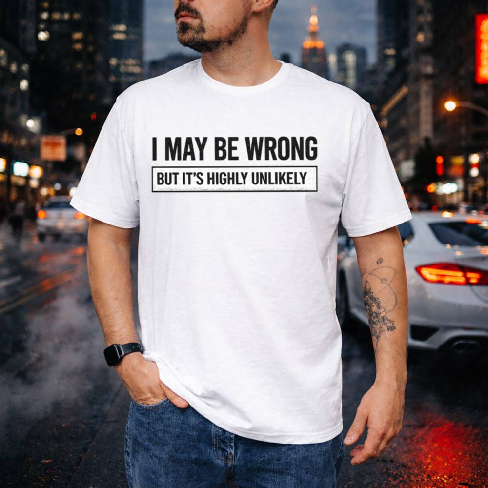 Say it with your chest “I may be wrong… but it’s highly unlikely.” This I May Be Wrong Funny T-Shirt is the perfect combination of smug humor and laid-back charm, made for people who aren’t afraid to speak their mind or enjoy being right 99.9% of the time.