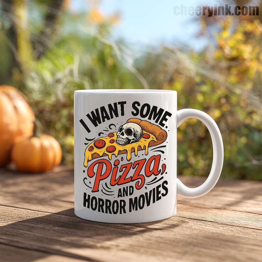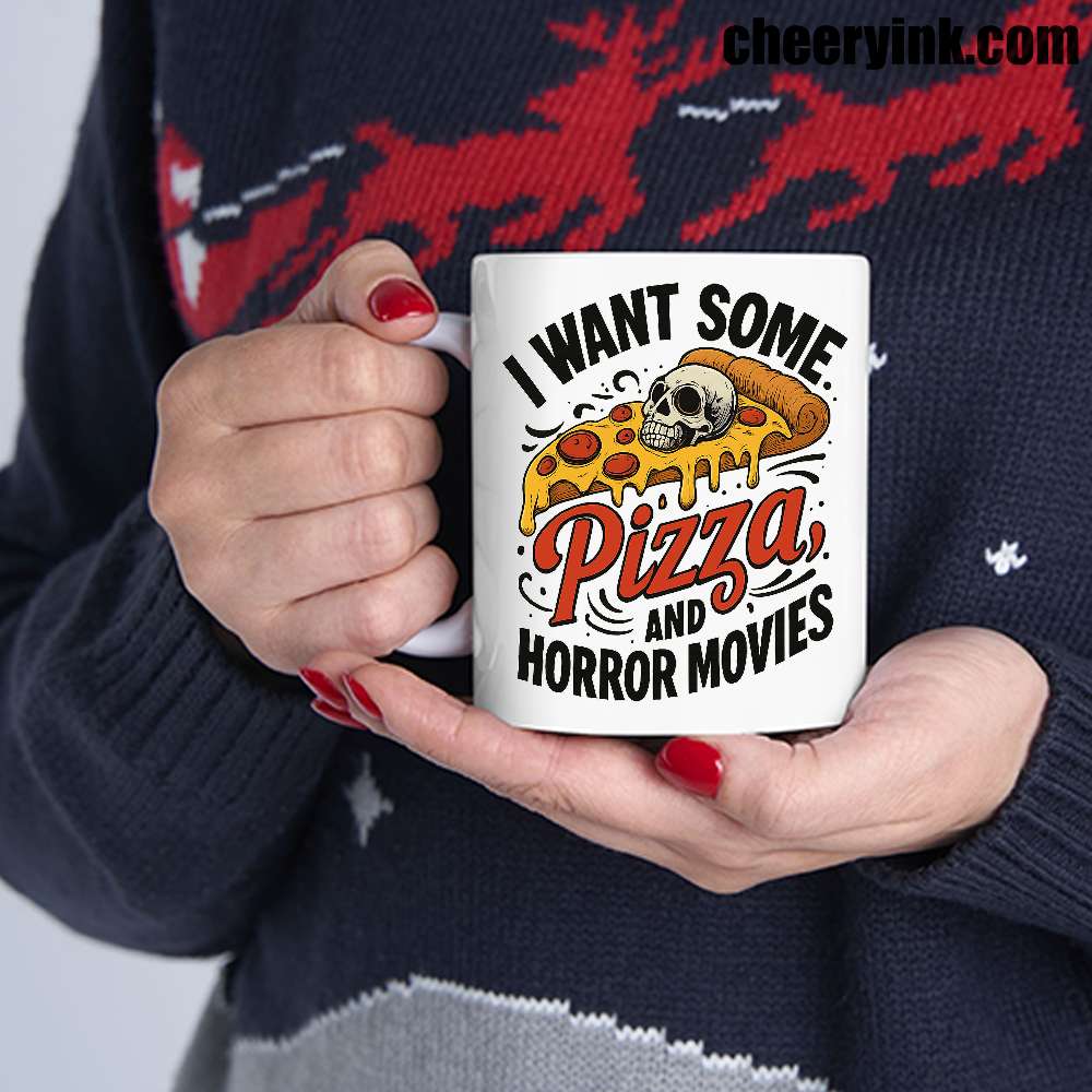 The I Want Some Pizza and Horror Movies Mug. is the perfect way to show your love for both comfort food and creepy films. With a bold skull-and-pizza design, it’s the ultimate mug for Halloween lovers, horror buffs, and snack enthusiasts. Whether you’re sipping coffee, tea, or hot cocoa during a scary movie marathon, this mug sets the mood perfectly.