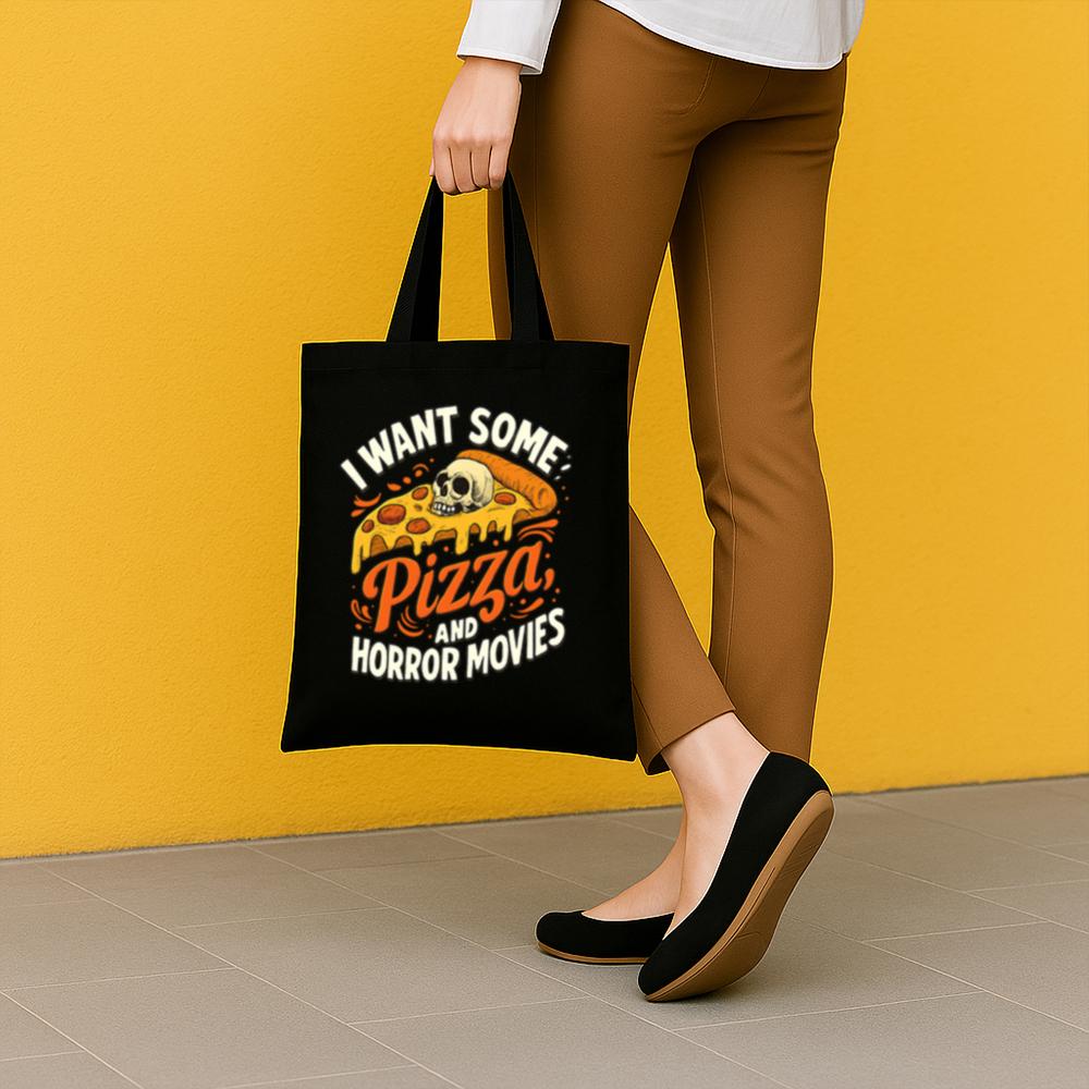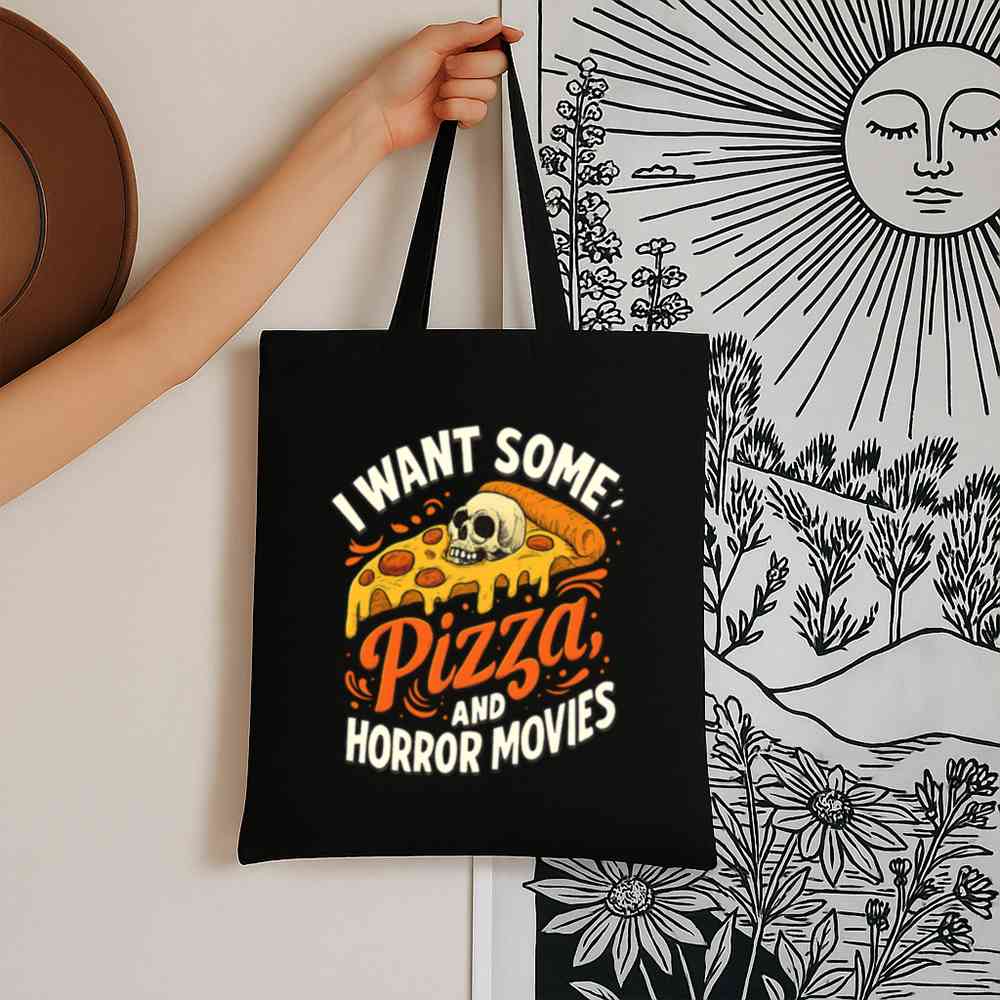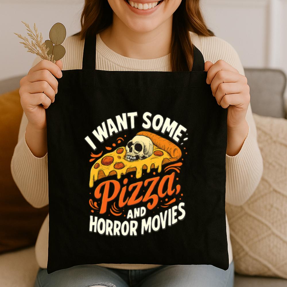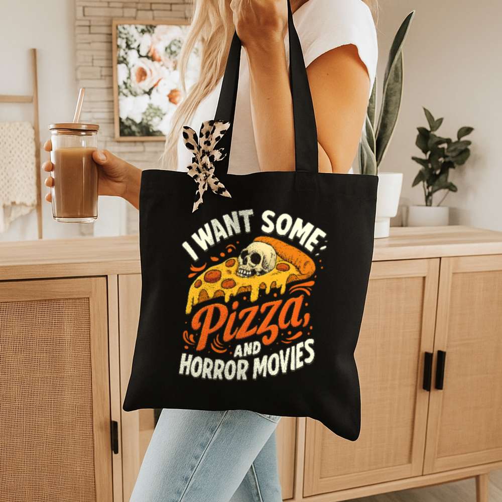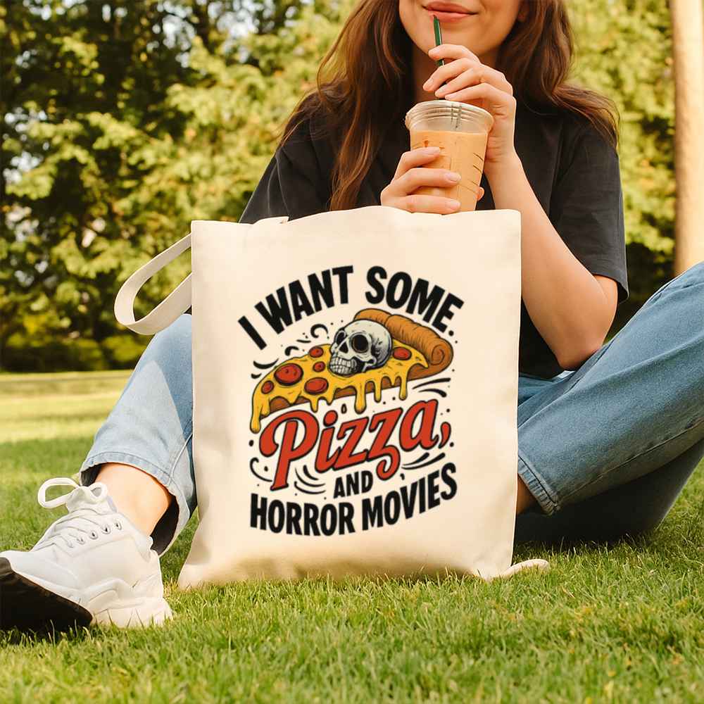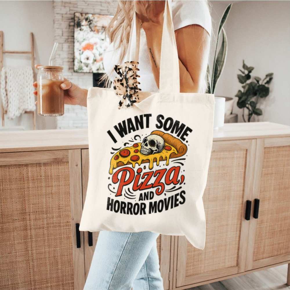 Make your errands more fun (and a little scary) grab this tote bag and show off your love for pizza and horror movies today!