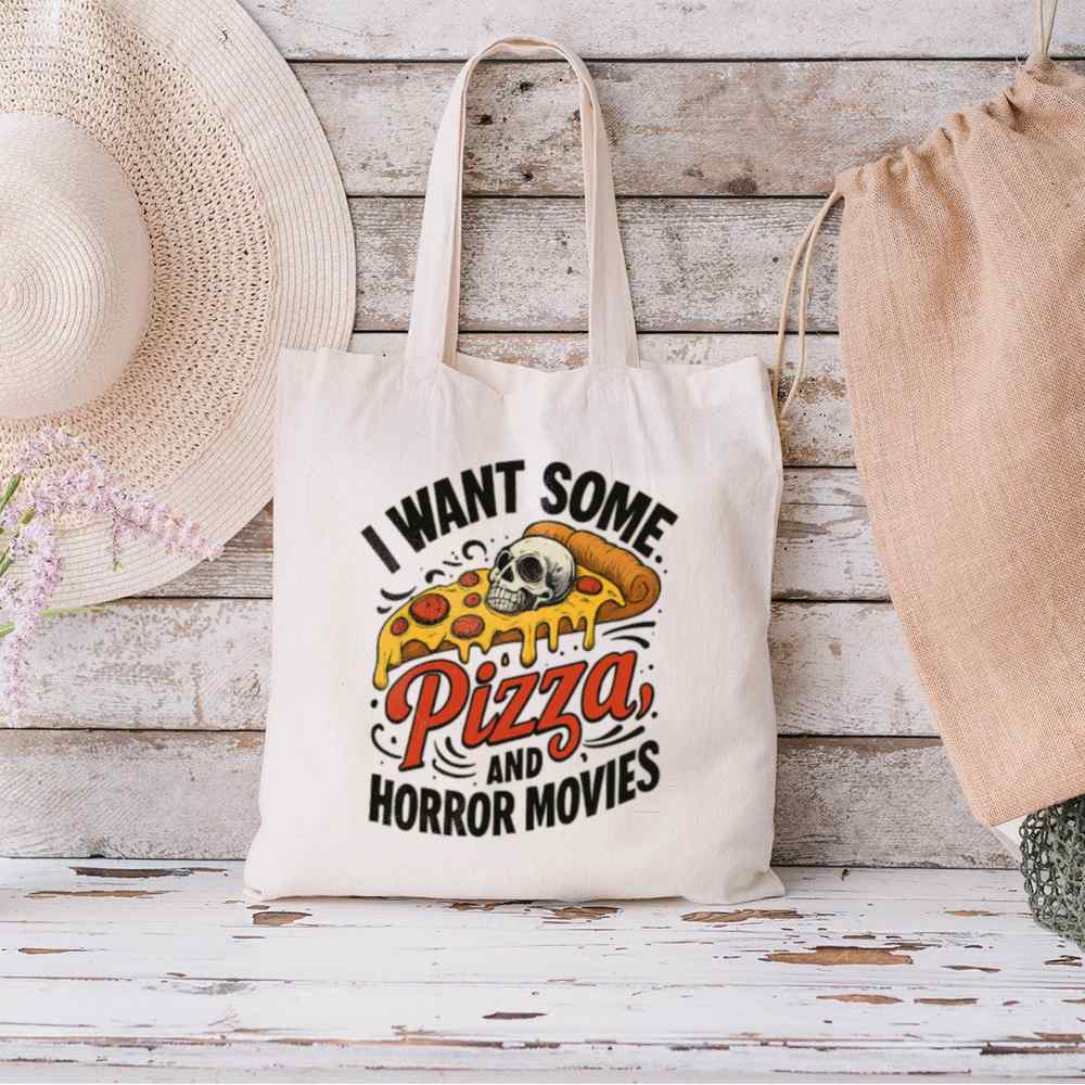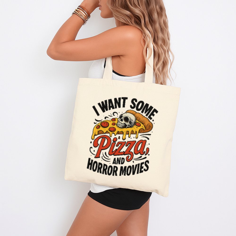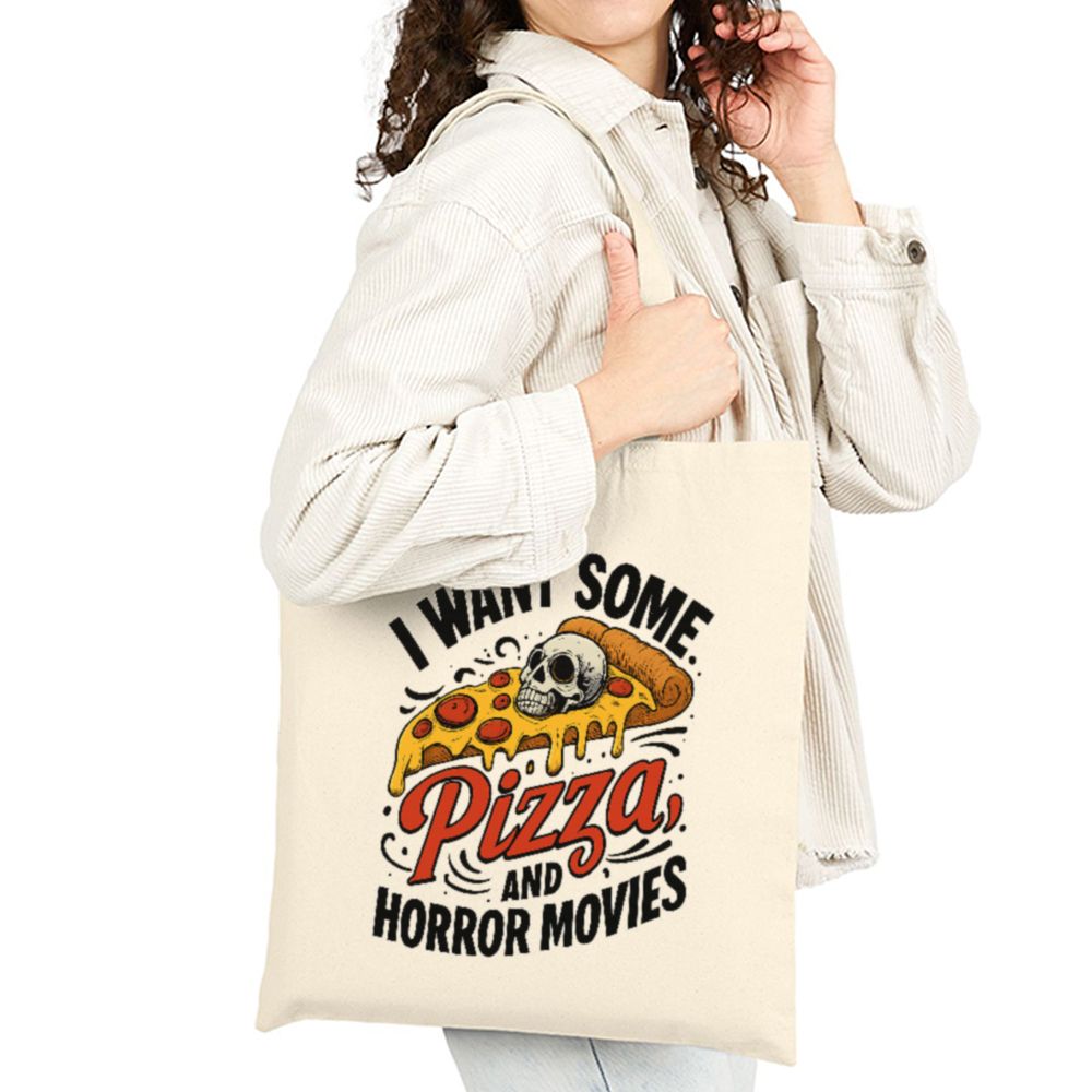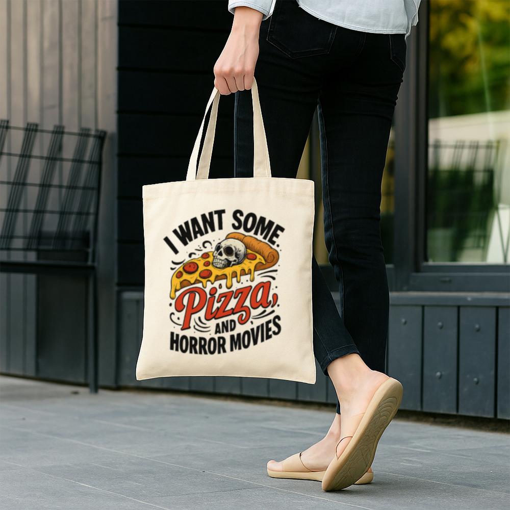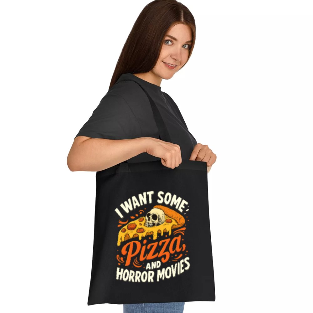 Make your errands more fun (and a little scary) grab this tote bag and show off your love for pizza and horror movies today!