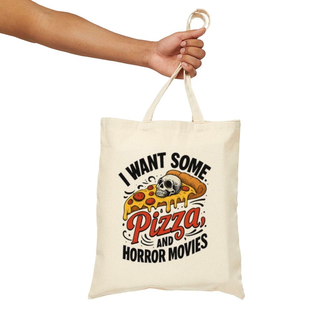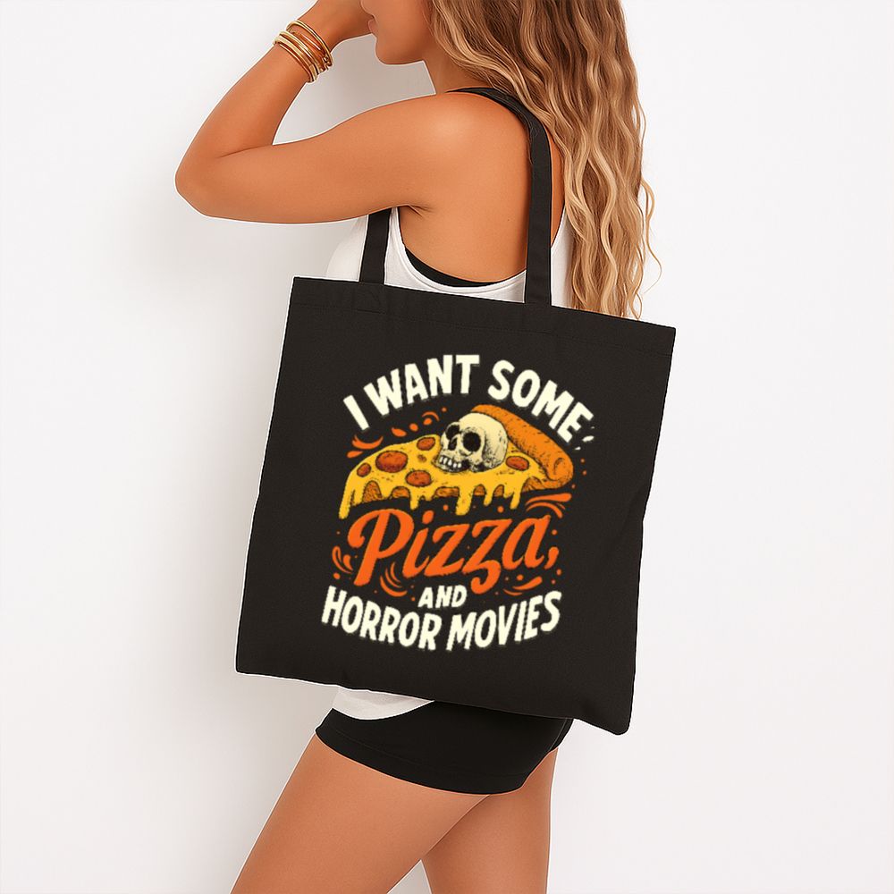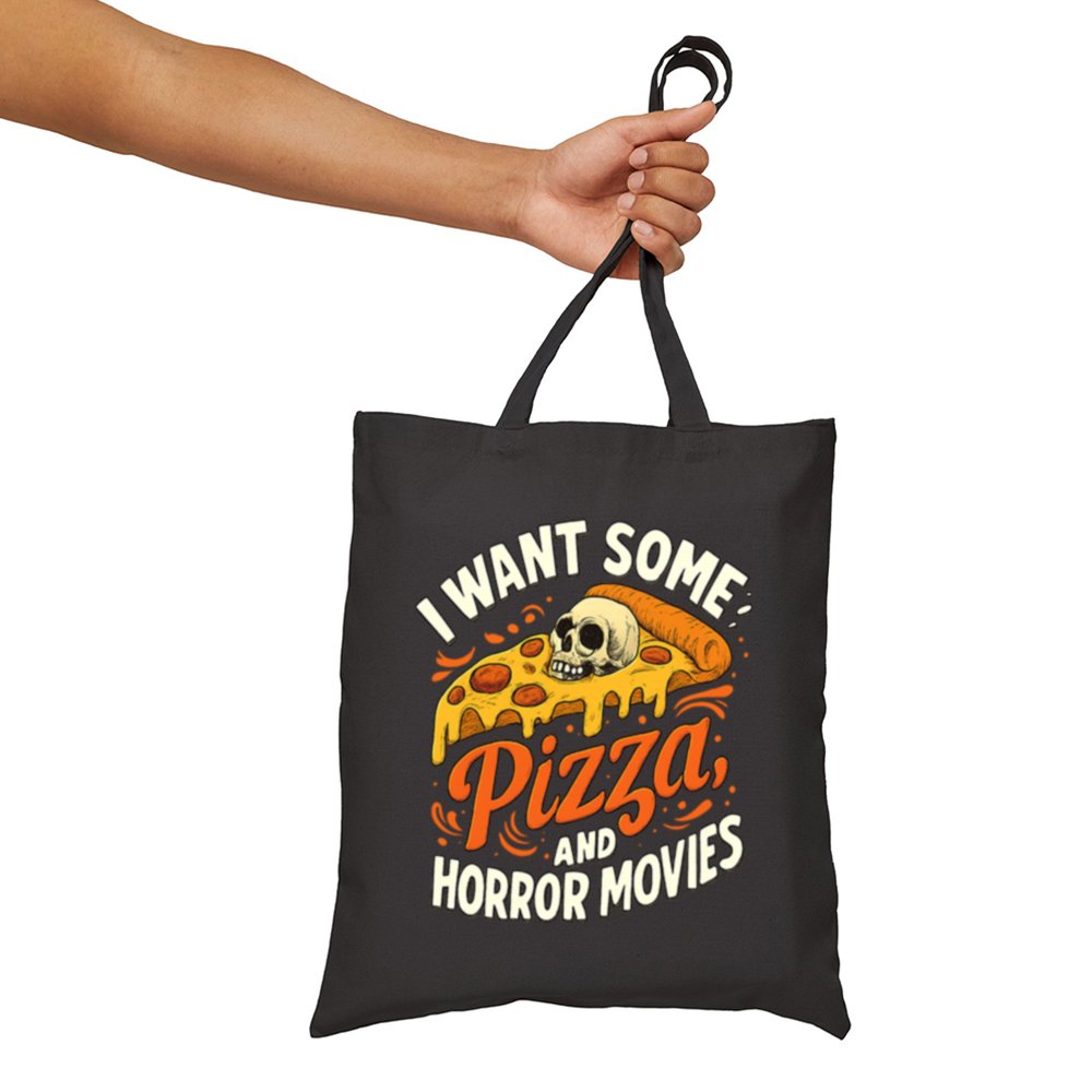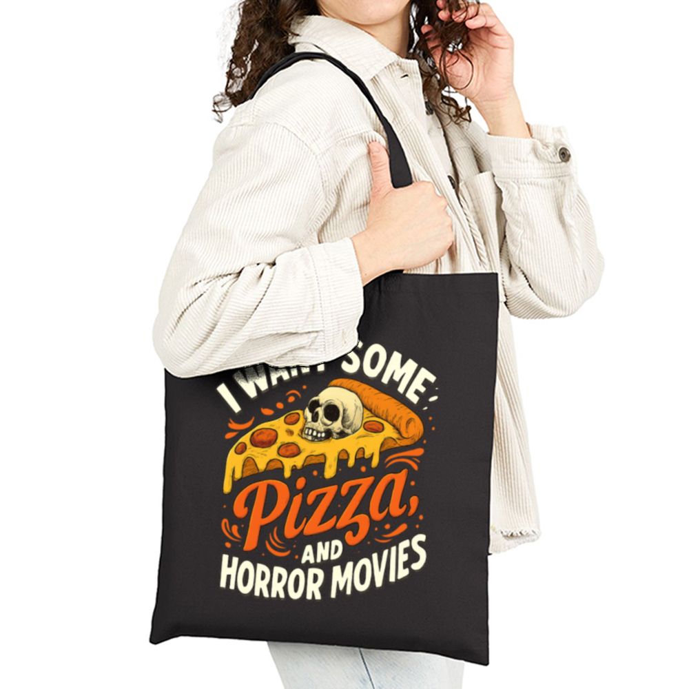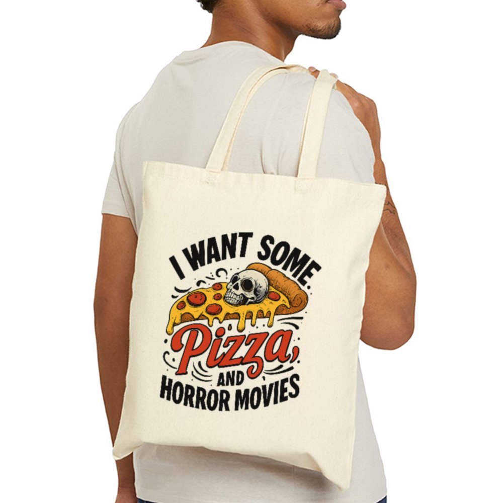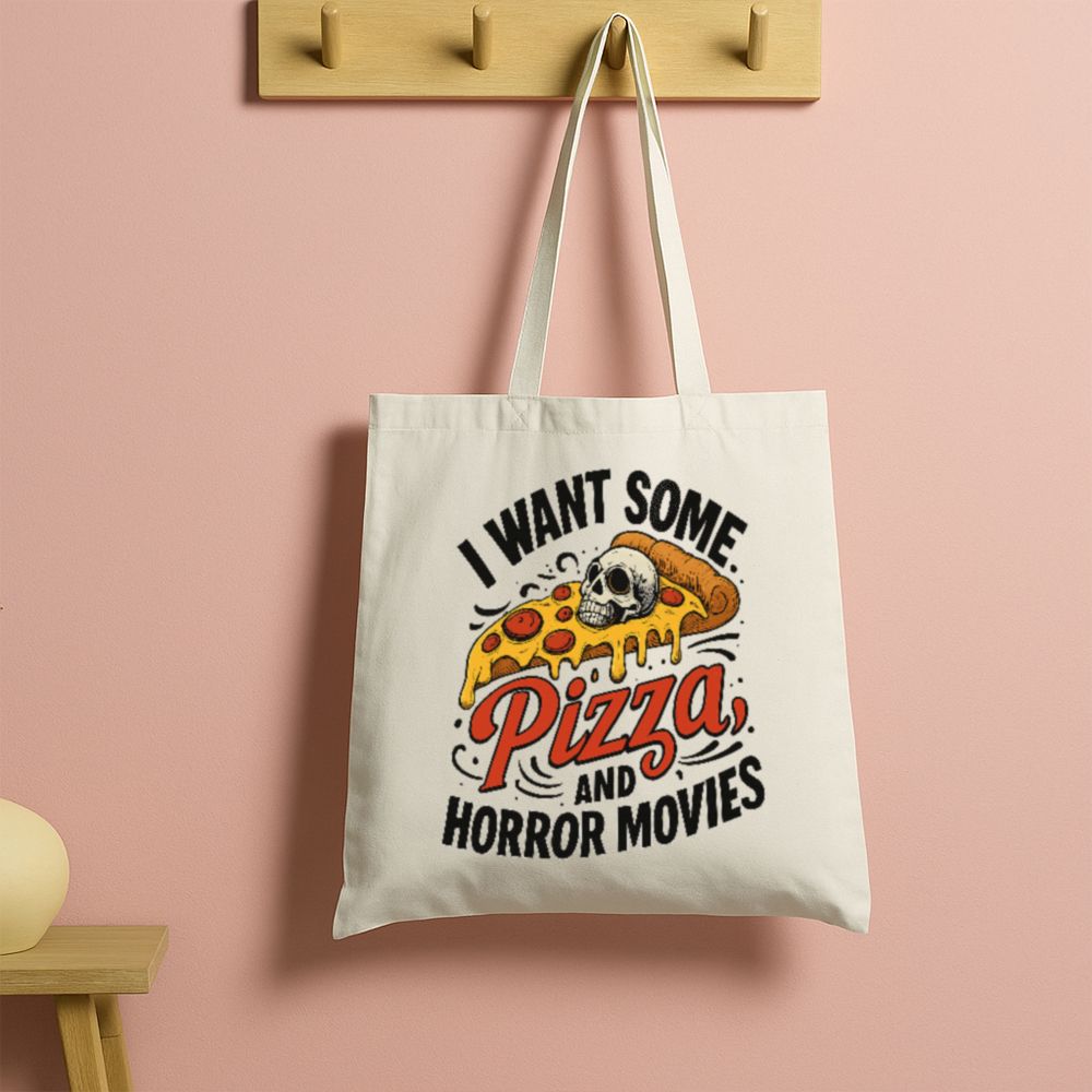 Make your errands more fun (and a little scary) grab this tote bag and show off your love for pizza and horror movies today!