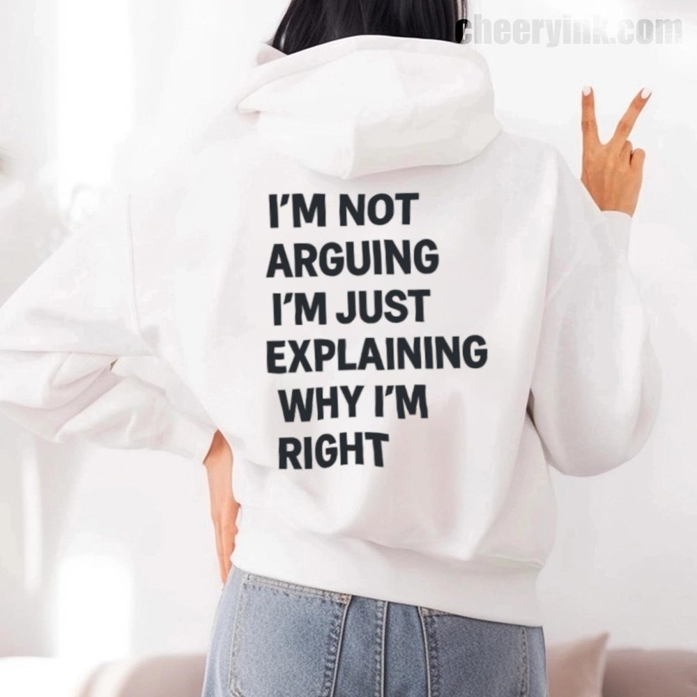 Add some bold humor to your cold-weather wardrobe with the Im Not Arguing Hoodie. Featuring a cheeky quote in strong, statement typography, this hoodie is designed for those who love sarcasm and logic in equal parts.