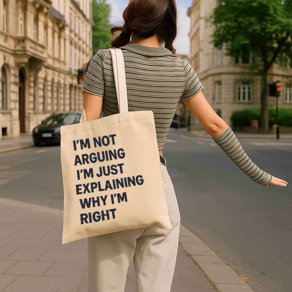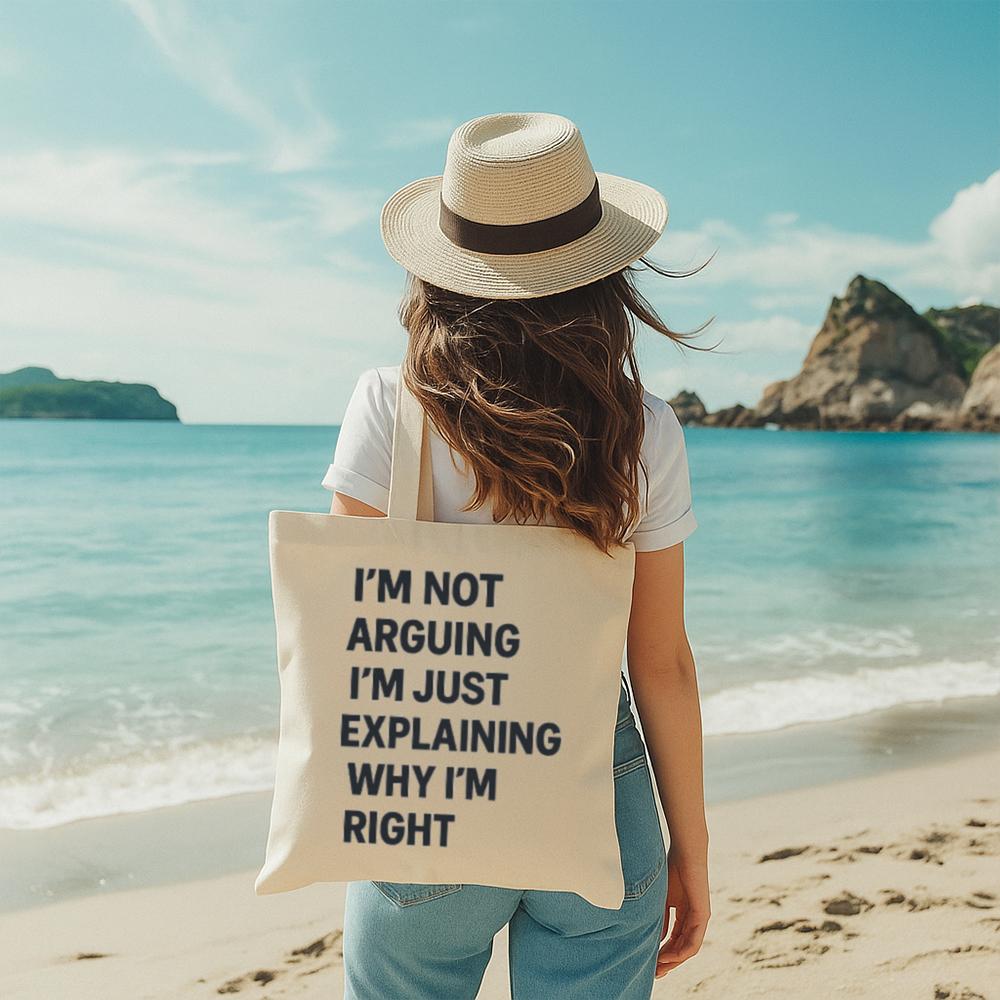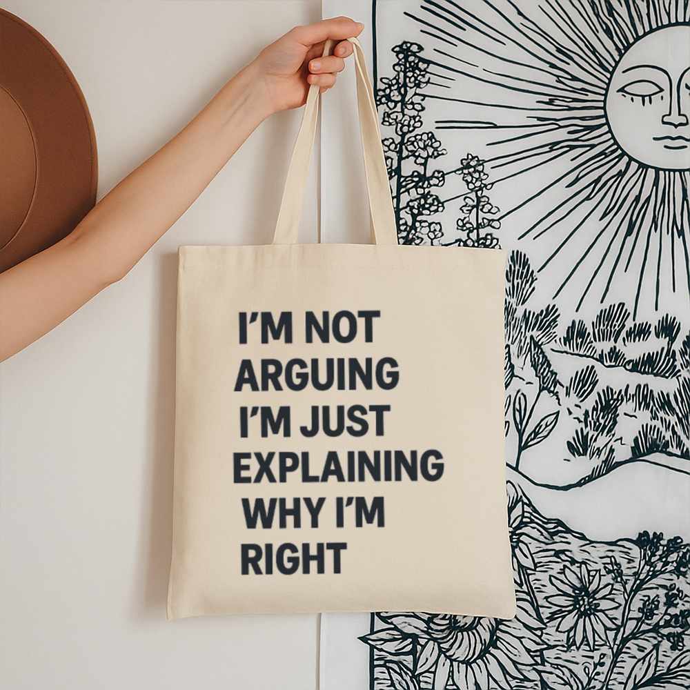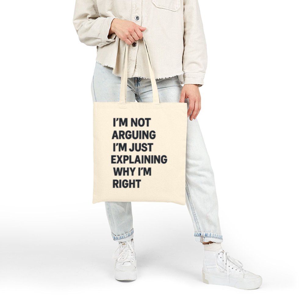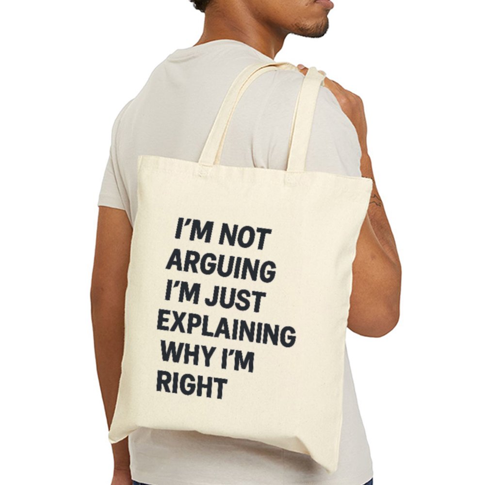Make a bold statement while staying sustainable with the Im Not Arguing Tote Bag. Featuring a hilarious quote in bold type, this tote brings your personality wherever you go from the grocery store to the classroom or the beach.