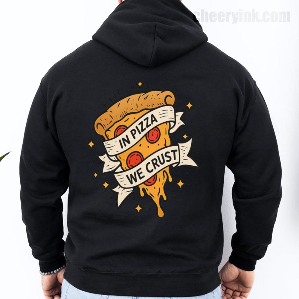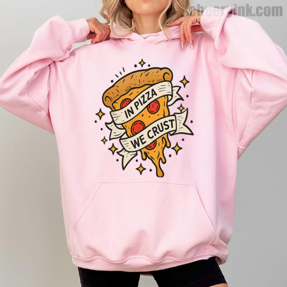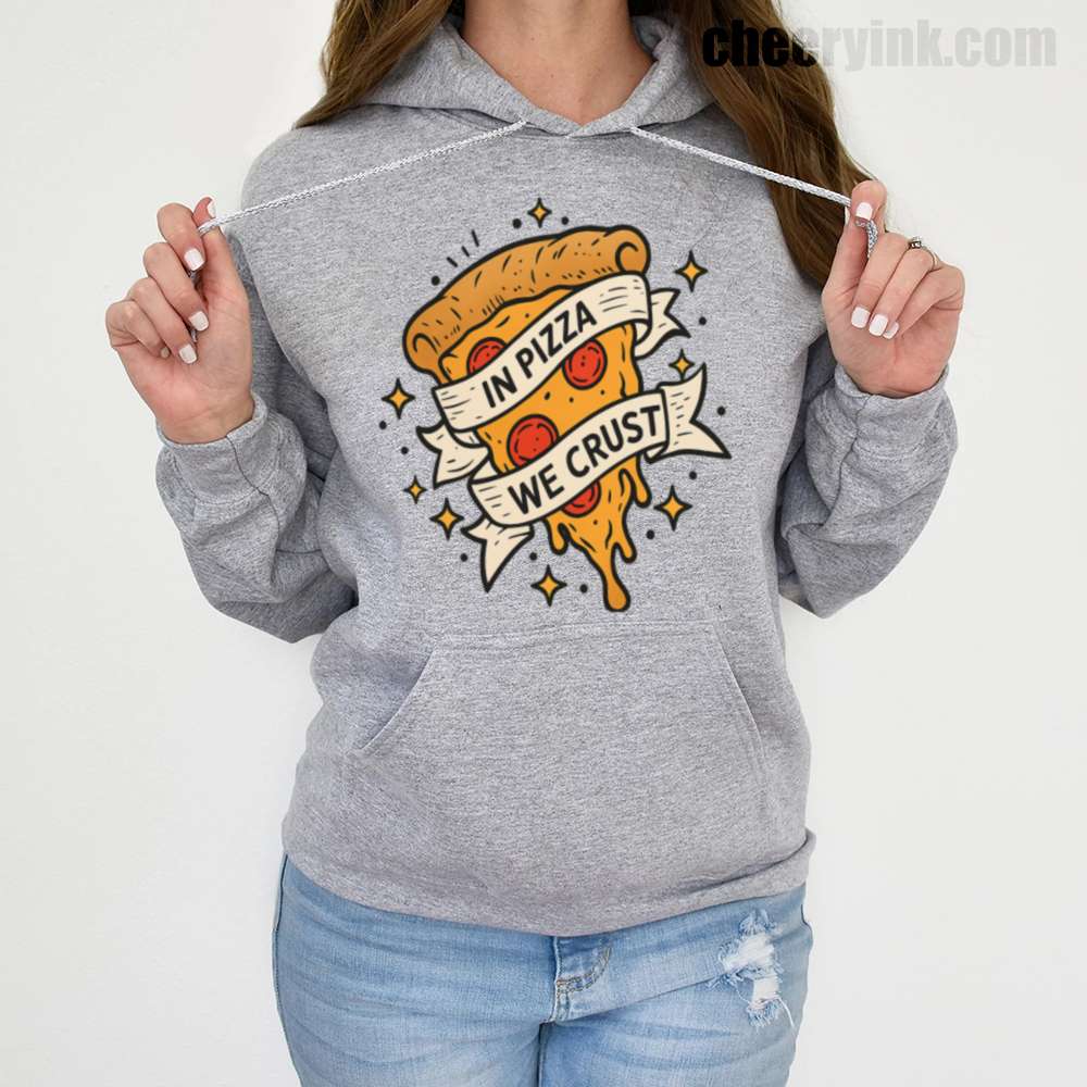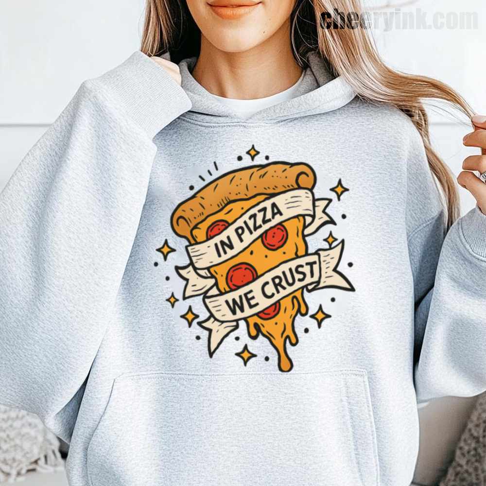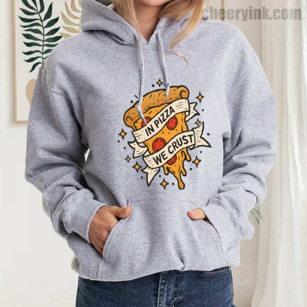 Whether you’re dining in or out, this In Pizza We Crust Hoodie will keep your style hot and your crust golden.