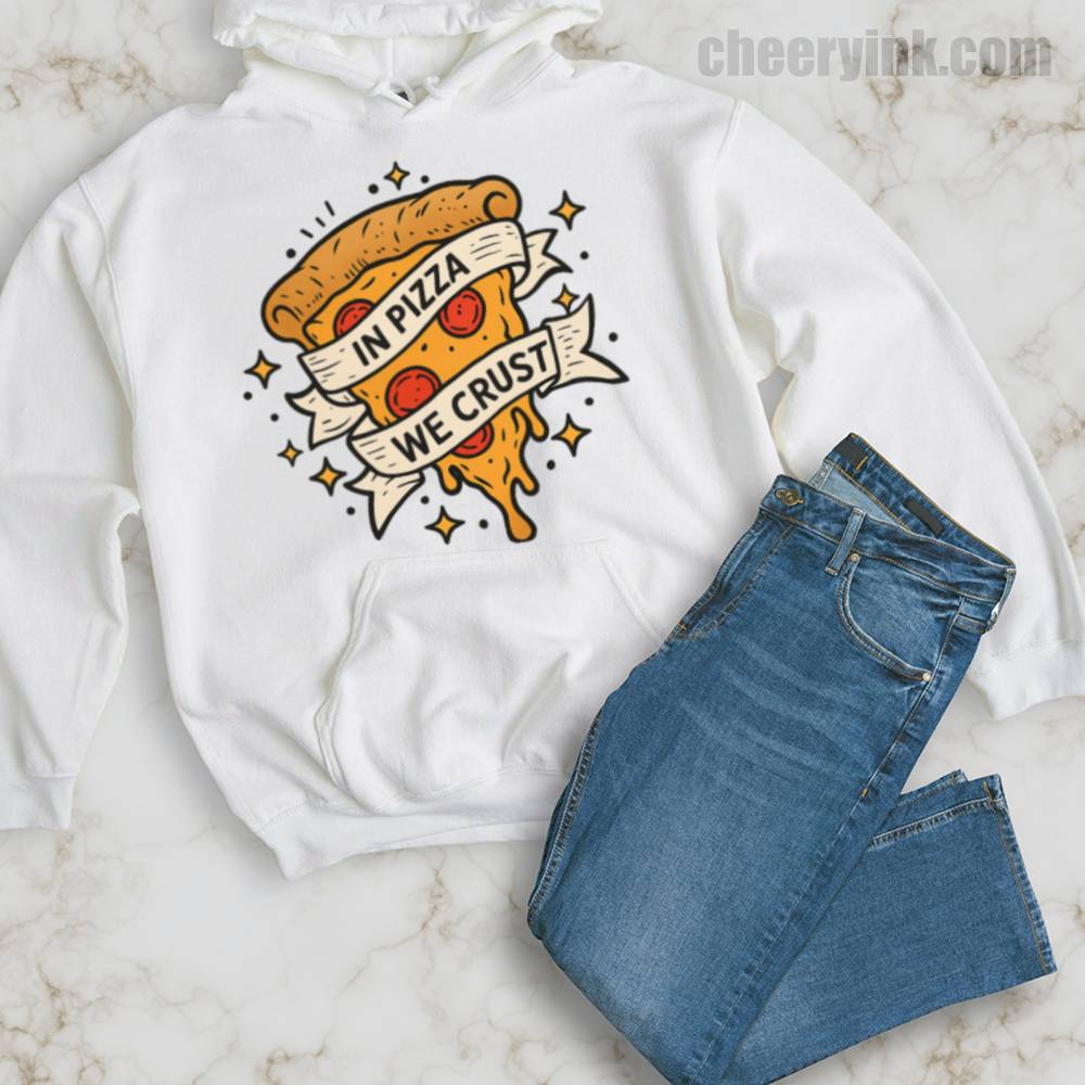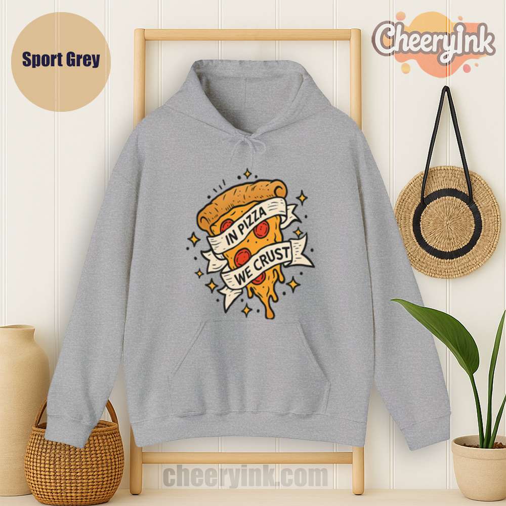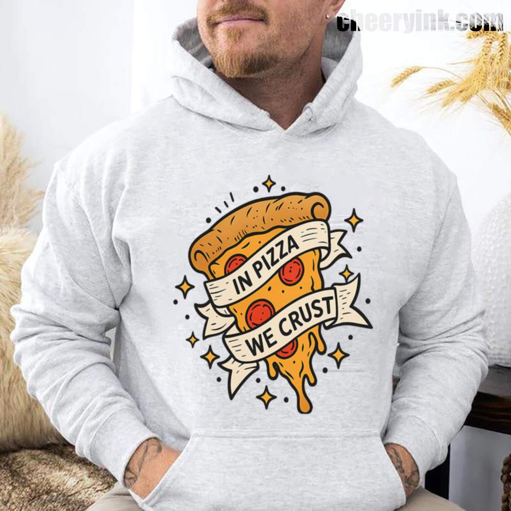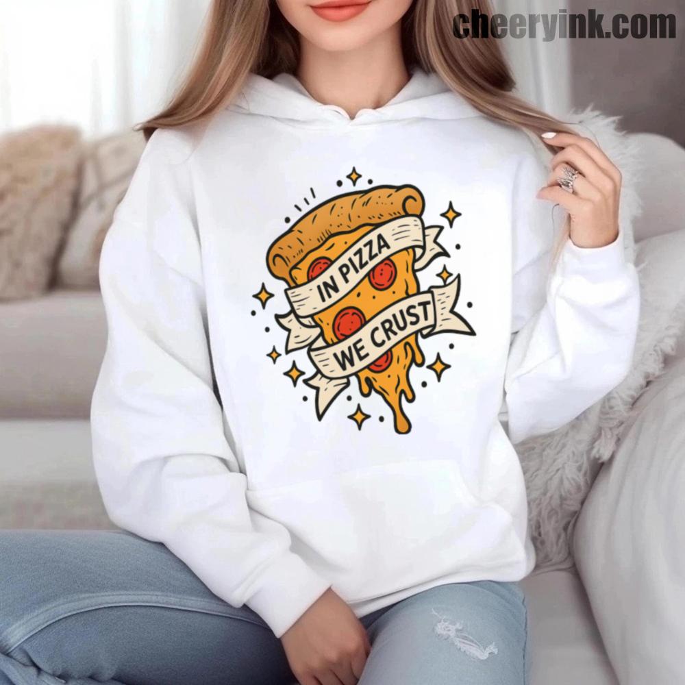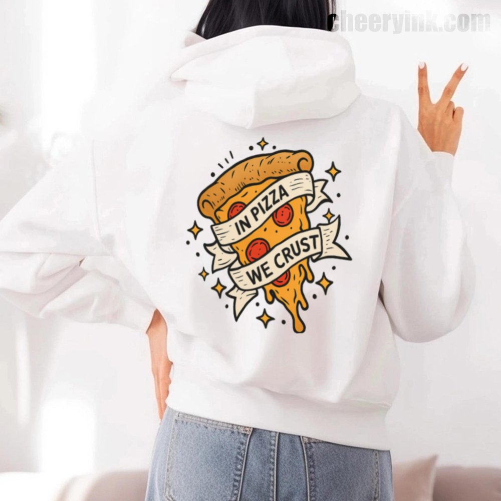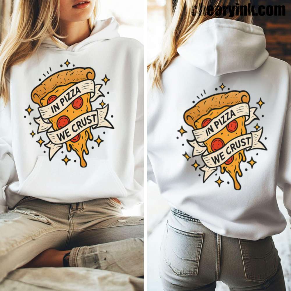 Whether you’re dining in or out, this In Pizza We Crust Hoodie will keep your style hot and your crust golden.