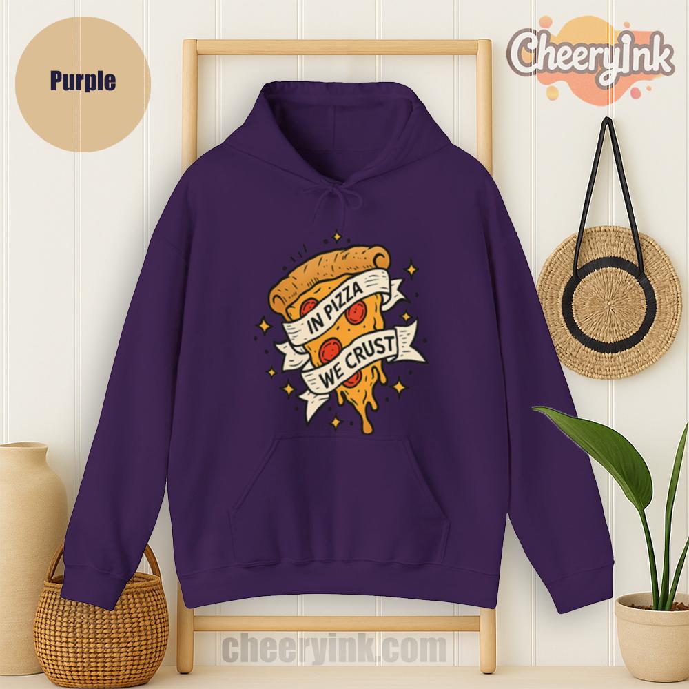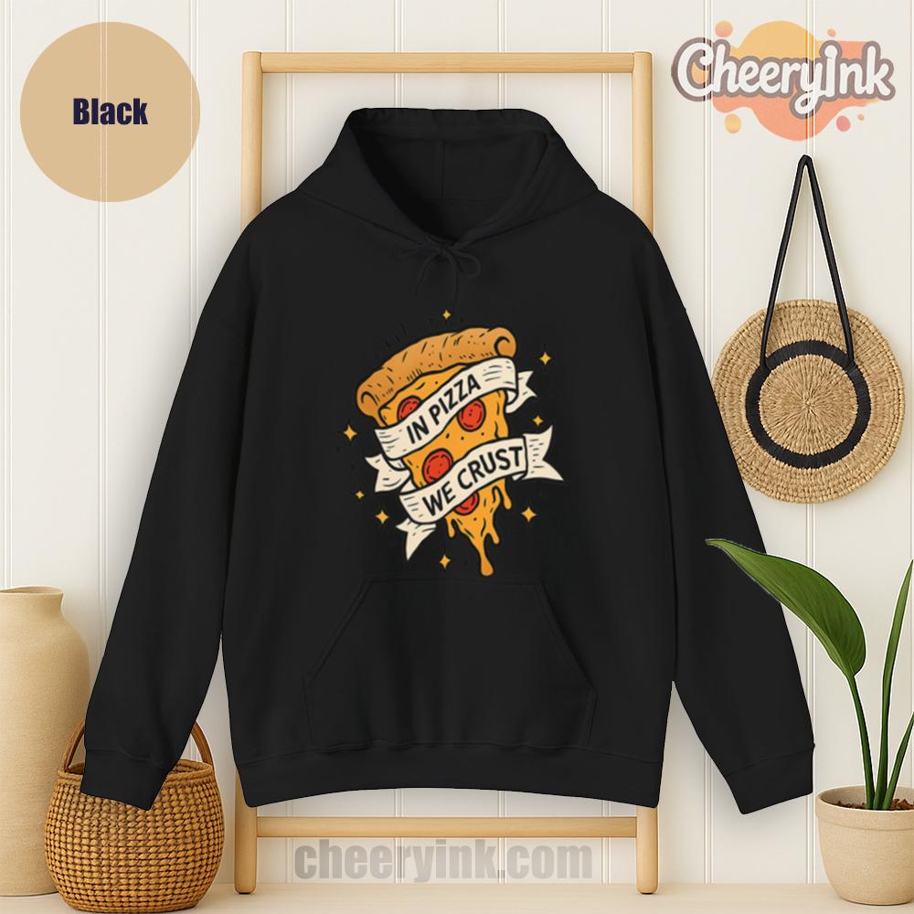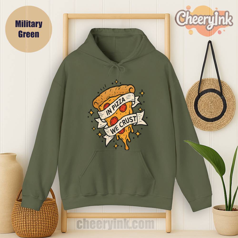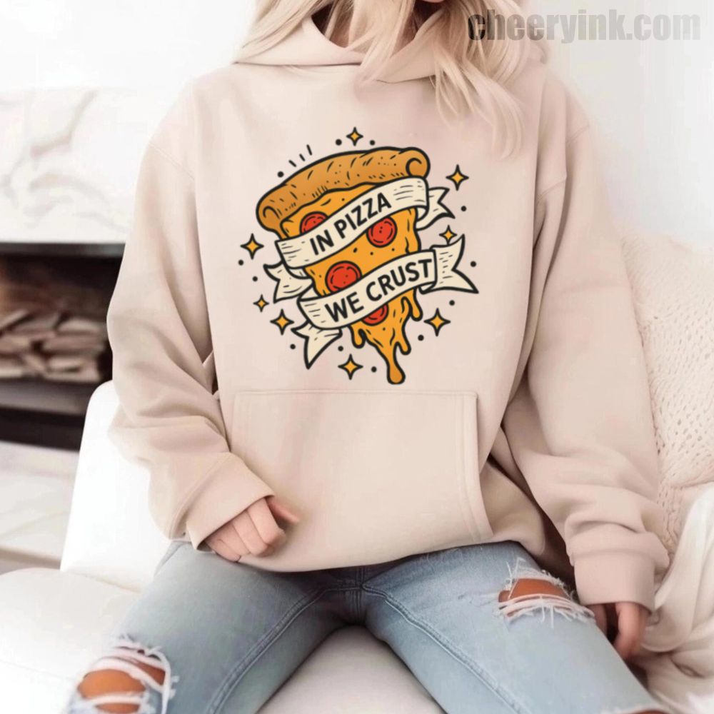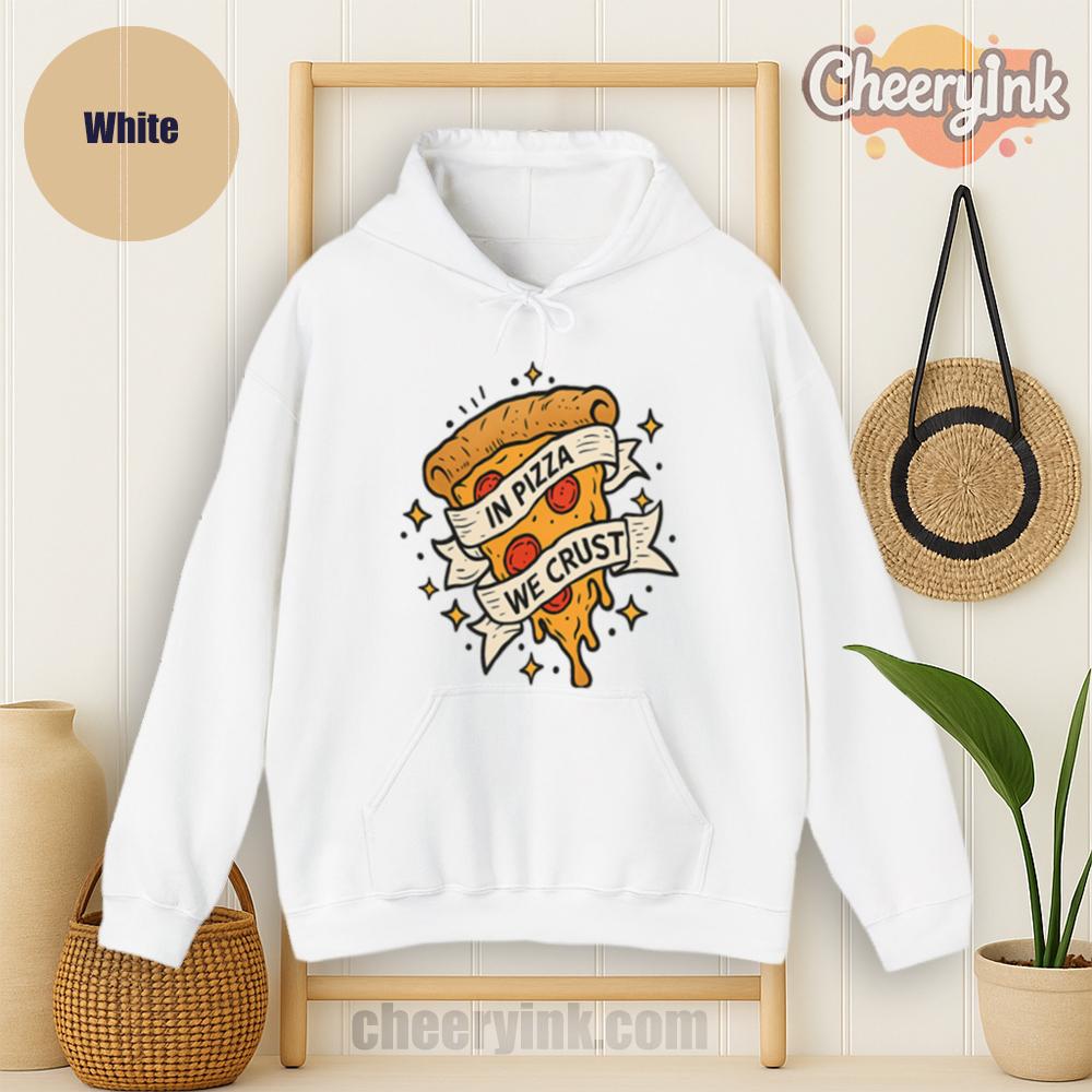 Whether you’re dining in or out, this In Pizza We Crust Hoodie will keep your style hot and your crust golden.